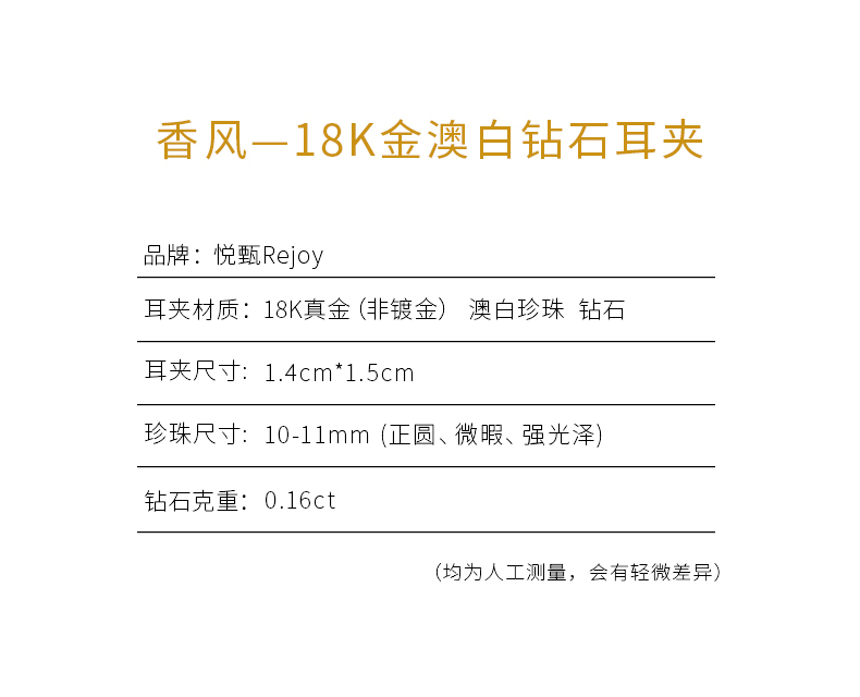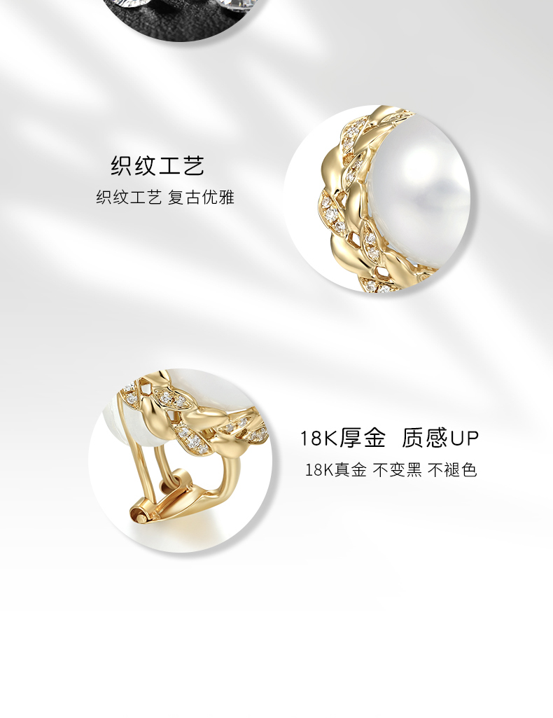 【天猫同款】悦甄18K金澳白珍珠钻石耳夹 香风澳白
