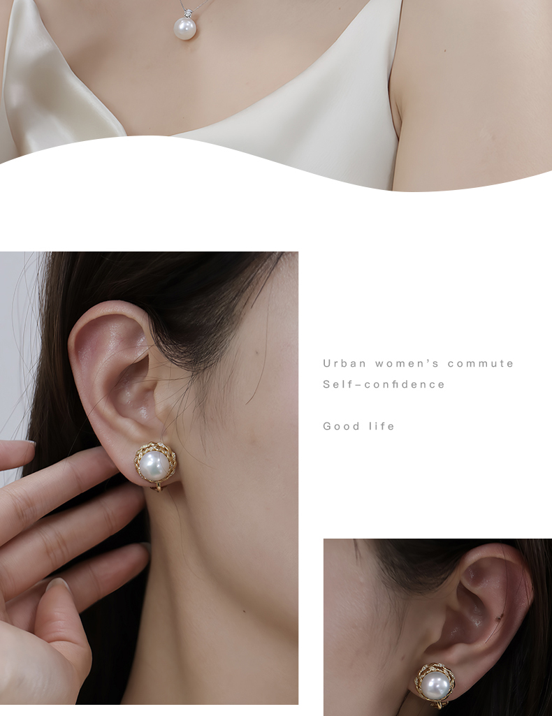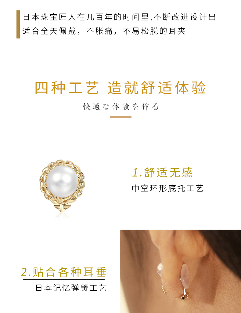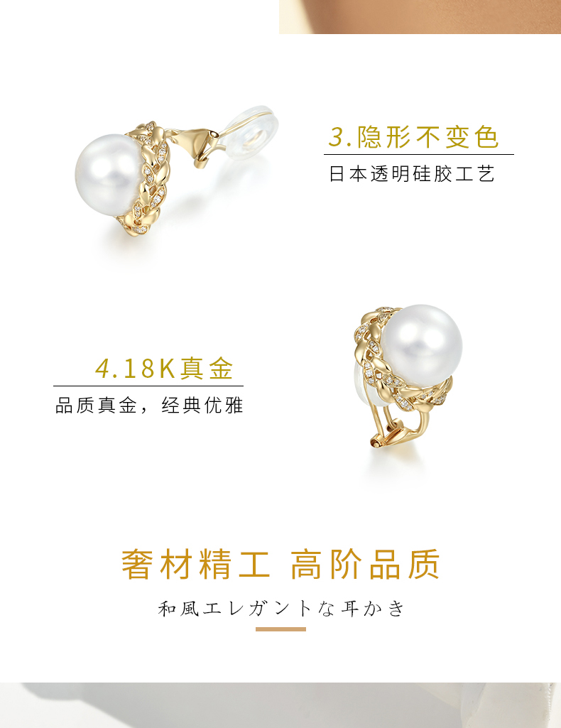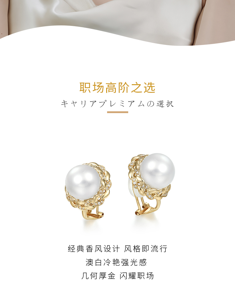 【挚友限定】(经典款/挂珠款)18K金澳白珍珠耳夹 真科研凤凰等级