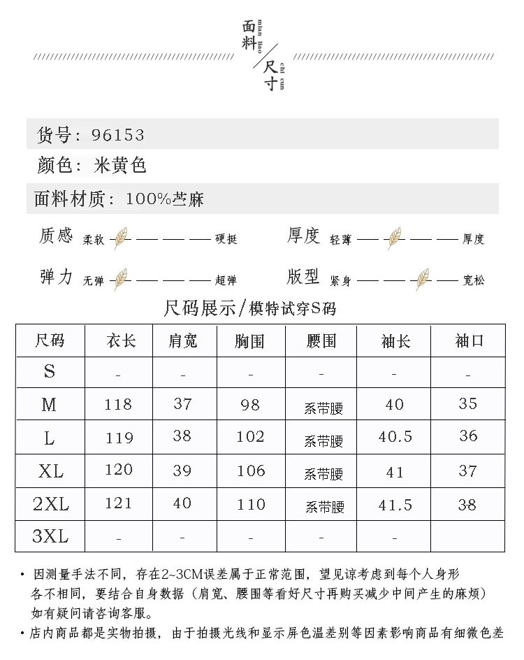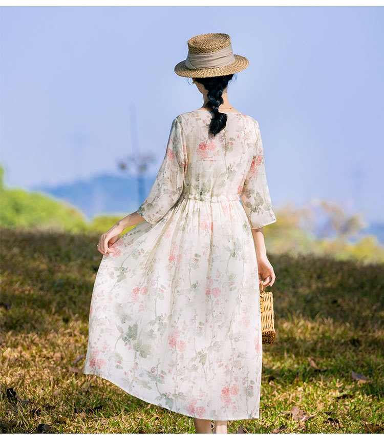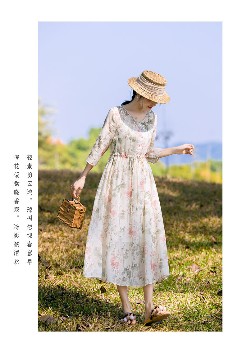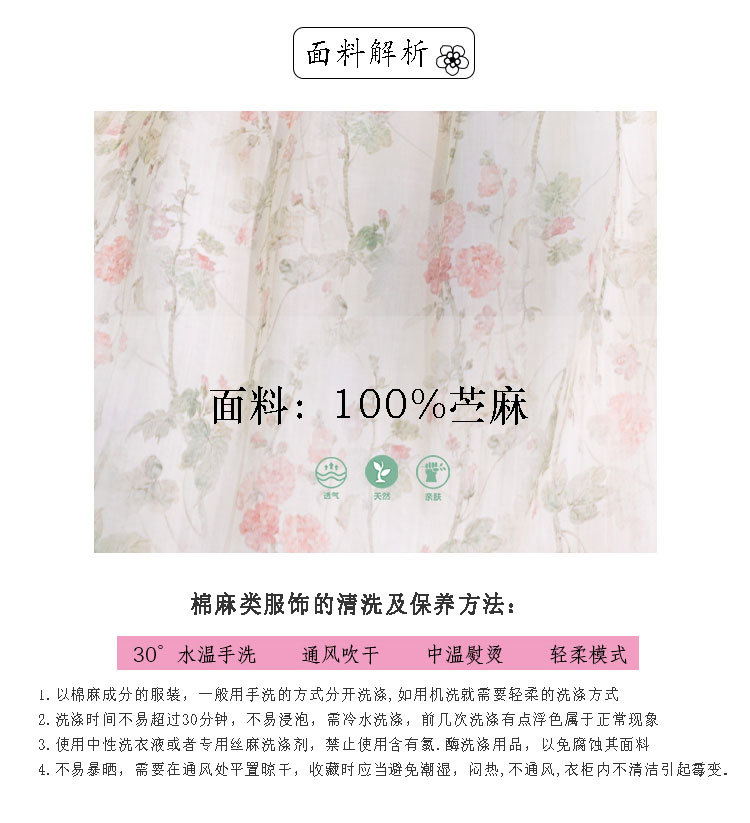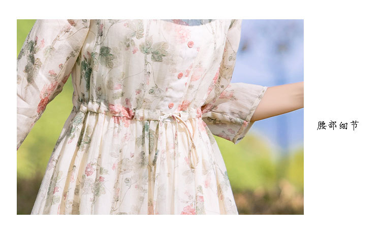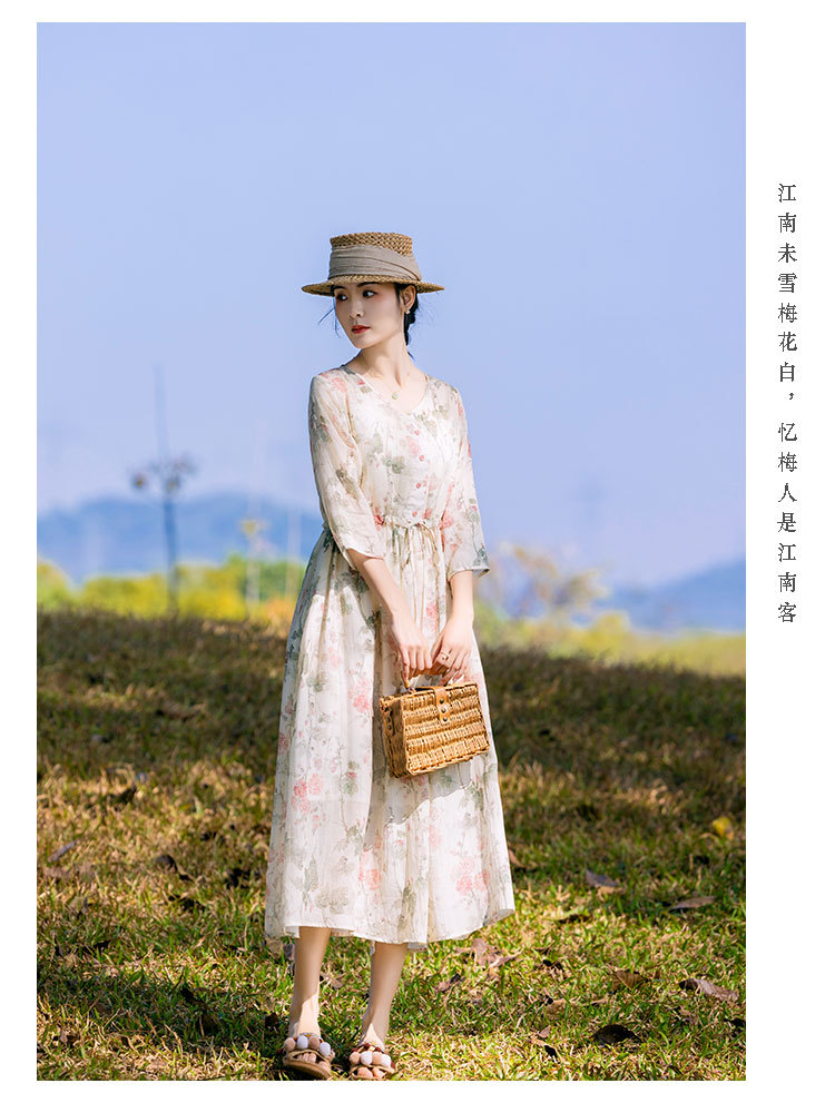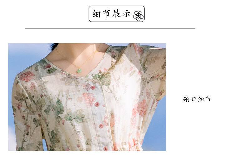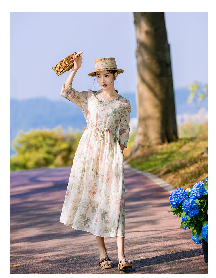 新中式棉麻苎麻连衣裙,V领国风复古改良旗袍TT96153