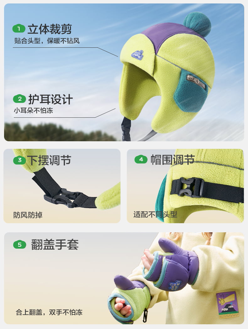 KK树儿童帽子秋冬季男童女孩宝宝雷锋帽护耳防风保暖防寒加厚新款小暖阳护耳帽套装帽子