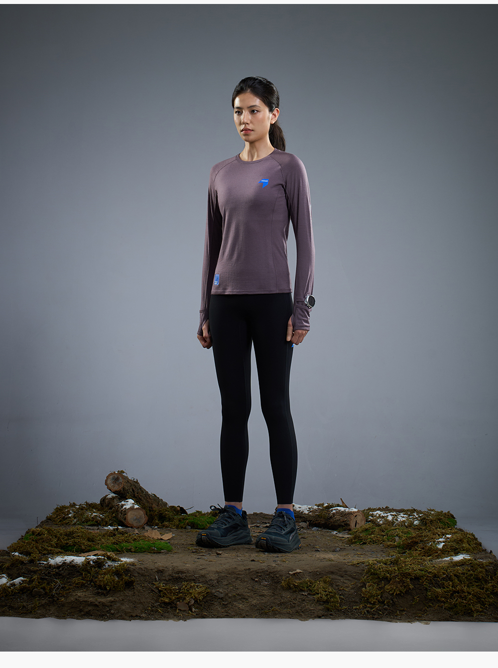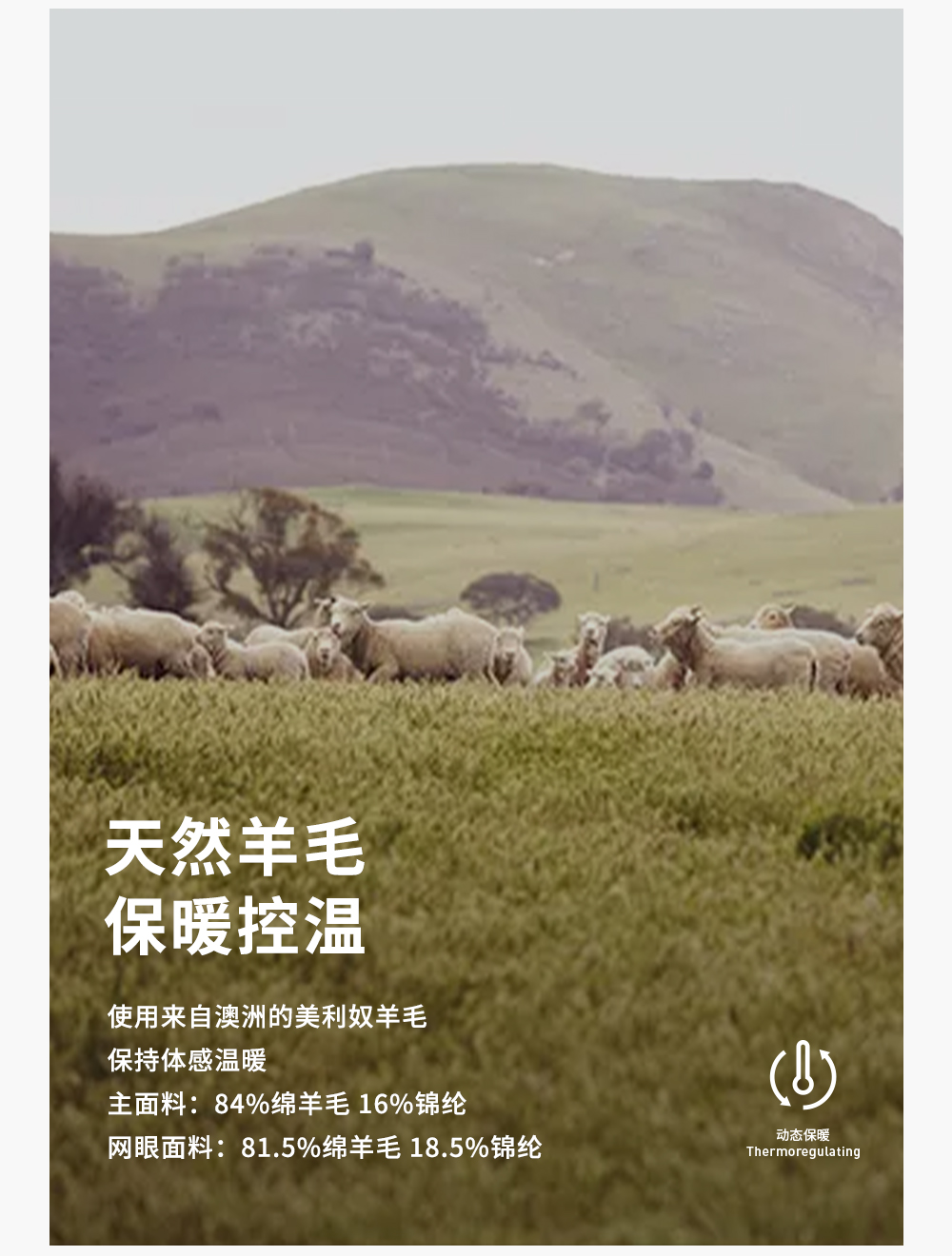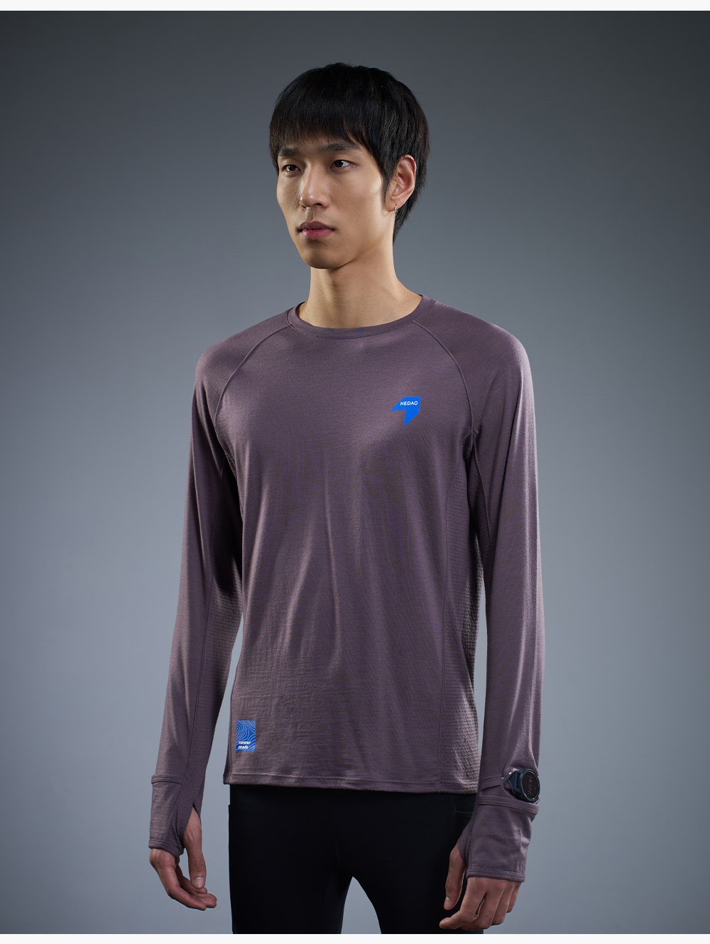 内道美利奴羊毛圆领拼接长袖男女同款吸汗透气网孔越野跑步t