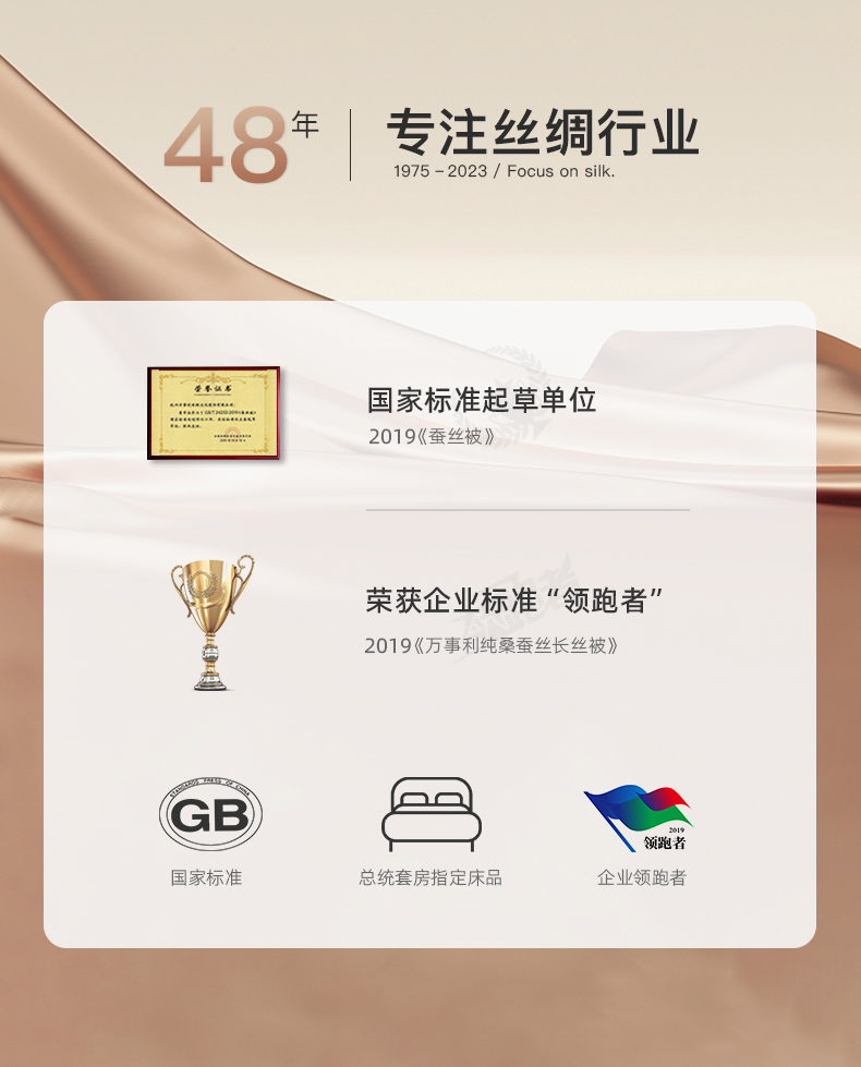 万事利专注丝绸40余年,是服务于多个世界级盛会的丝绸品牌。中国丝绸品牌万事利品质保证,中国丝绸协会倾情推荐!