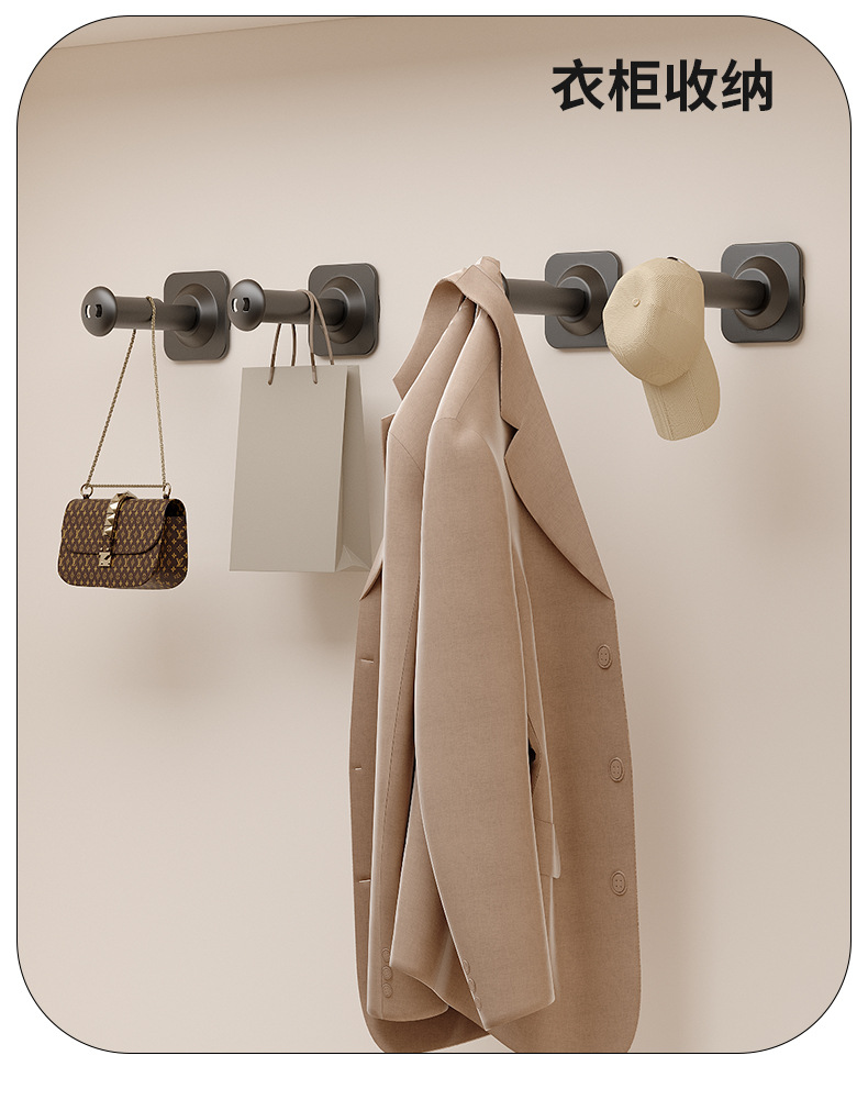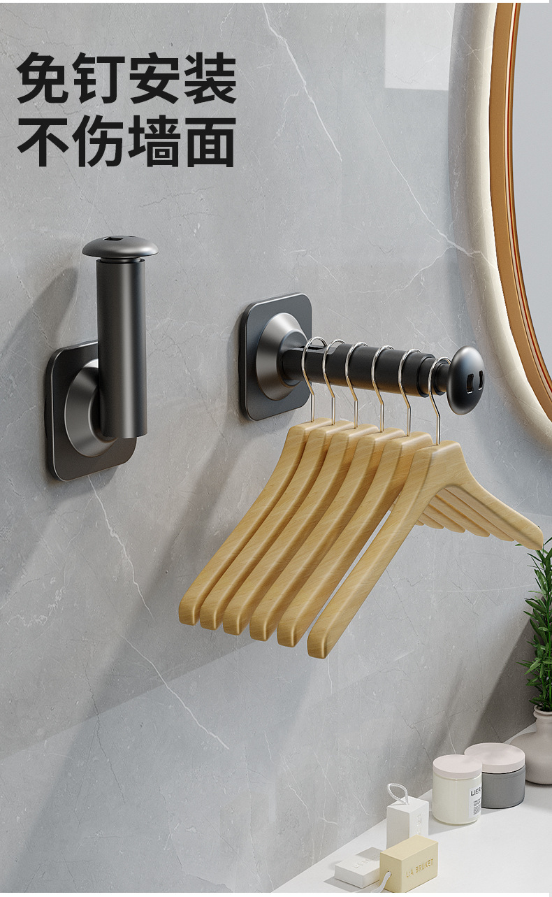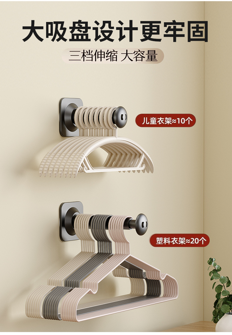【一吸即用,无需等待】吸盘衣架收纳神器 家用阳台多功能免打孔伸缩晾衣架 墙上壁挂置物架-QQ