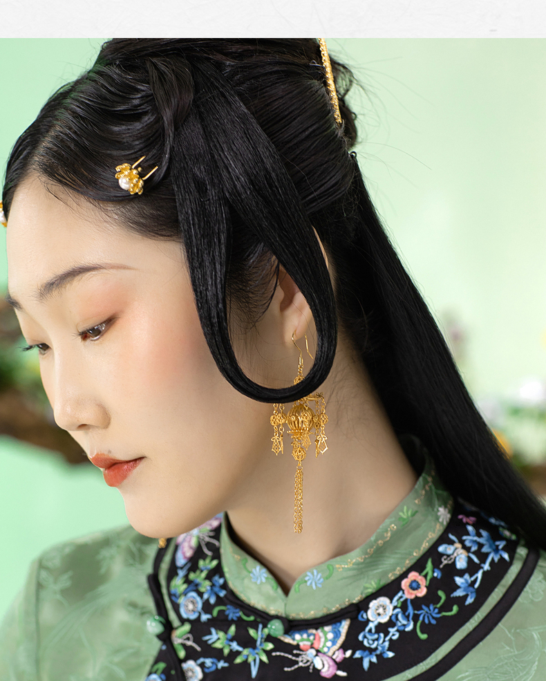【林栖设计小店】2022春季新品银饰复古女士百搭气质金色长款耳环小众设计
