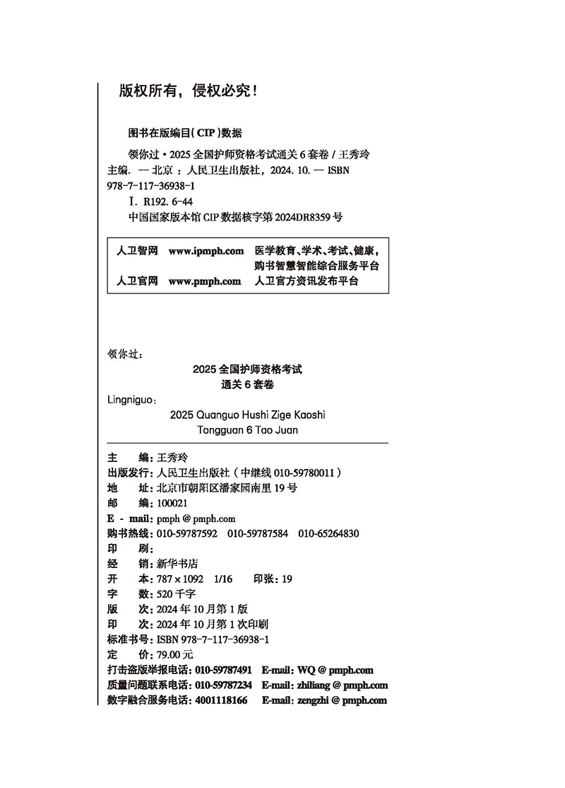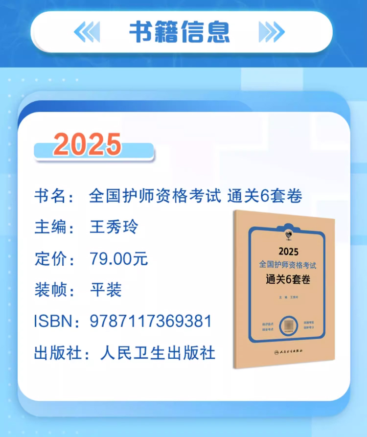 领你过 2025全国护师资格考试 通关6套卷 主编王秀玲 9787117369381人民卫生出版社