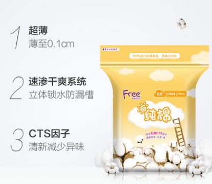 Free纯棉日用丝薄卫生巾240mm8片装