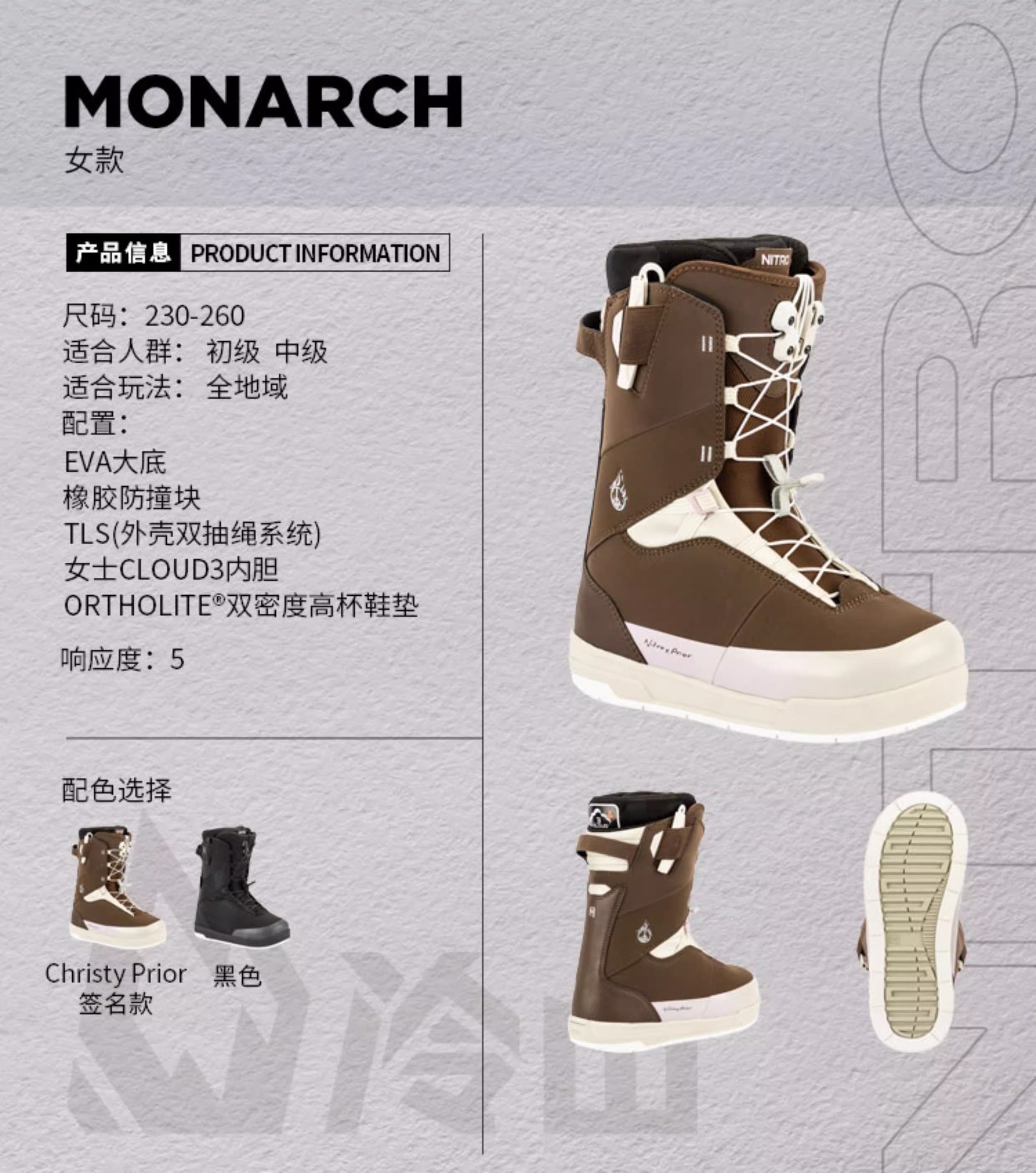 冷山雪具NITRO滑雪鞋MONARCH单板雪鞋全能滑雪靴女2526新款雪鞋