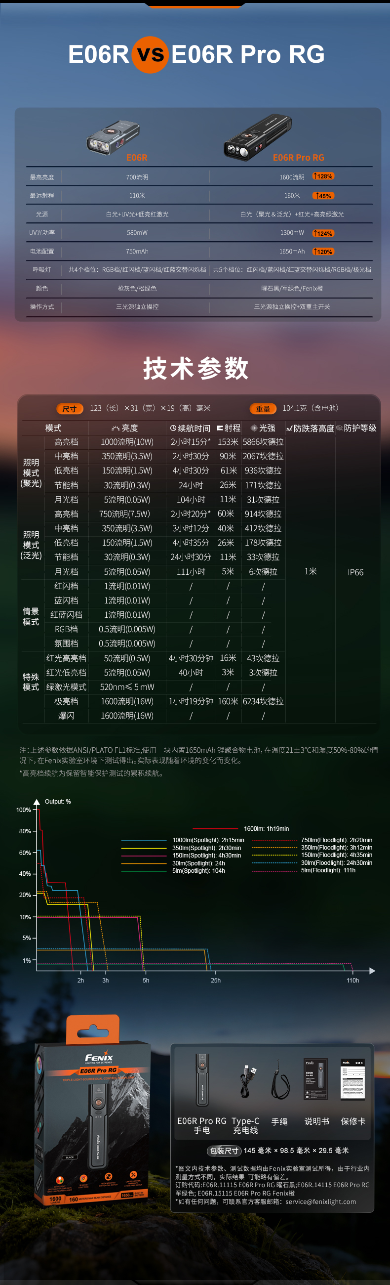 Fenix菲尼克斯E06R Pro RG手电筒绿激光小型便携式强光充电氛围灯