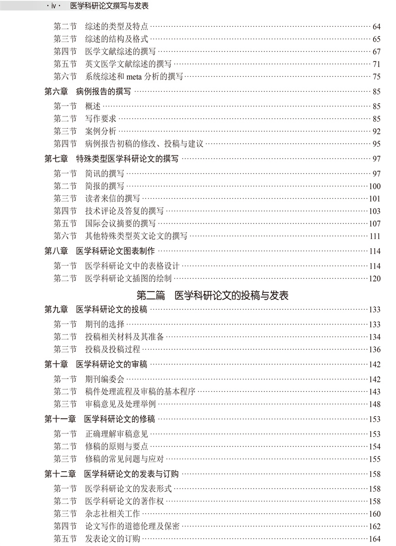 本教材为科学出版社“十四五”普通高等教育研究生规划教材。全书共分为四篇,第一篇主要介绍医学科研论文撰写和发表的意义、特点和基本要求、论文的类型及撰写步骤;对常见的中文论著、英文论著、医学文献文献综述、病例报告、特殊类型医学科研论文及论文图表进行了详细的介绍。第二篇主要介绍医学科研论文的投稿、审稿、修稿、发表与订购。第三篇主要介绍医学毕业论文的选题及答辩前的准备、医学毕业论文的撰写、评阅及毕业论文的答辩。第四篇主要介绍医学研究报告规范与注册、生物医学期刊及其评价系统、论文撰写与发表中的学术规范等。