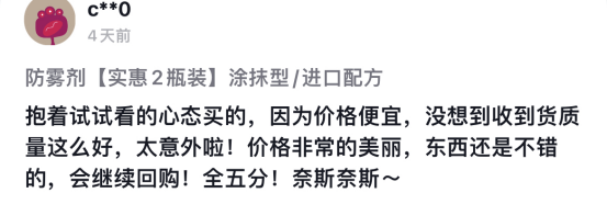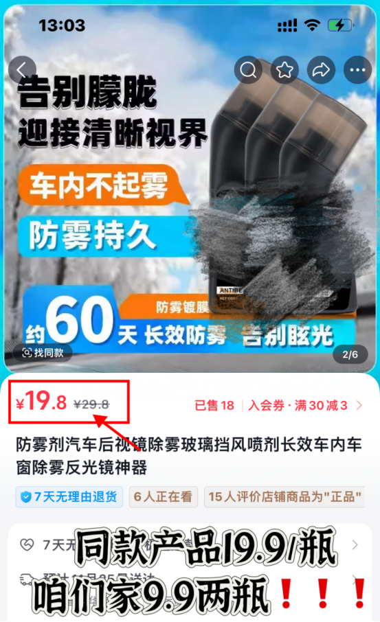 这款防雾剂真的惊艳到我了。 它的防雾效果立竿见影,喷完擦好后,即使在寒冷的早晨,玻璃依然千净透亮。而且它还能去除玻璃上的•些轻微污渍,让玻璃更加光洁如新。 价格实惠,小小一瓶能用很多次。有了它,再也不怕车窗起雾啦,行车安全更有保障