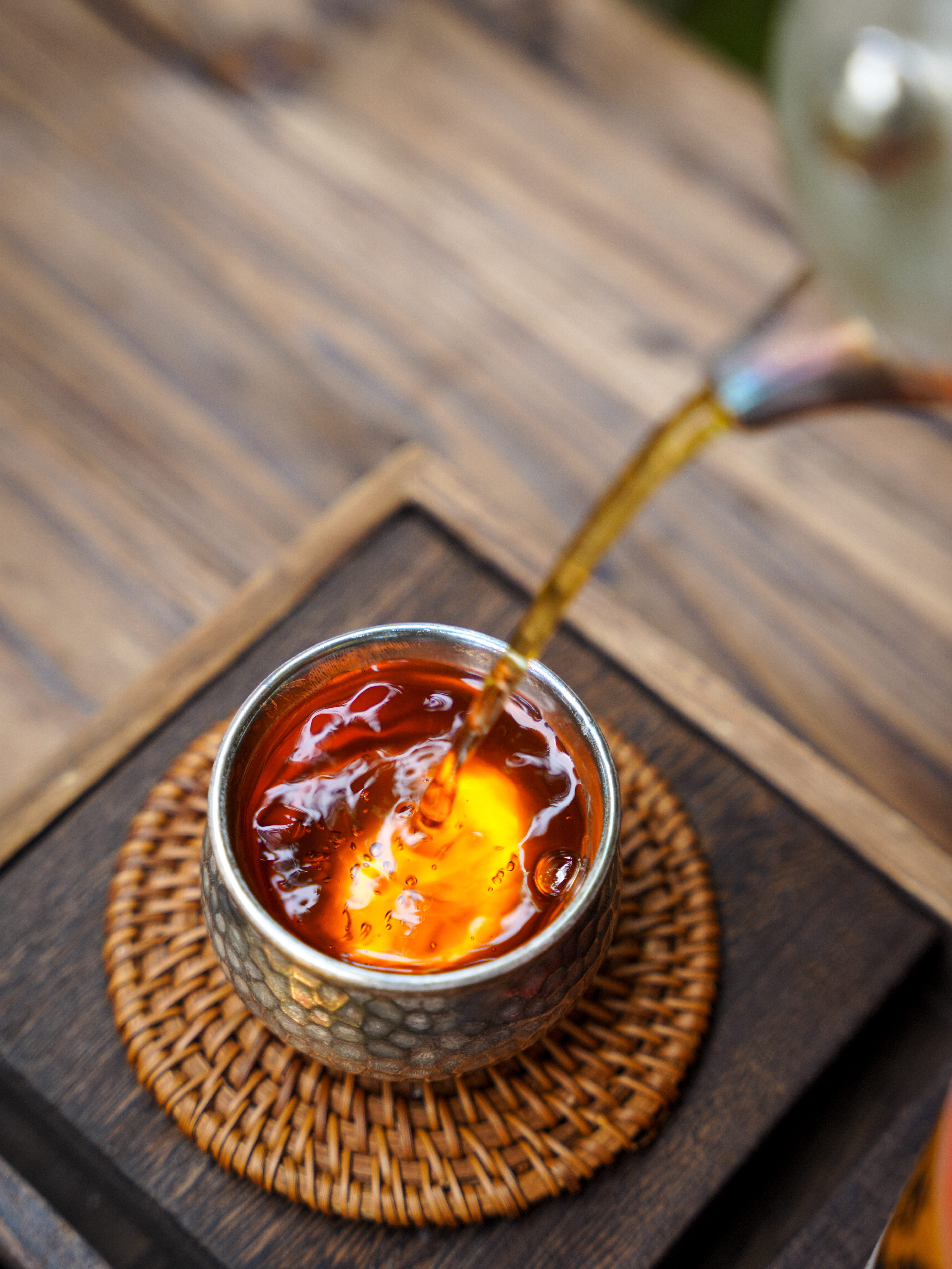 开汤品鉴:抿上一口,滋润着整个口腔。温润甘甜香气四溢,齿颊留香,喉韵悠长,甜润鲜爽,蜜香淡雅;口感顺滑饱满,没有半点杂质。茶汤在唇齿间来回晃动,口感绵滑,厚度尤佳,薯香味儿更是如潮水般涌来,期间伴随着丝丝甘甜。陈皮与新班章晒红相互交融,茶甜柑香一切恰到好处,这样好的口感,实在过瘾,让人欲罢不能,是值得一喝的好茶!