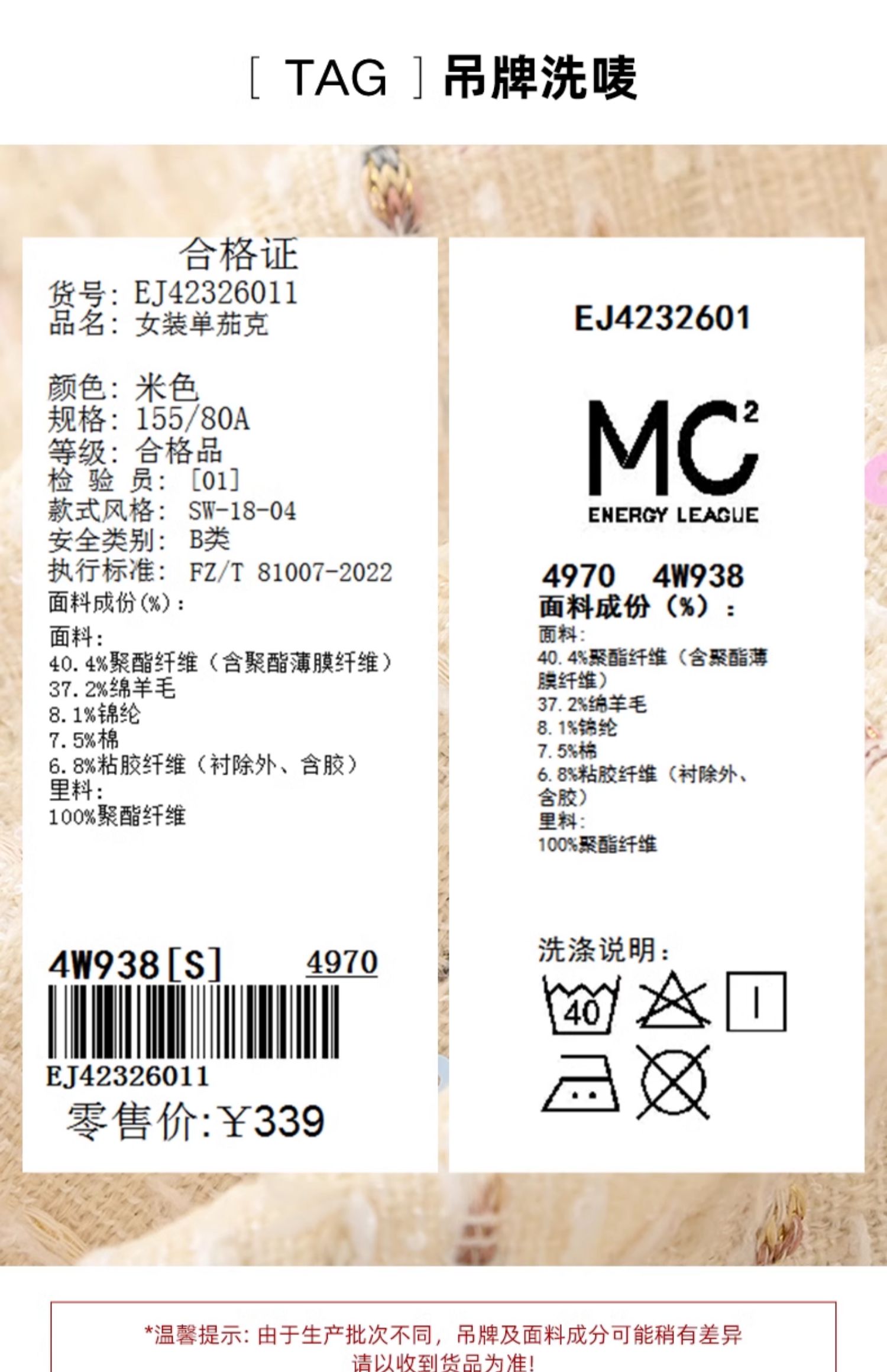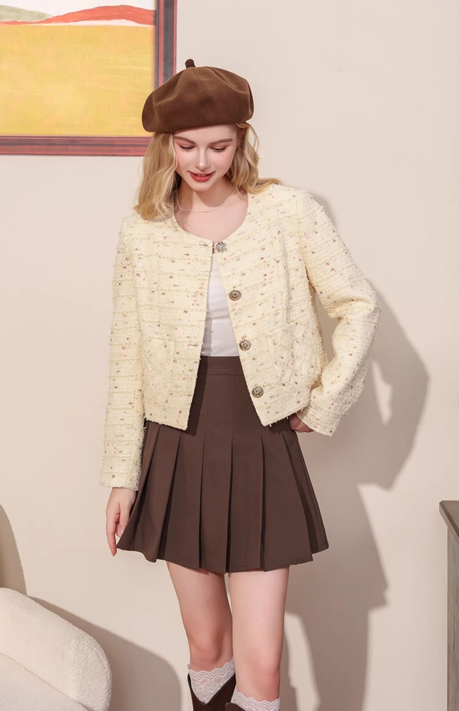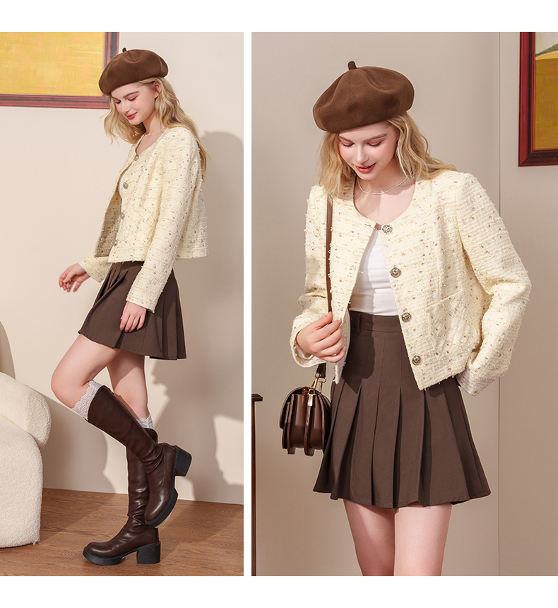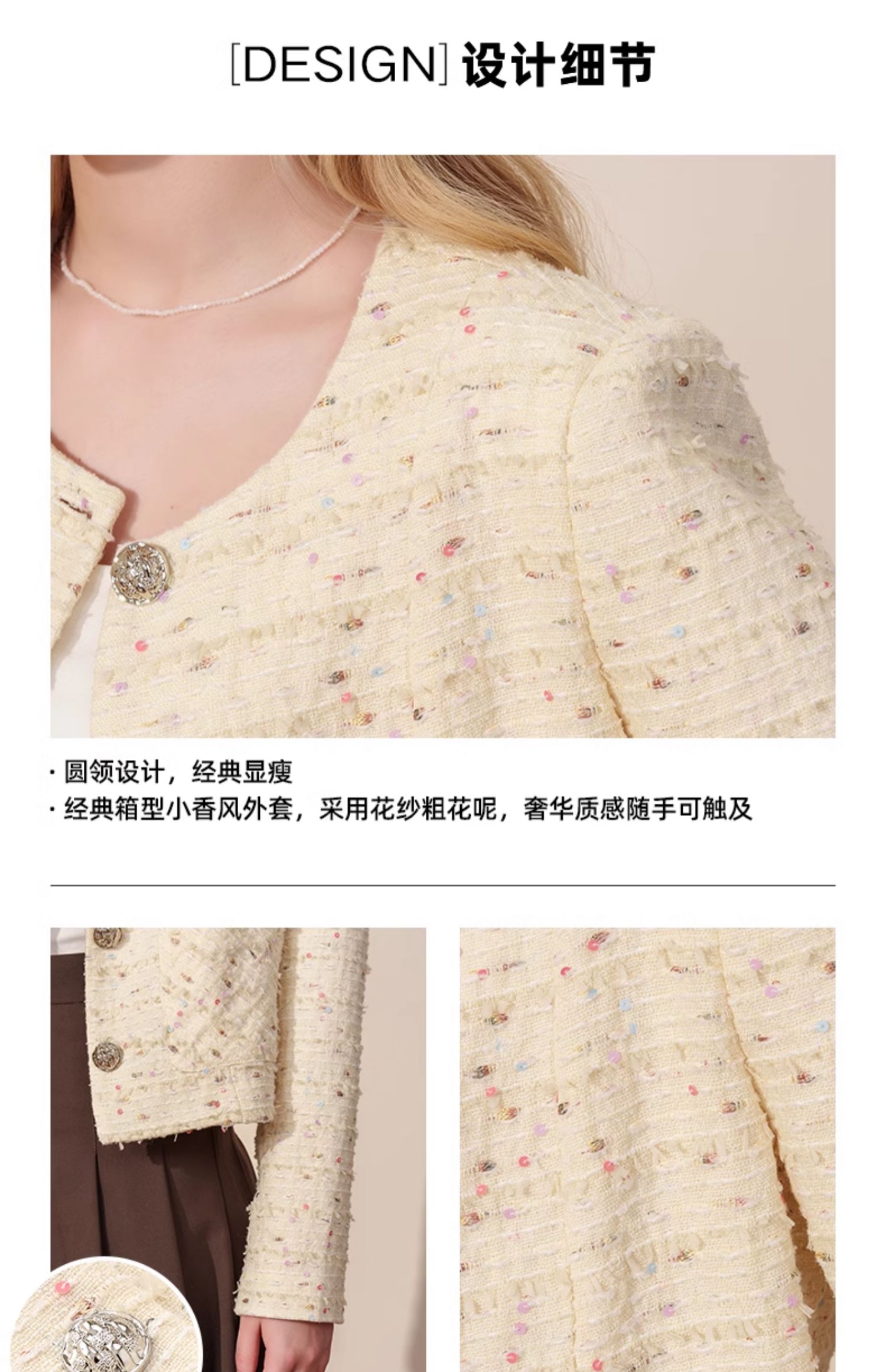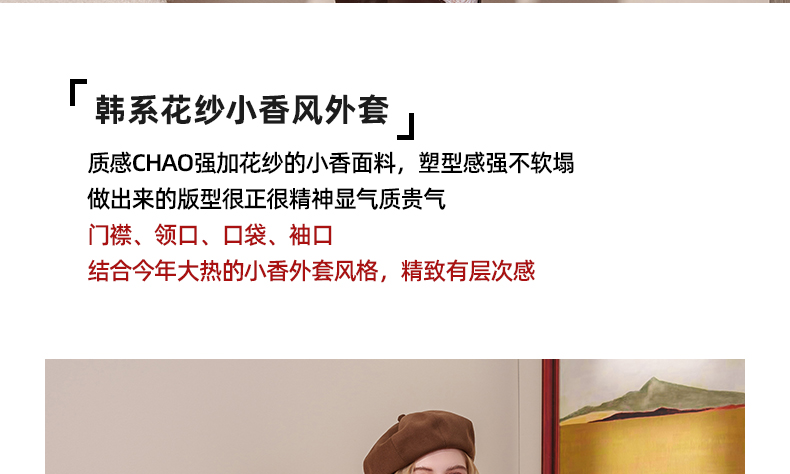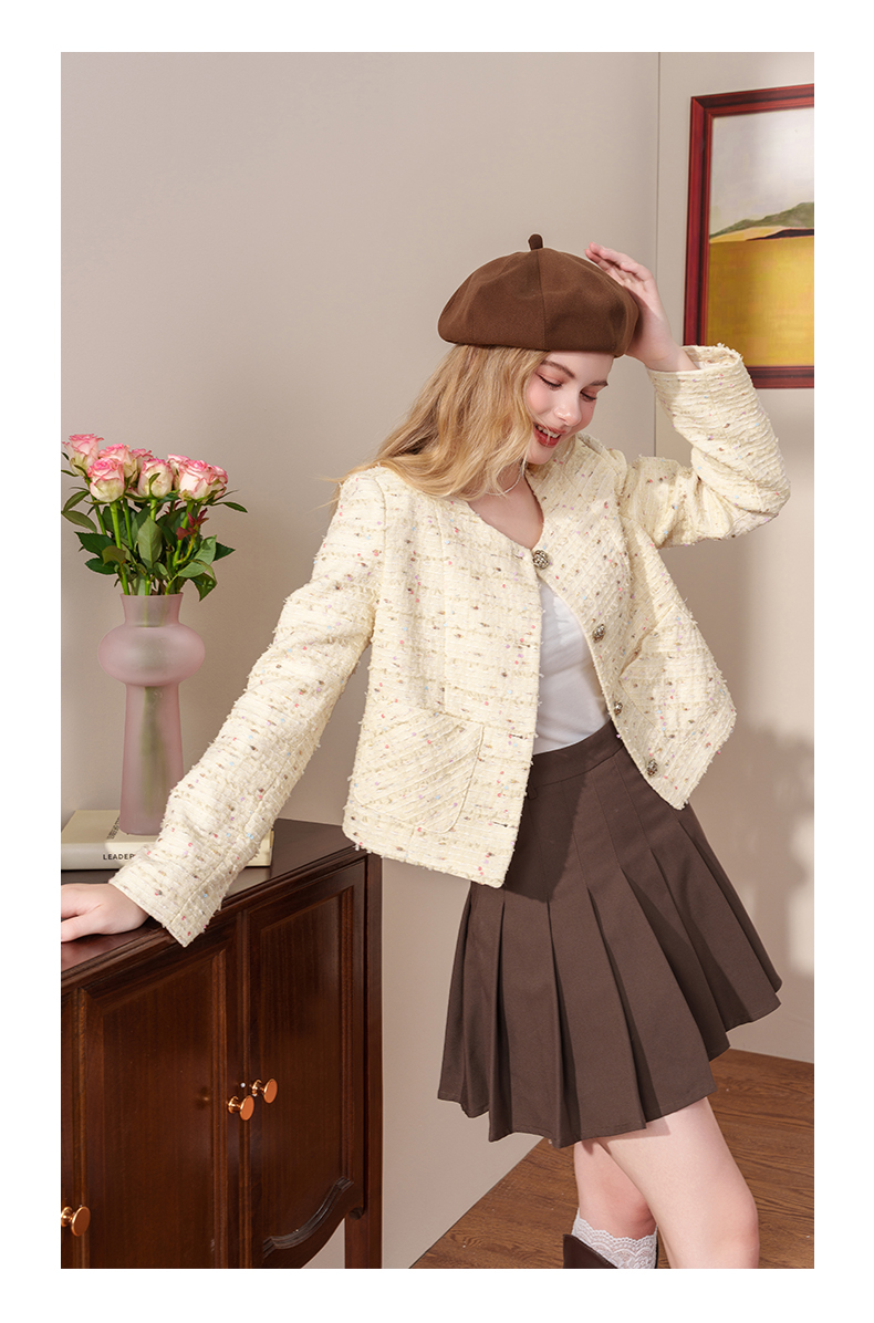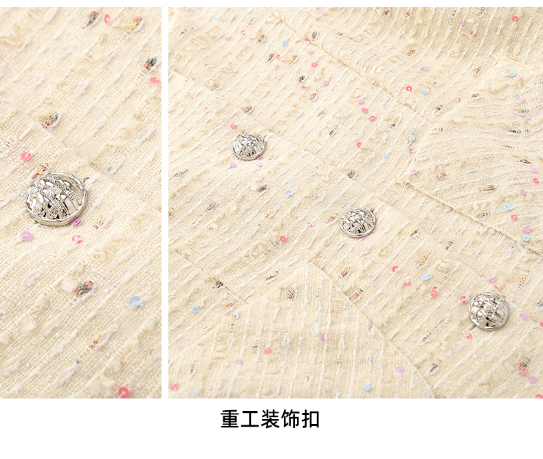 小香风甜美亮片粗花呢外套J4232601
