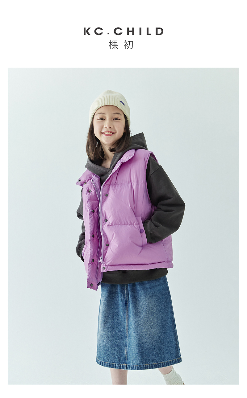 棵初年冬季新品儿童纯色羽绒马甲防泼水叠穿百搭无袖立领外套