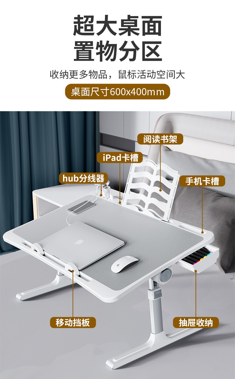 【多档位调节折叠桌】派凡阅读学习书桌多功能电脑桌多档位调节可折叠升降支架懒人书桌