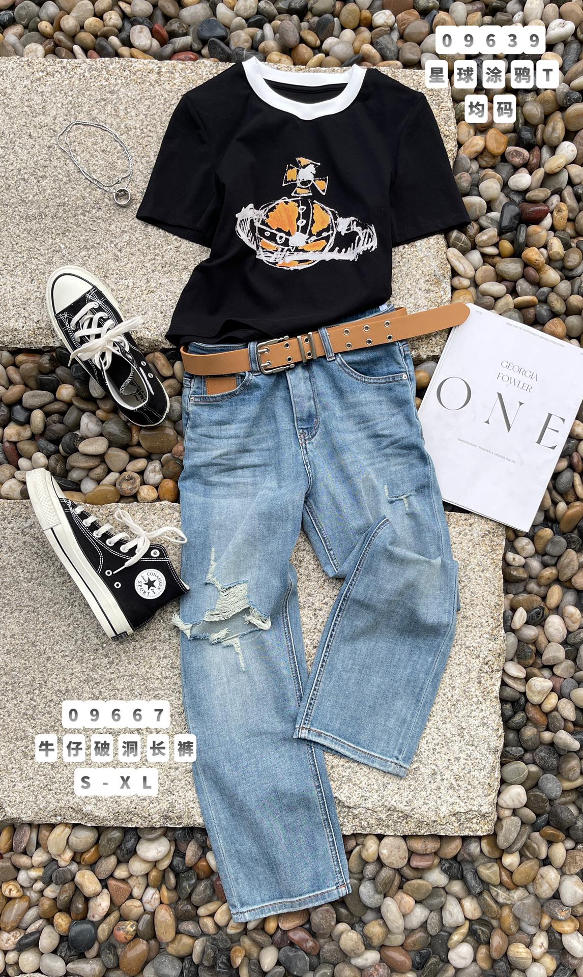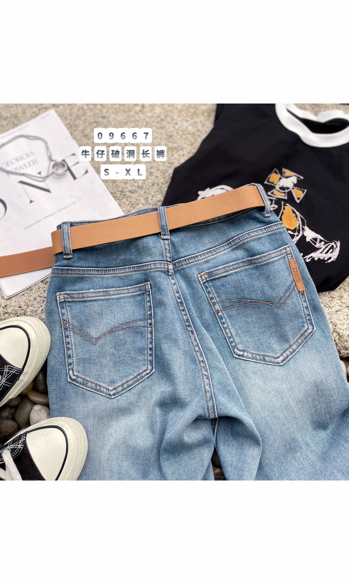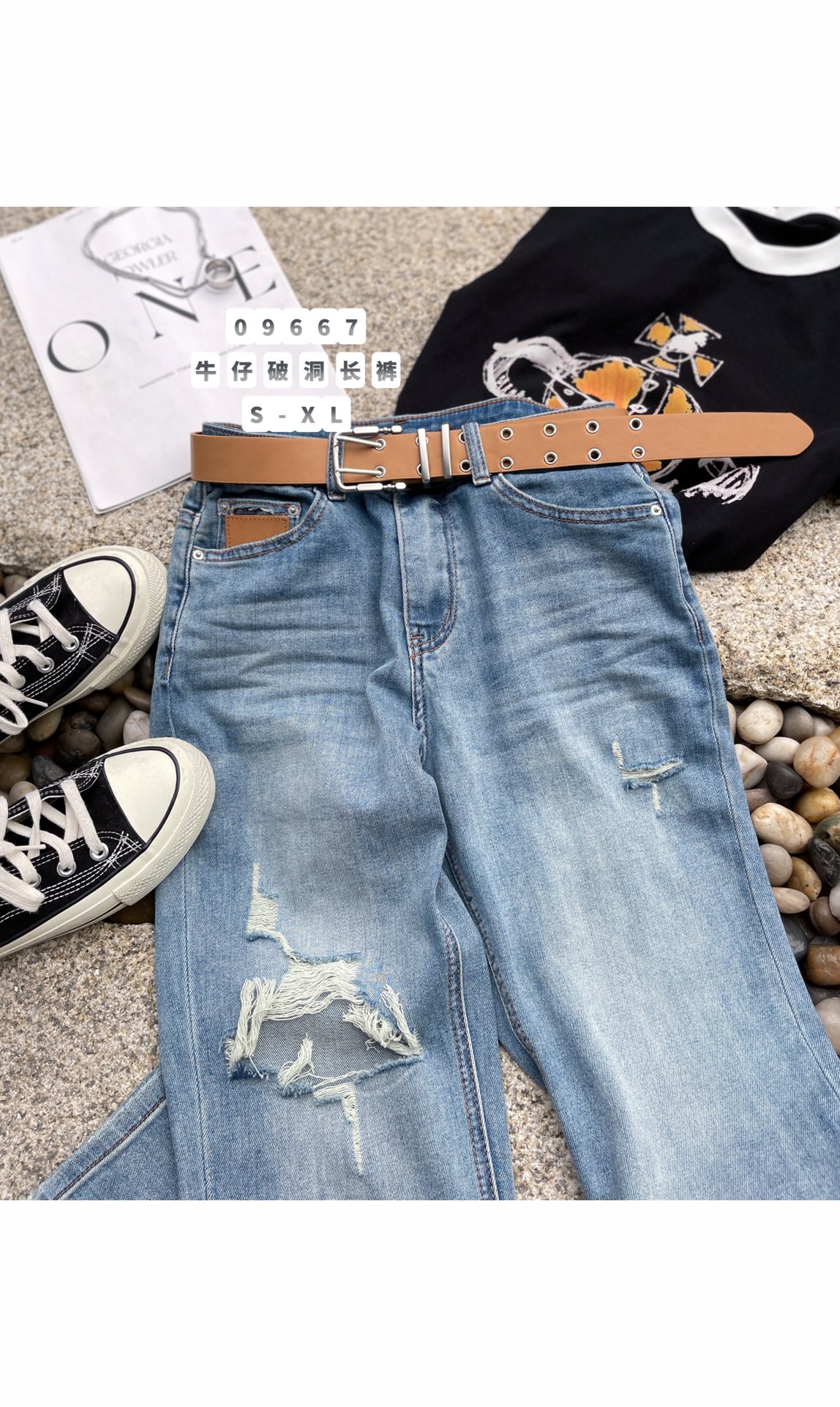 G09667#牛仔破洞长裤