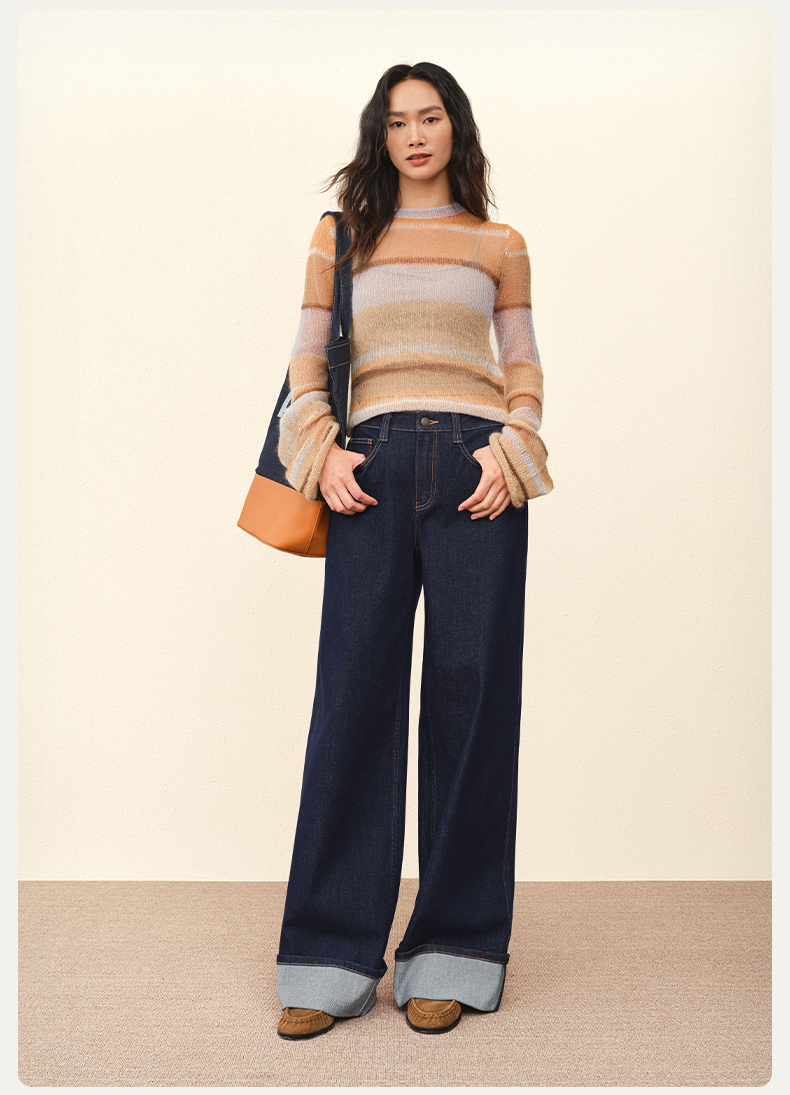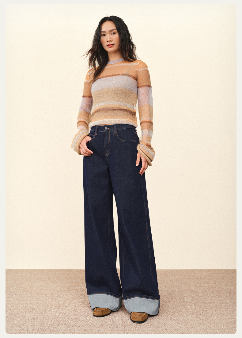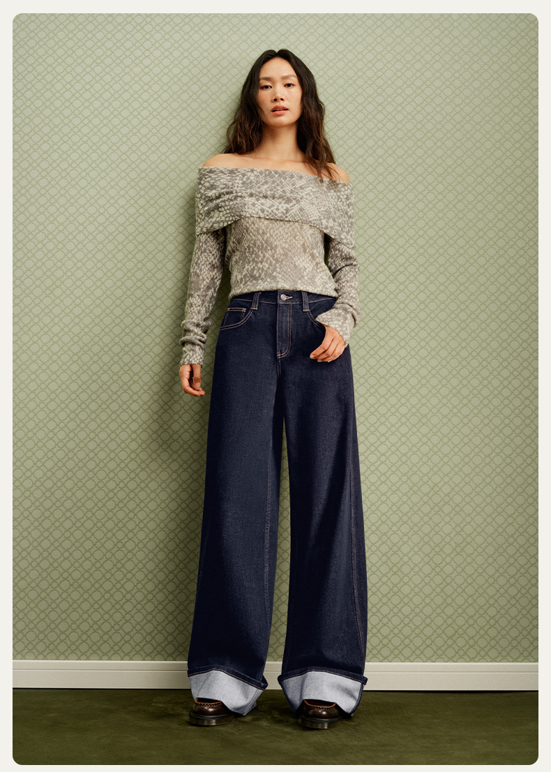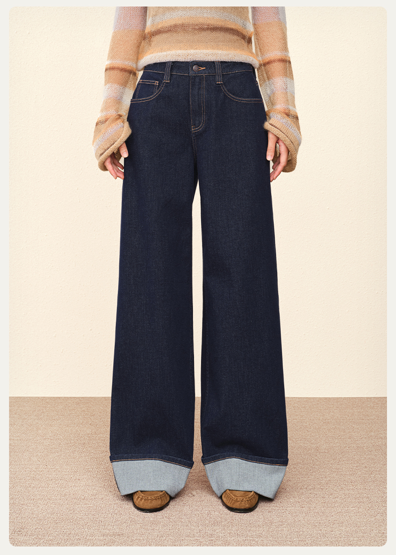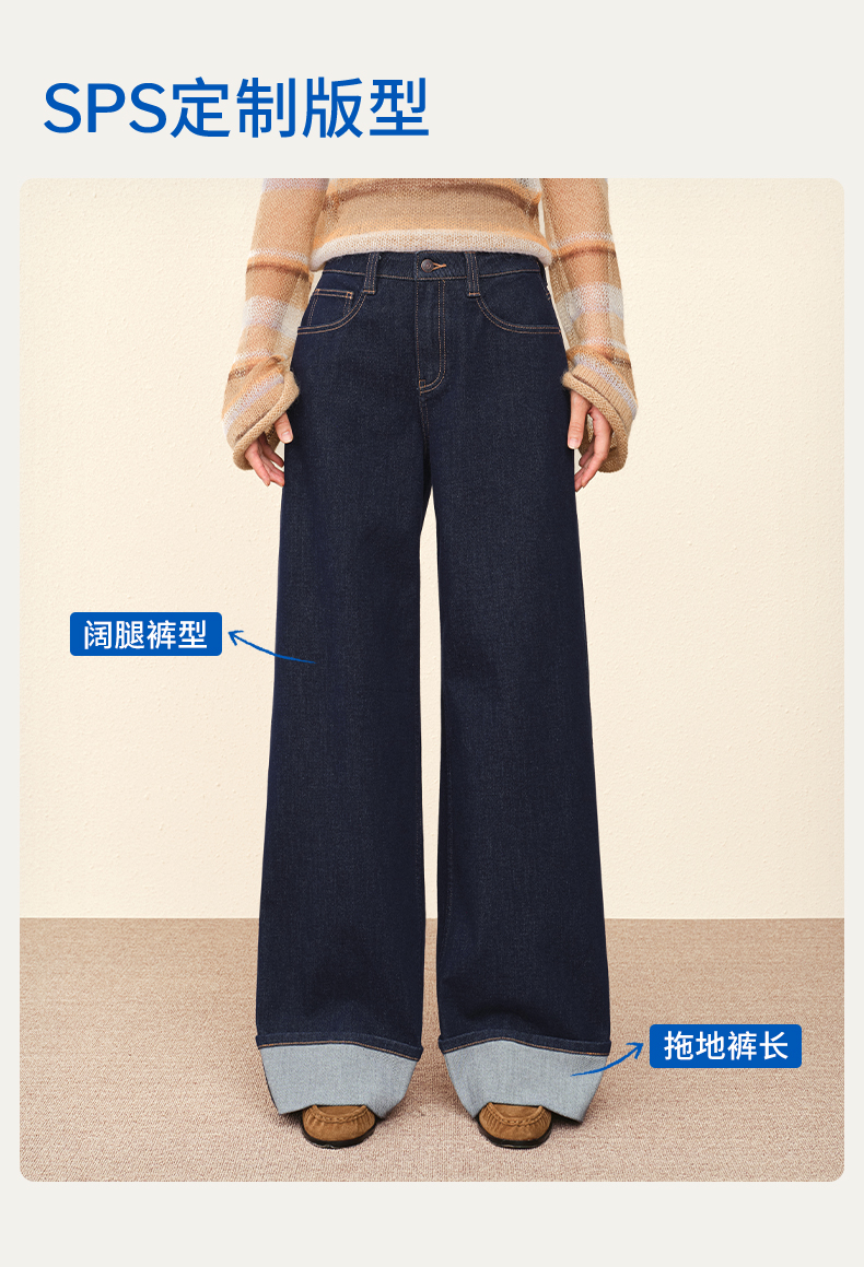 【宽松威化裤】simplepieces秋新款SPS牛仔女显瘦翻边阔腿拖地裤