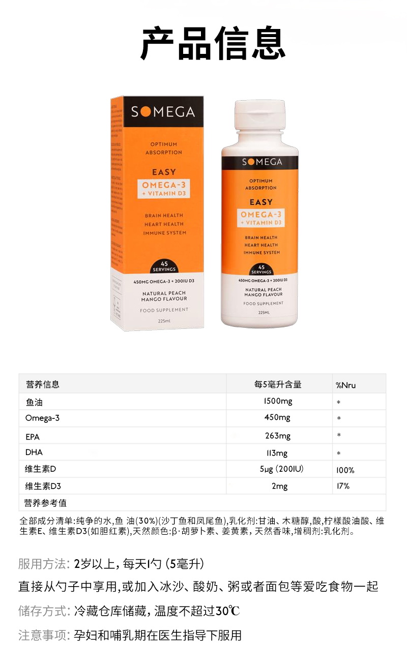 SOMEGA索美嘉乳化Omega3宝宝dha儿童语言发育障碍迟缓口服液鱼油(暖白专用链接)