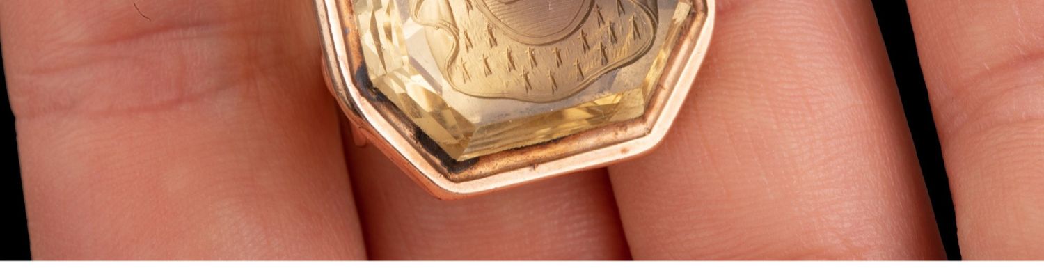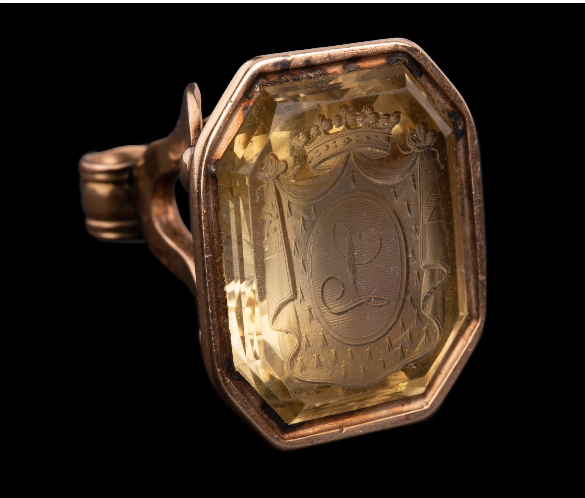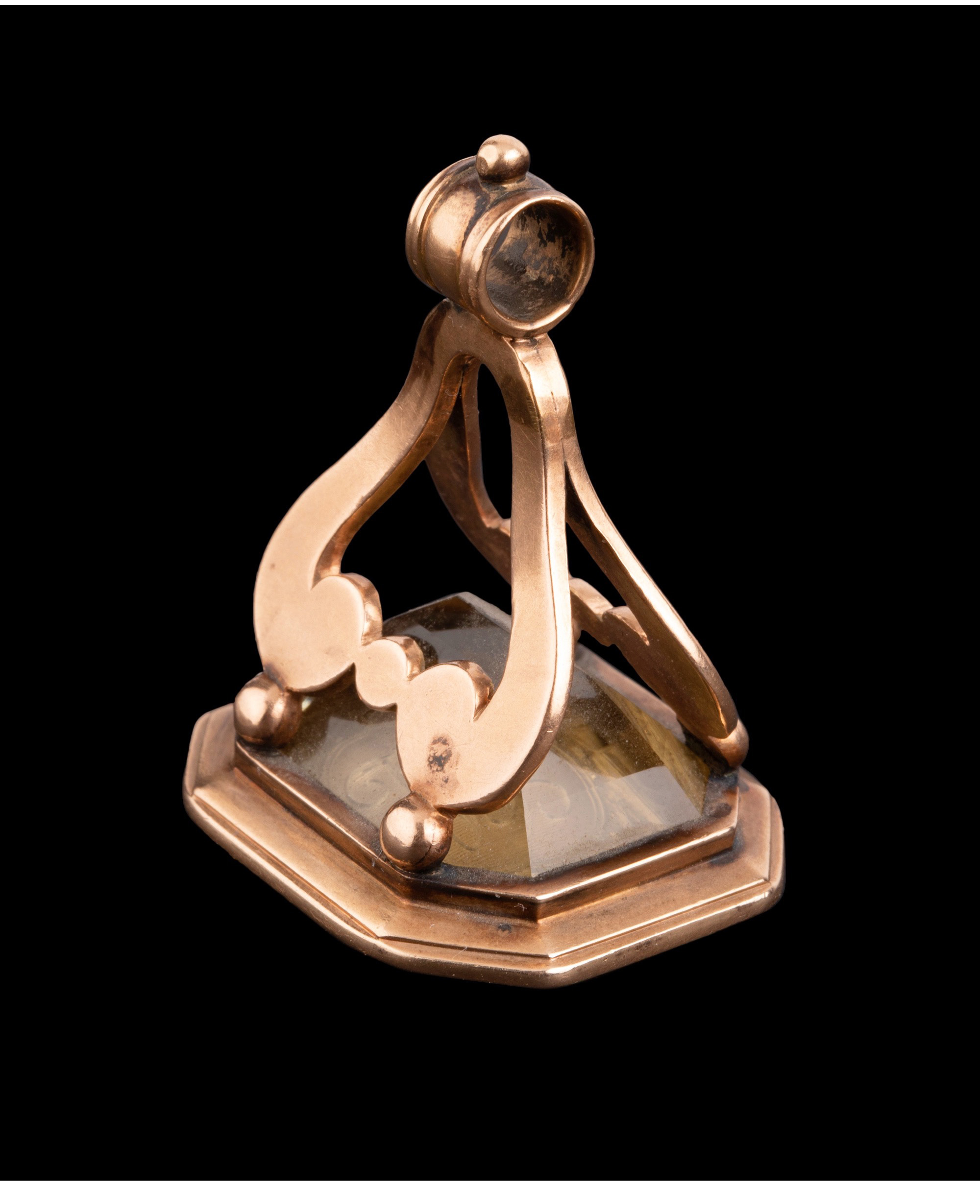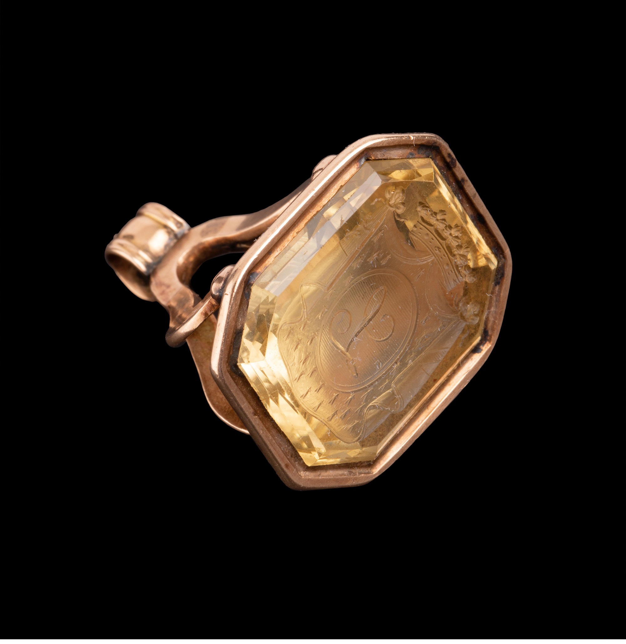 独角鹿西洋古董法国黄金镶嵌黄水晶亲王花押字雕刻盾徽印章吊坠