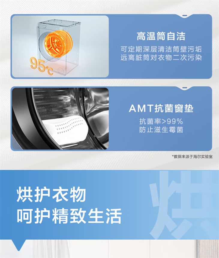 海尔(Haier)(252057)海尔洗衣机10公斤全自动精华洗直驱变频滚筒超薄家用防生锈除菌智能投放大容量 【直驱变频】XQG100-HBD1266