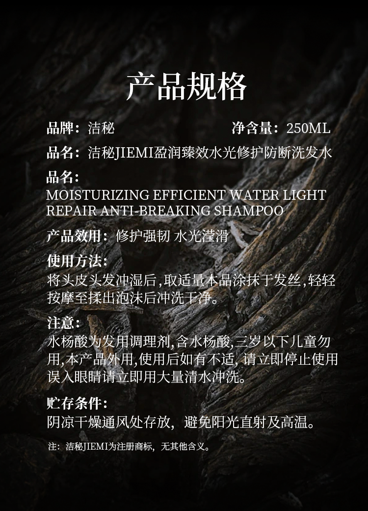 洁秘水光修护滋养洗发水250ml*1瓶(有效期至26年10月 介意勿拍!!!)