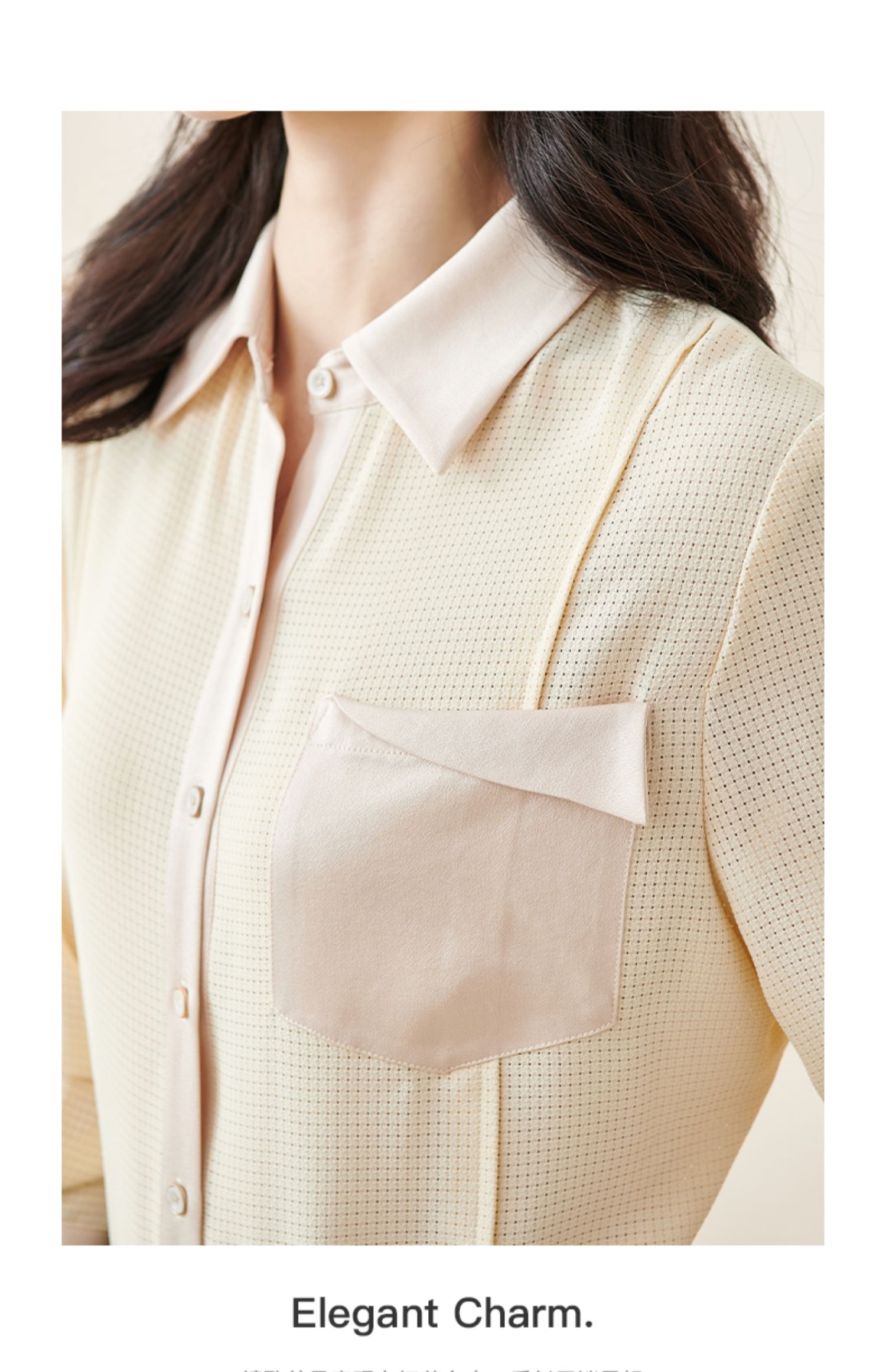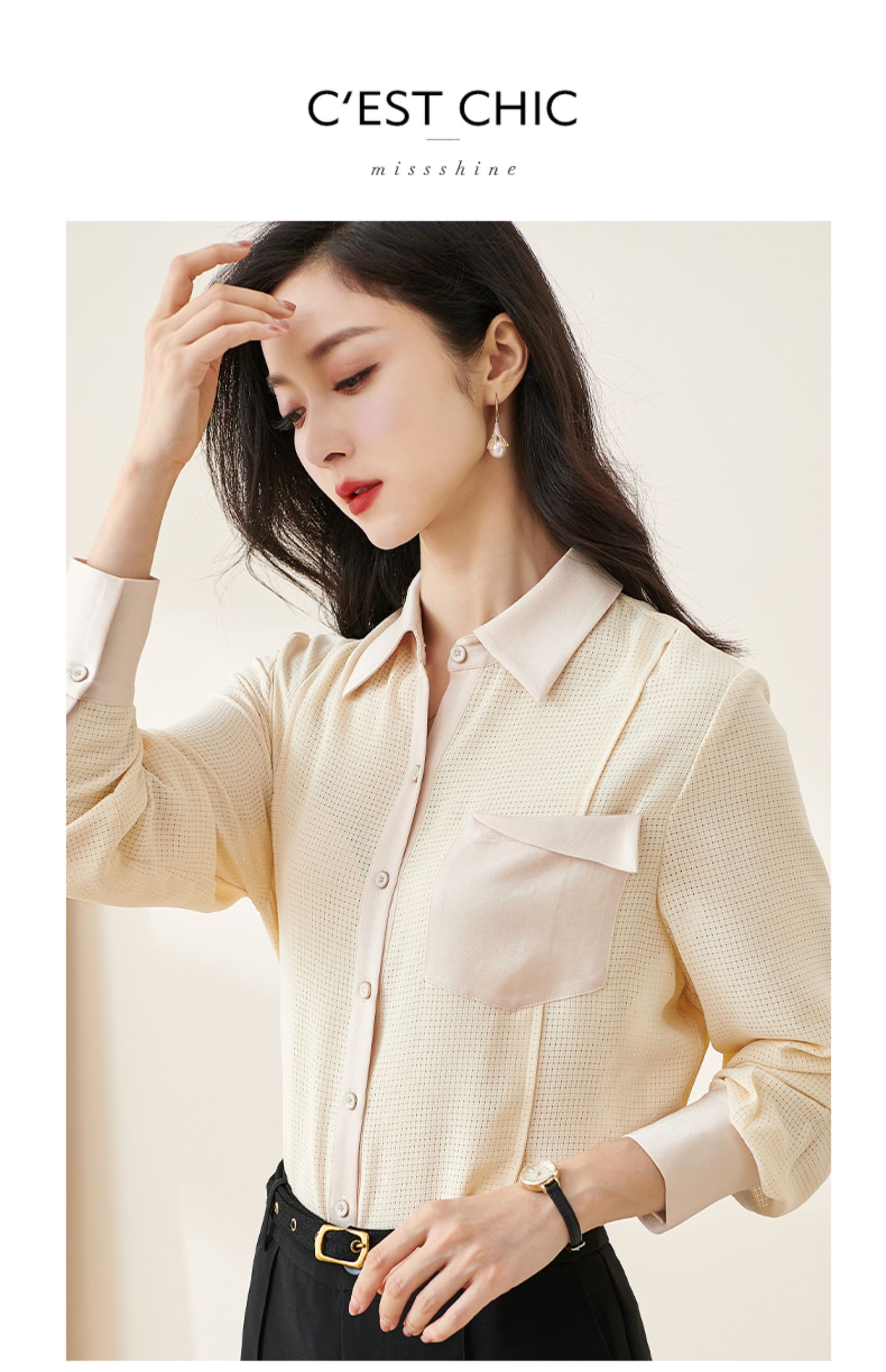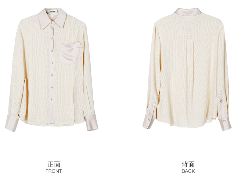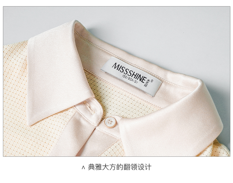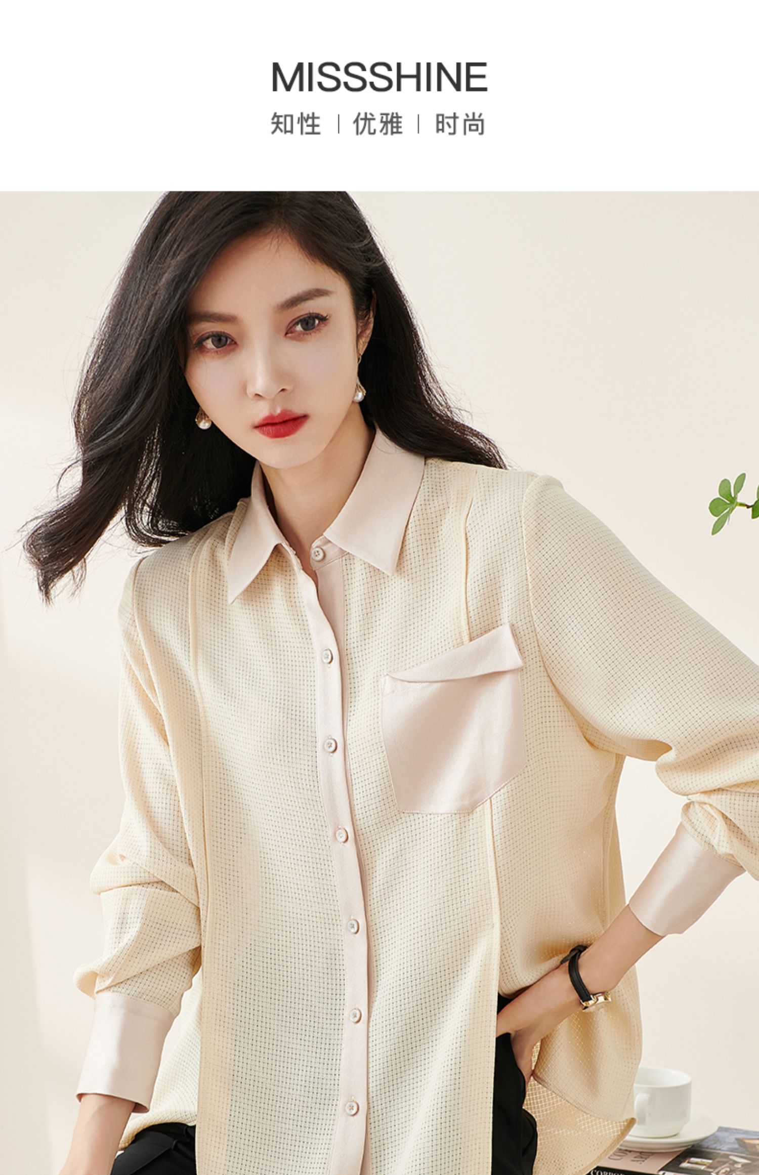 米思阳2026春季新款时尚小香风衬衫拼接醋酸薄款宽松长袖衬衣2140