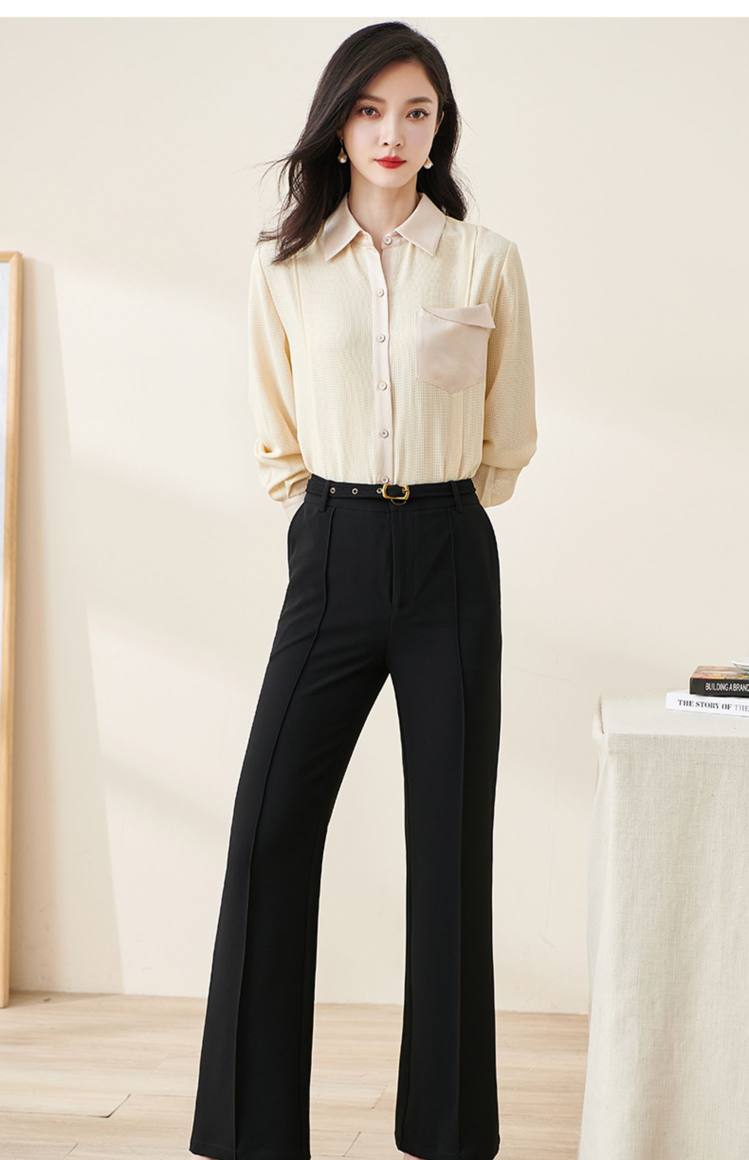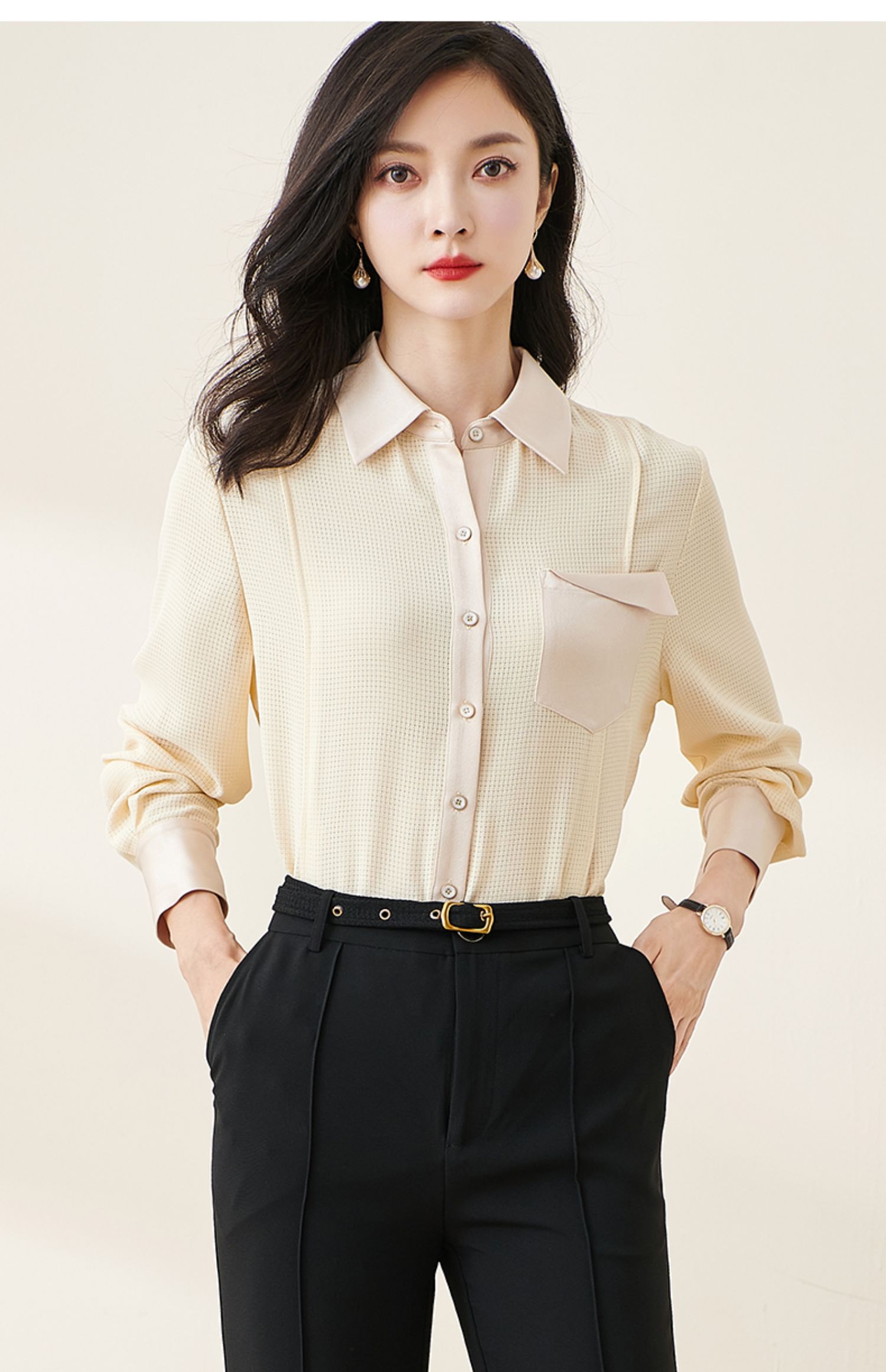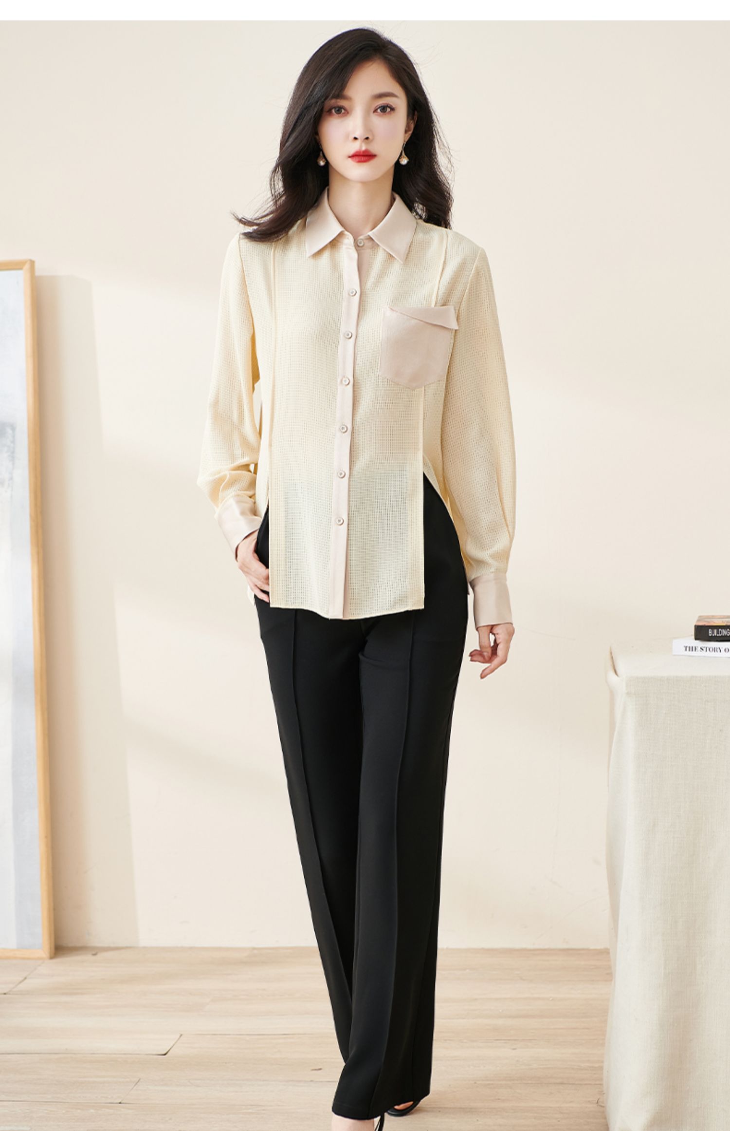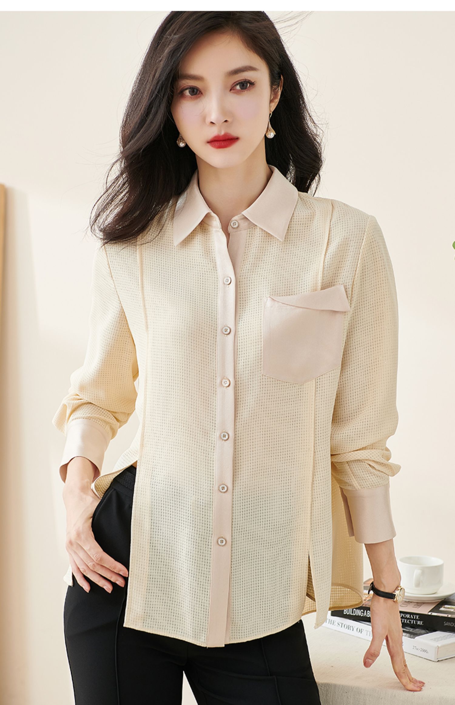 米思阳2026春季新款时尚小香风衬衫拼接醋酸薄款宽松长袖衬衣2140