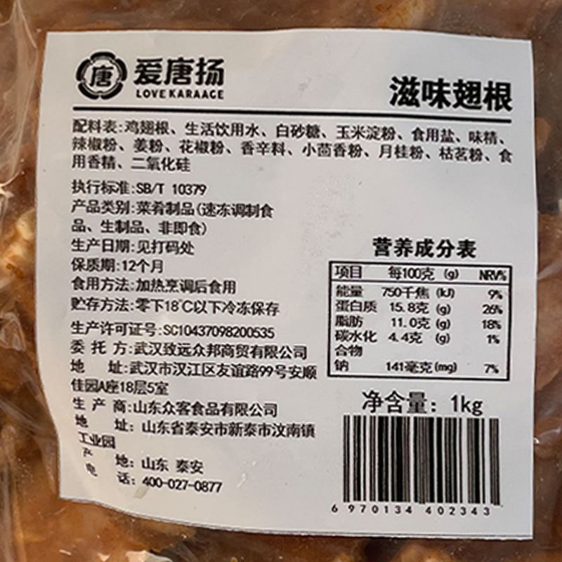 爱唐扬滋味翅根 1kg(40-50g)烤翅炸鸡半成品餐饮商用小吃