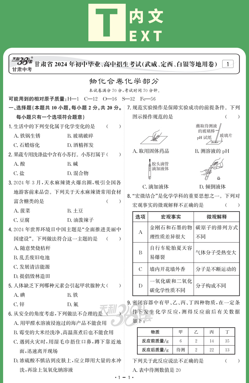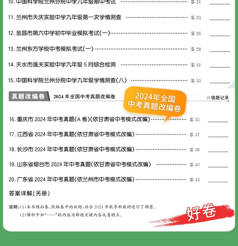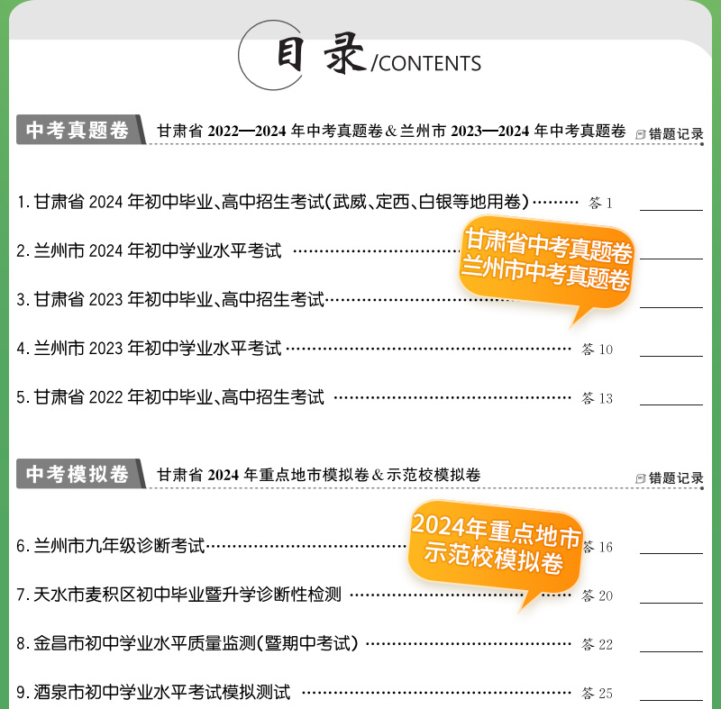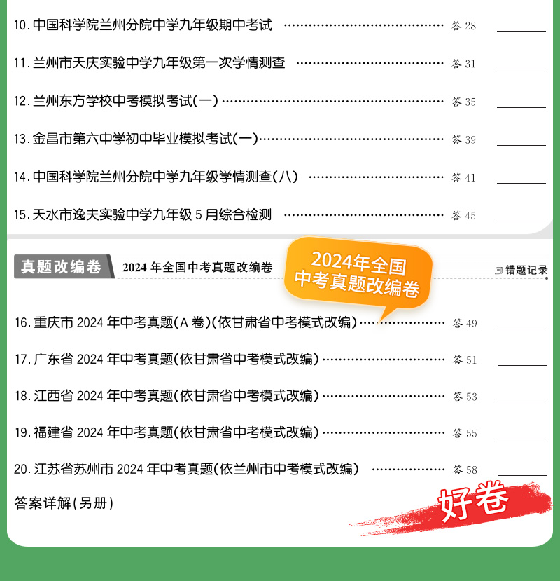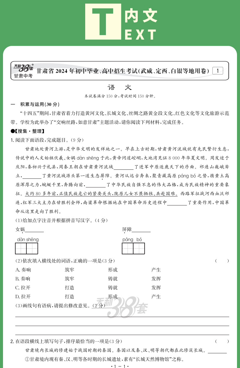 天利38套 2025甘肃中考试题精选 语文 数学 英语 物理 化学