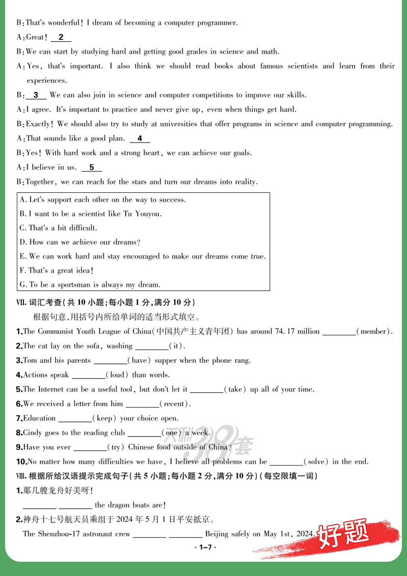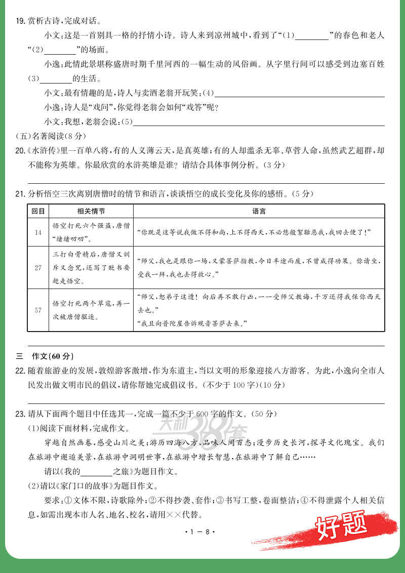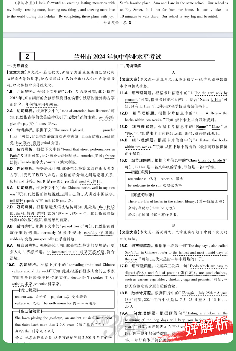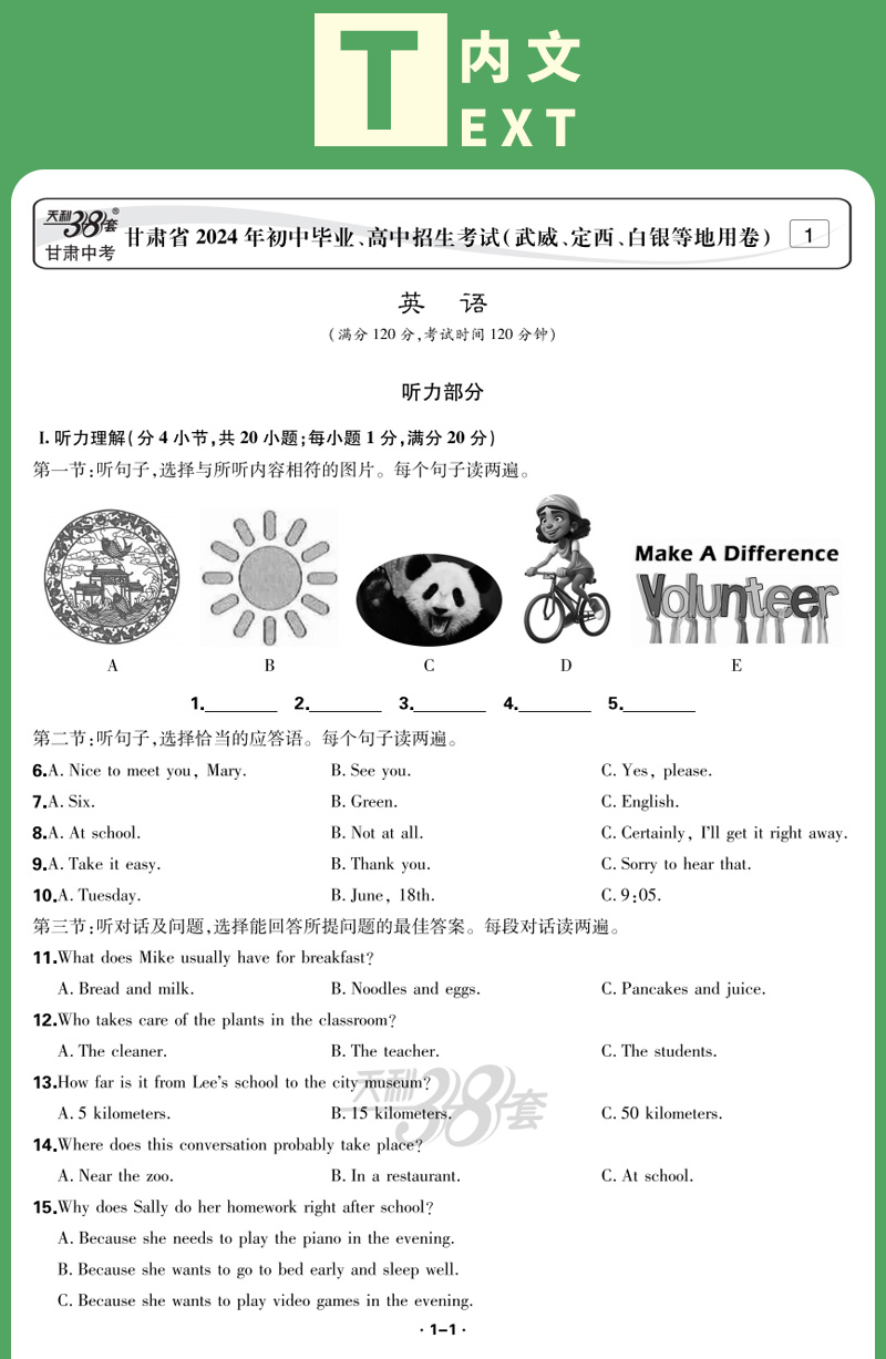 天利38套 2025甘肃中考试题精选 语文 数学 英语 物理 化学