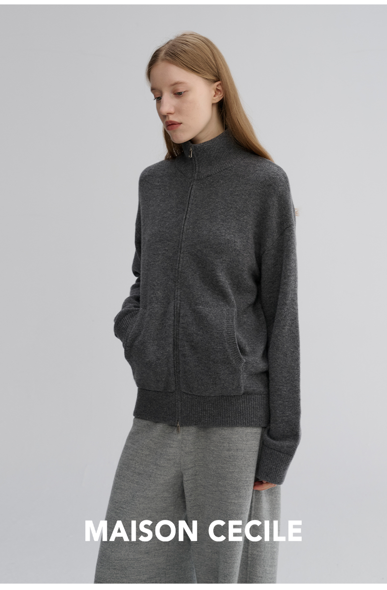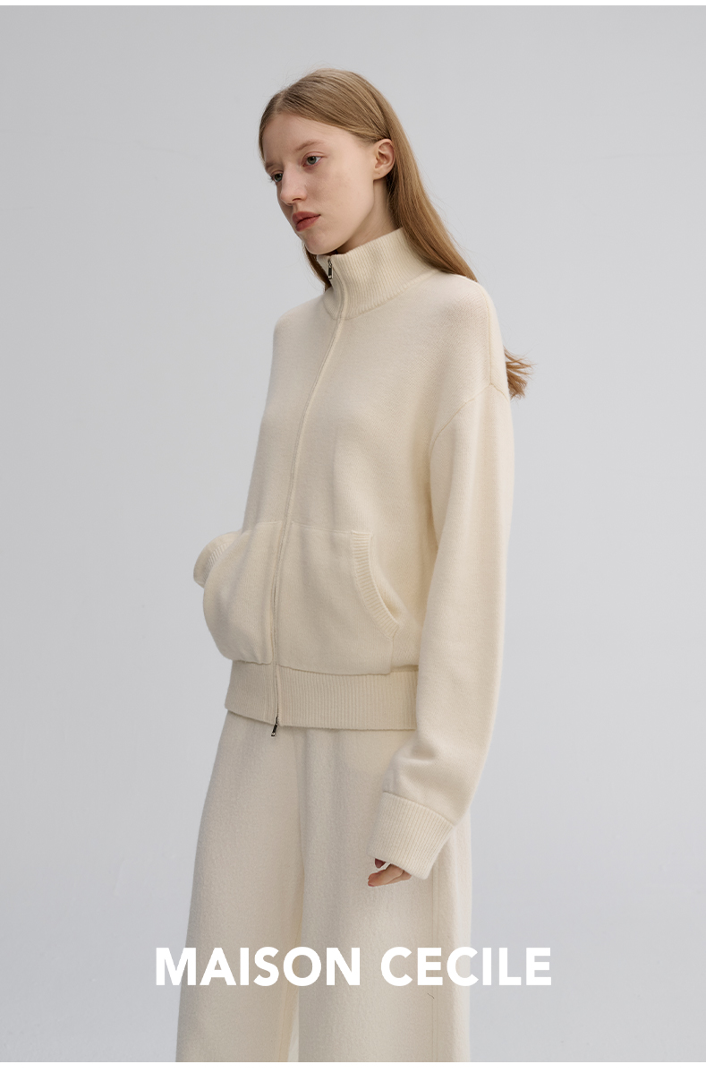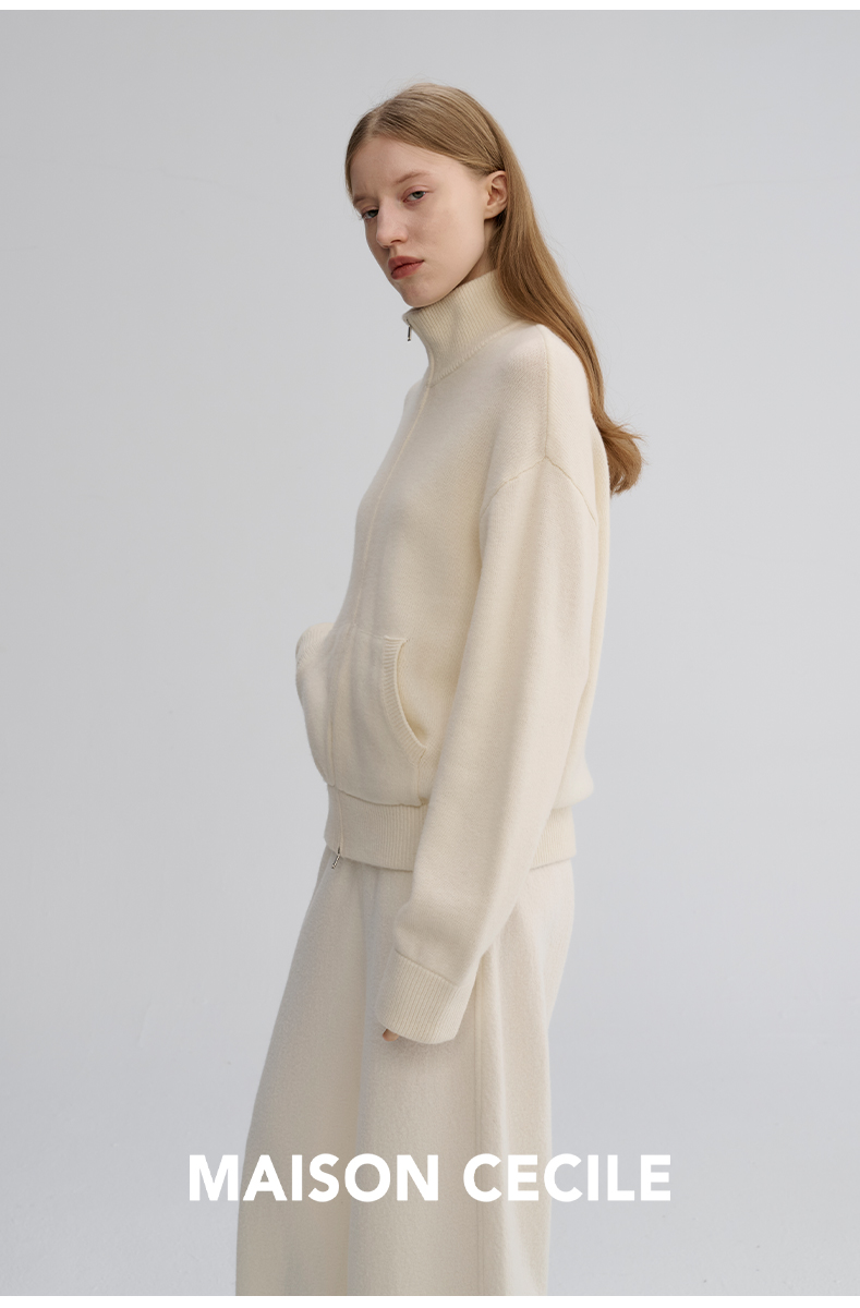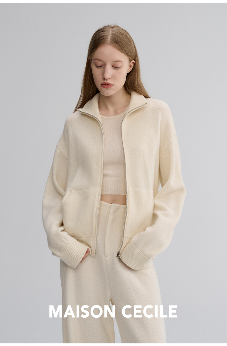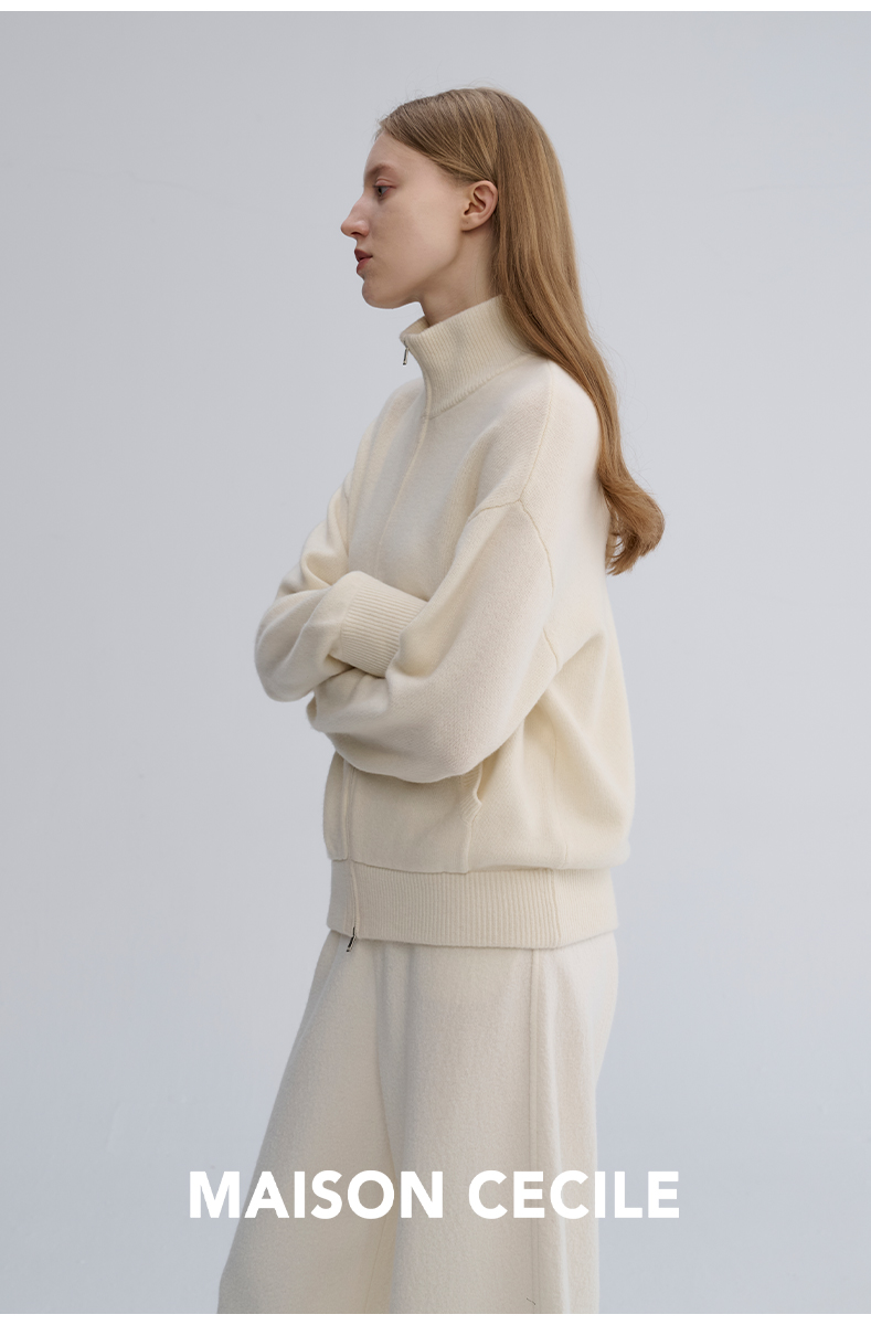 MAISON CECILE 两色|羊毛厚织极简立领通勤保暖百搭拉链针织外套