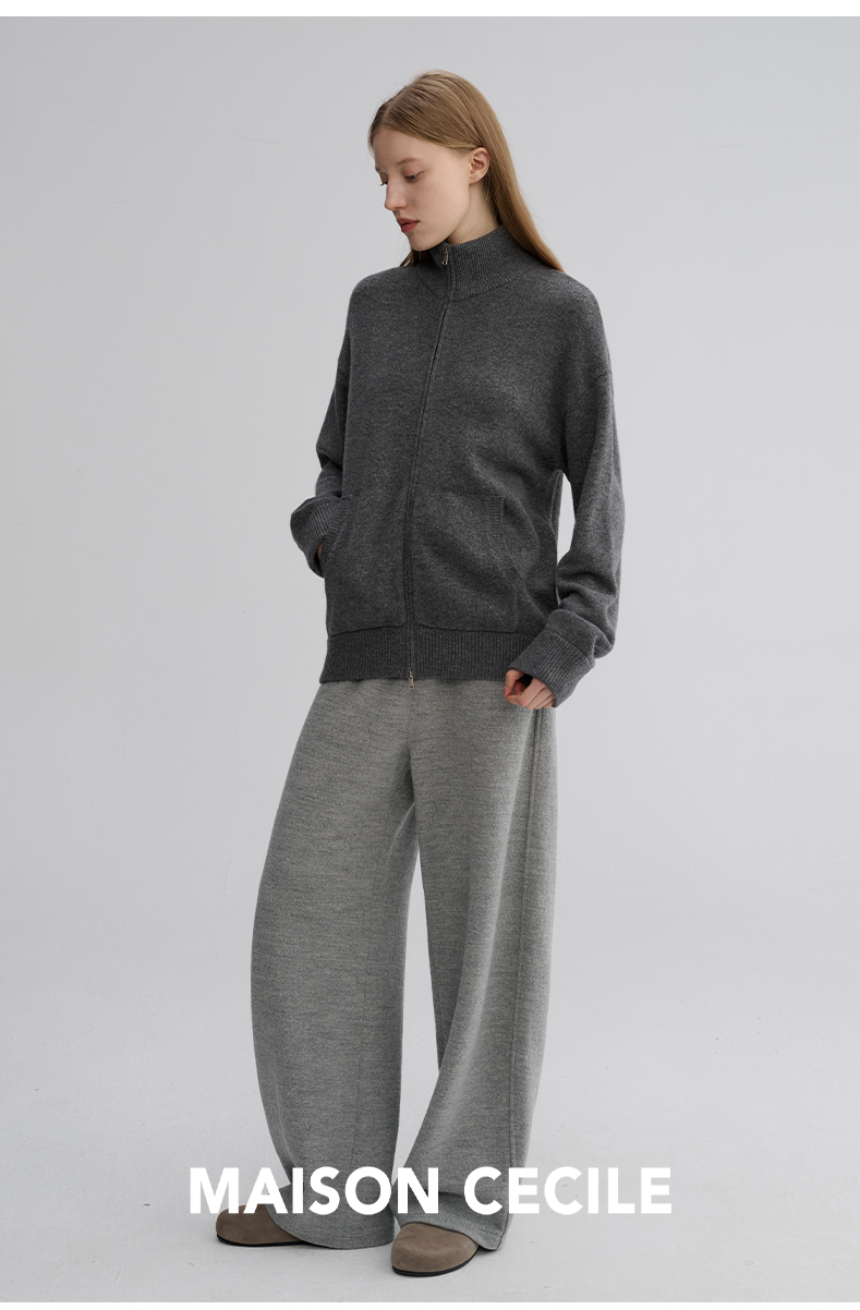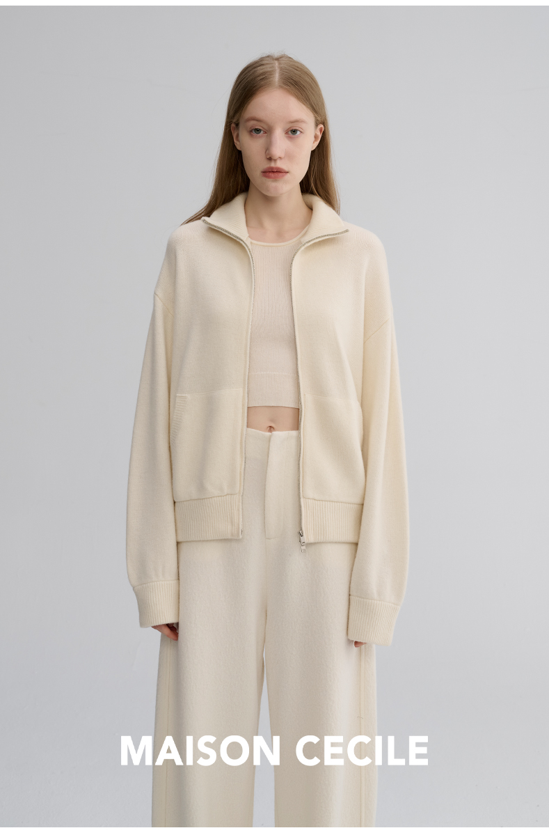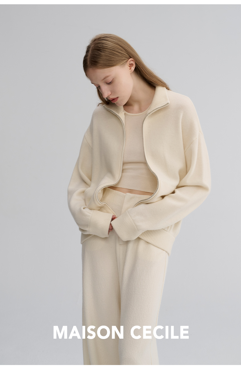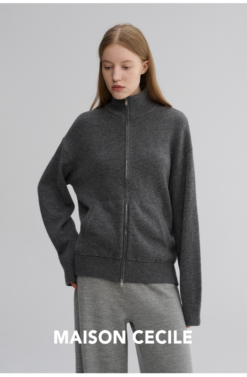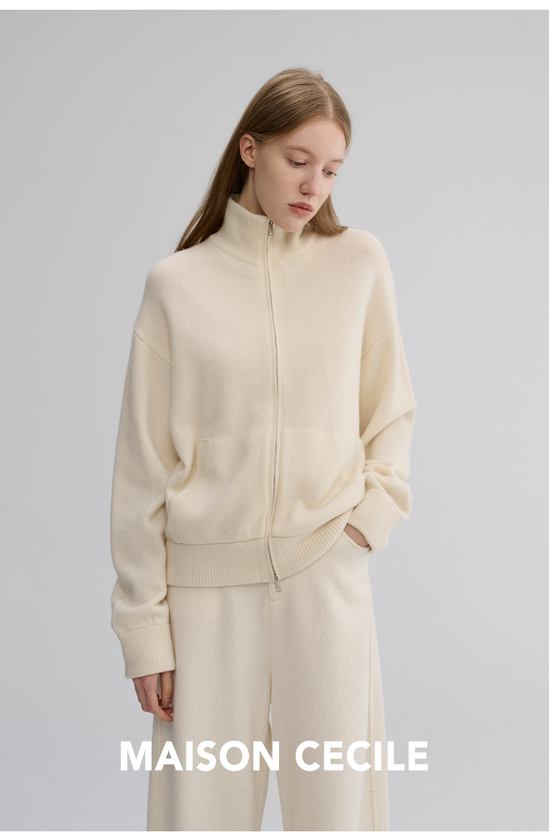 MAISON CECILE 两色|羊毛厚织极简立领通勤保暖百搭拉链针织外套