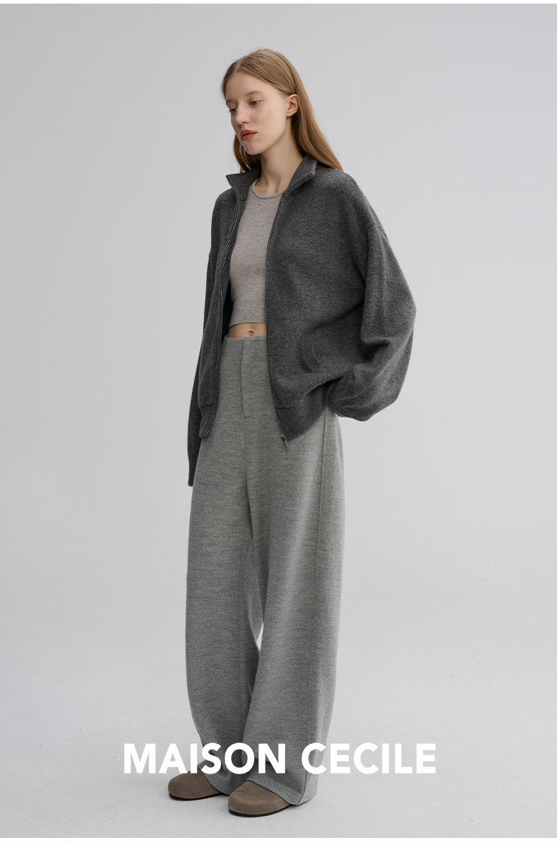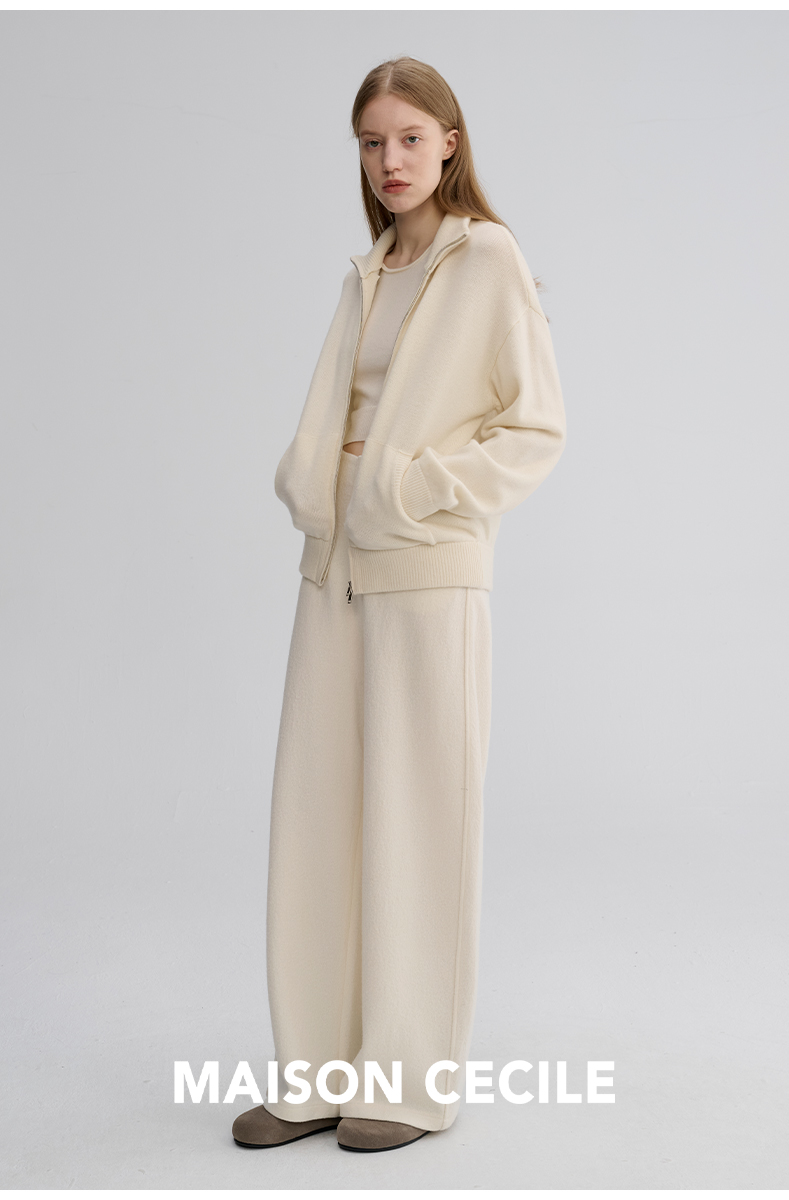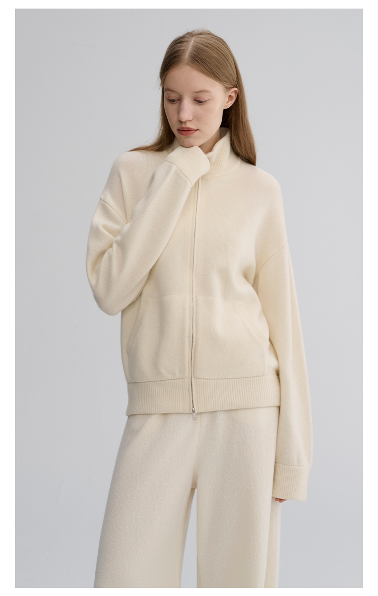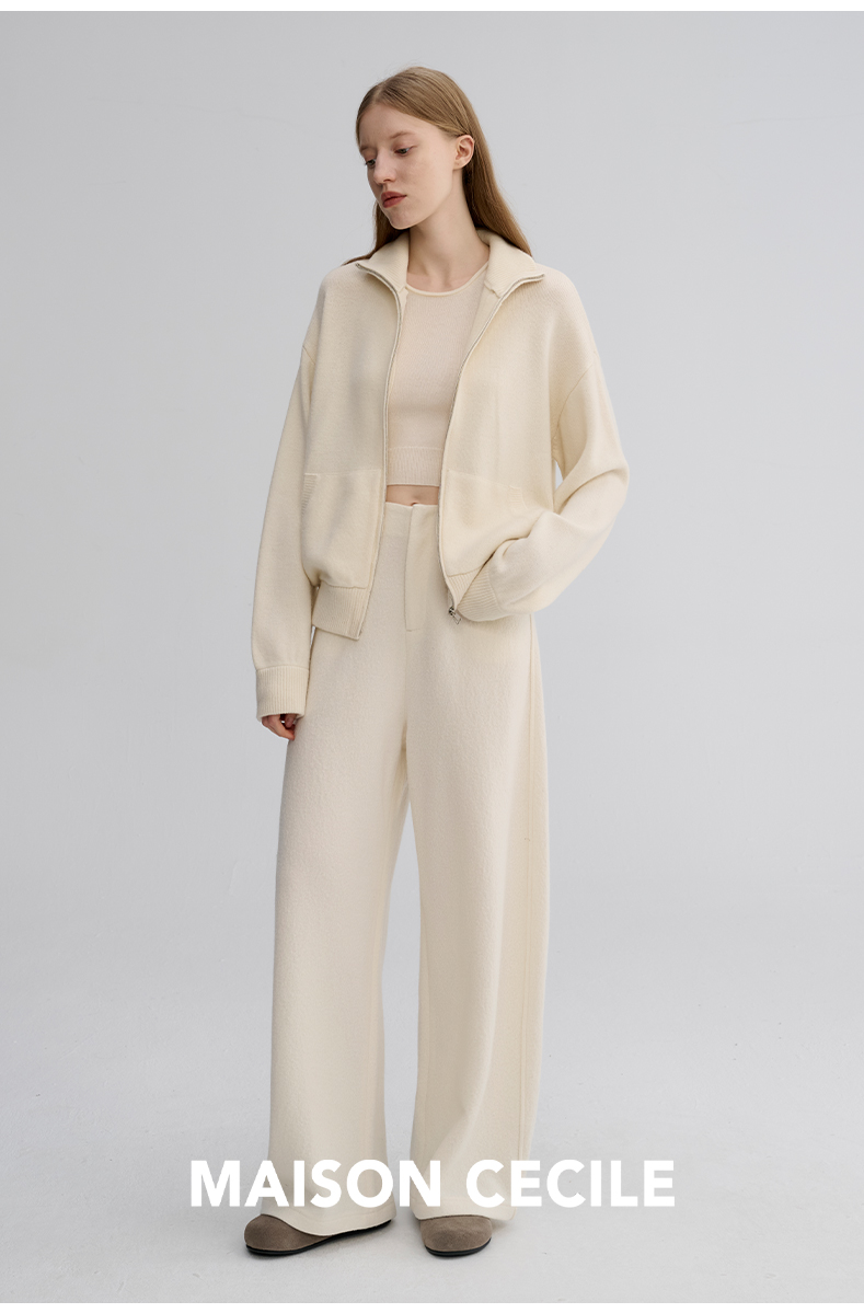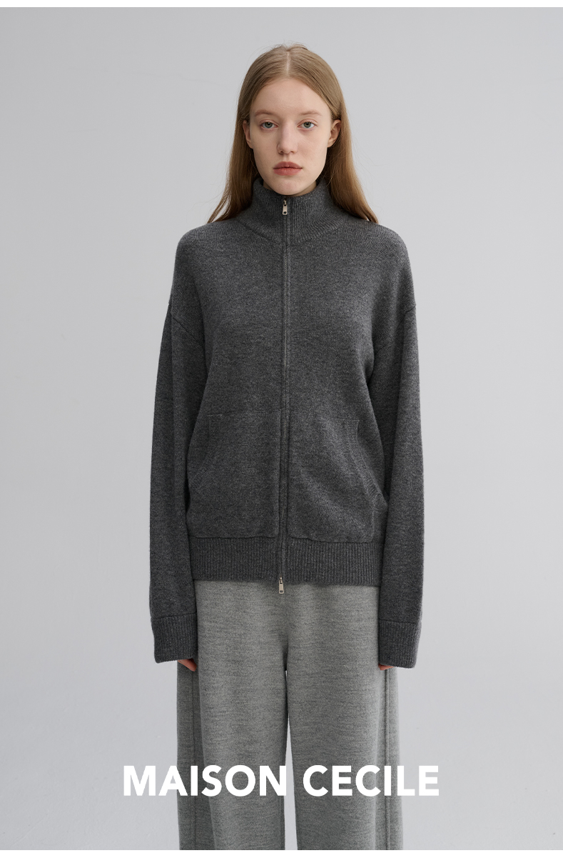 MAISON CECILE 两色|羊毛厚织极简立领通勤保暖百搭拉链针织外套