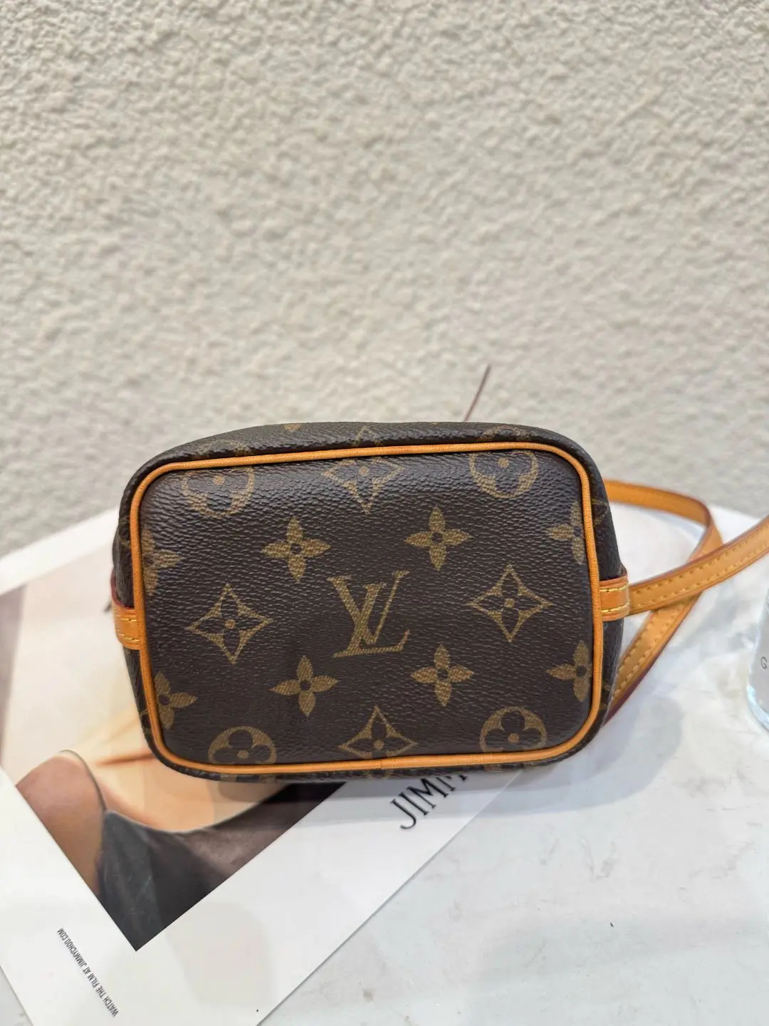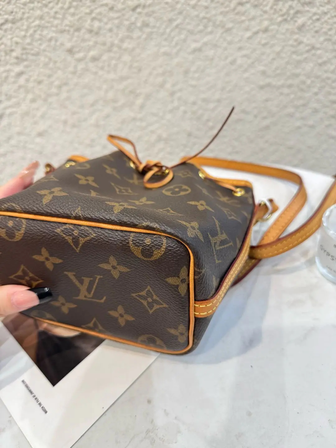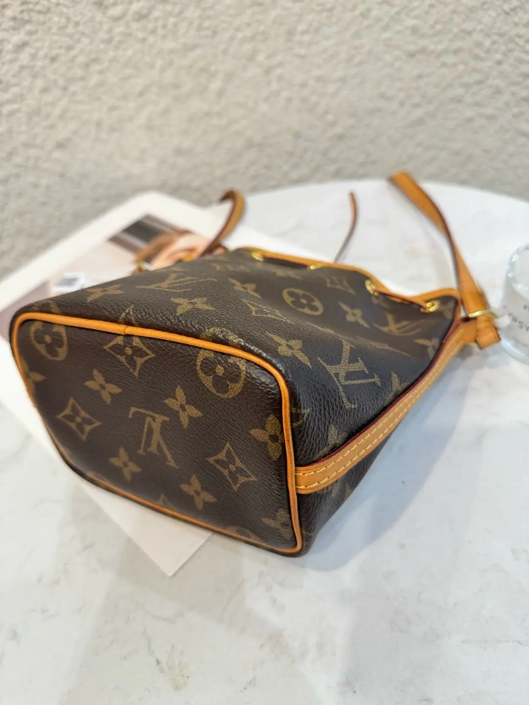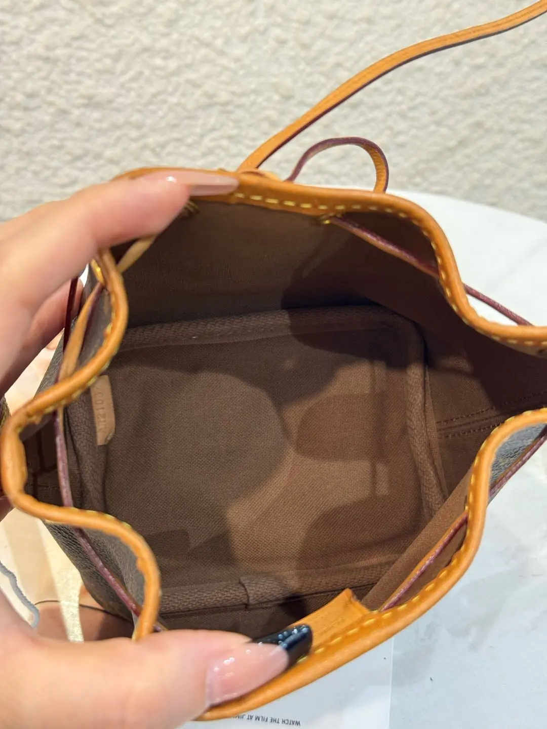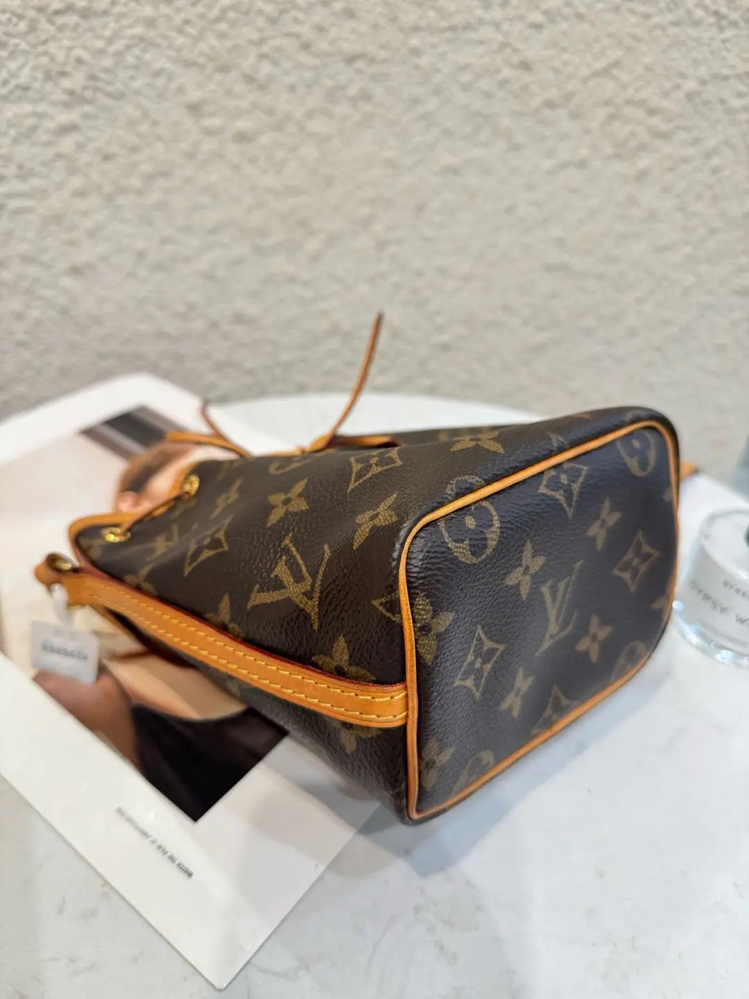 【商品详情】正品二手 LV NOE 老花 nano 抽绳 水桶 🧺95新 13x15。植鞣革正常使用感。小小身材大大容量。