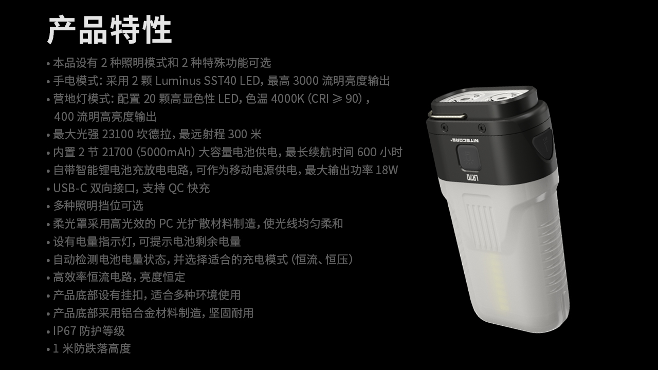 NITECORE奈特科尔LR70户外多功能双光源3000流明高亮充电营地灯