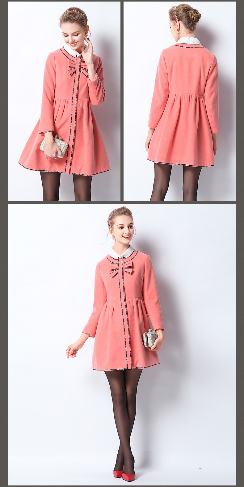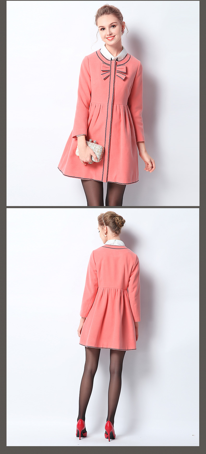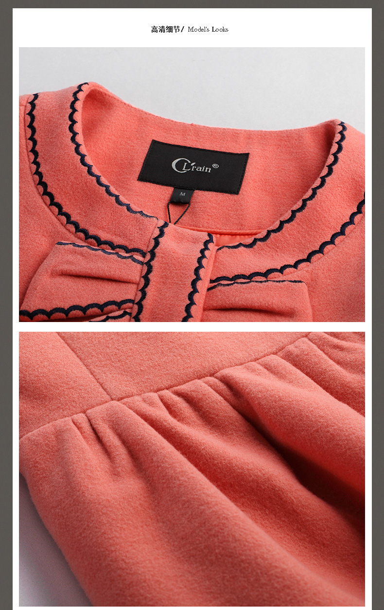欧芮儿2015女士冬季新款时尚修身长袖圆领裙摆收腰中长款花边外套