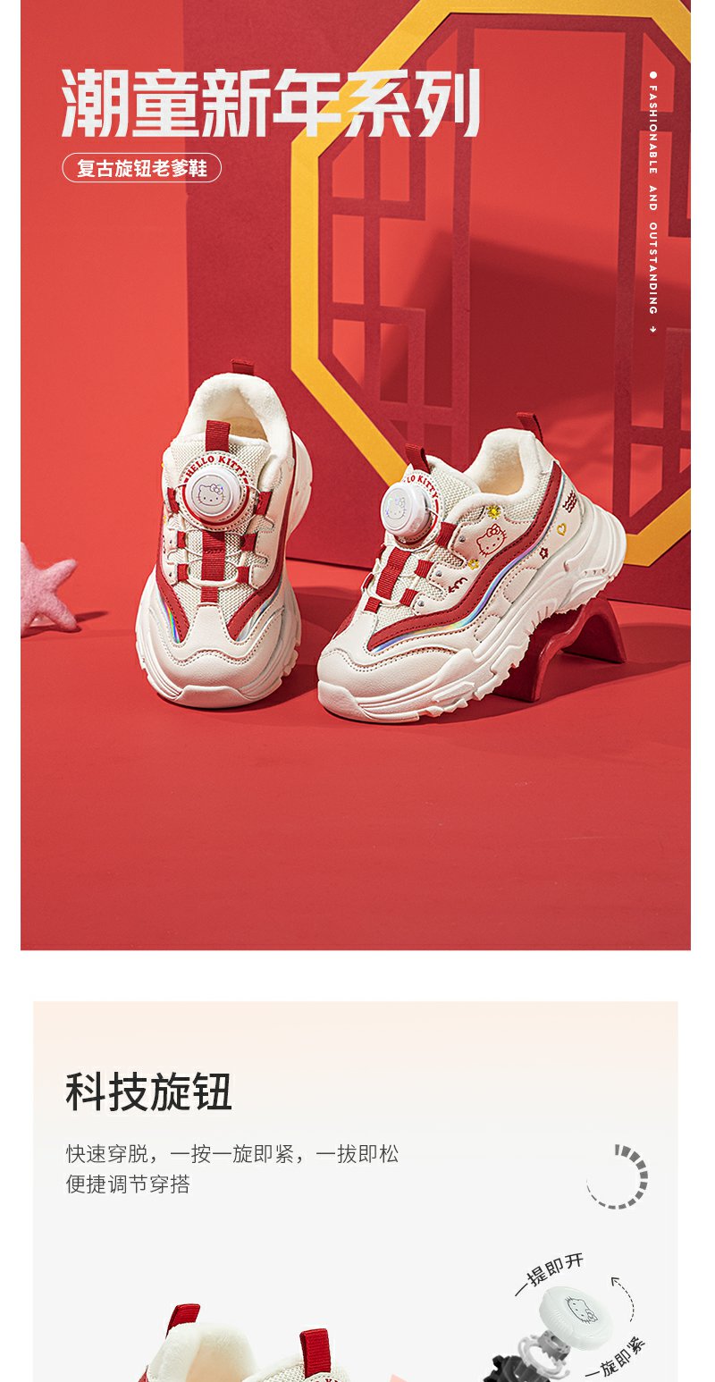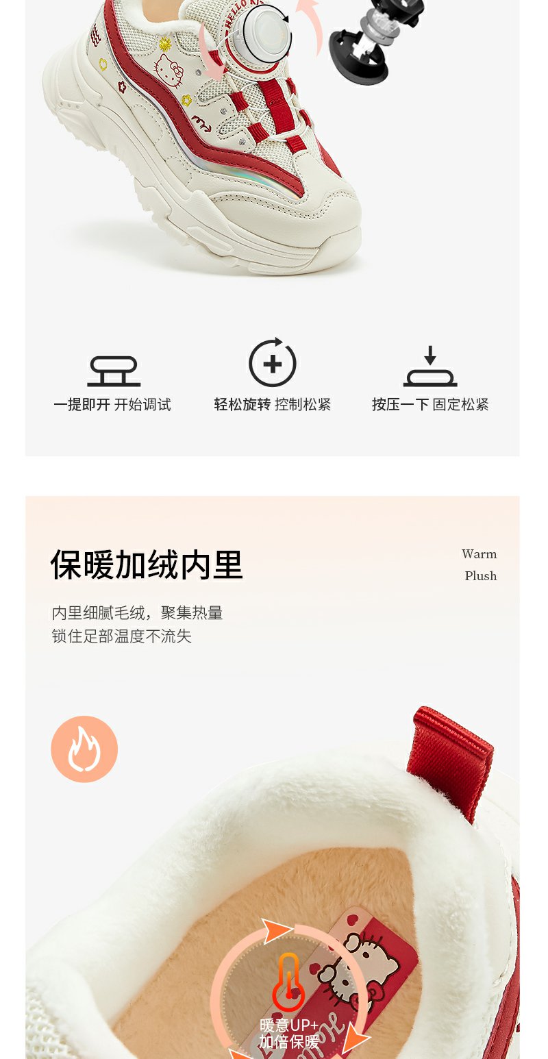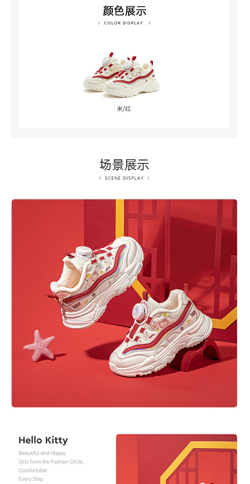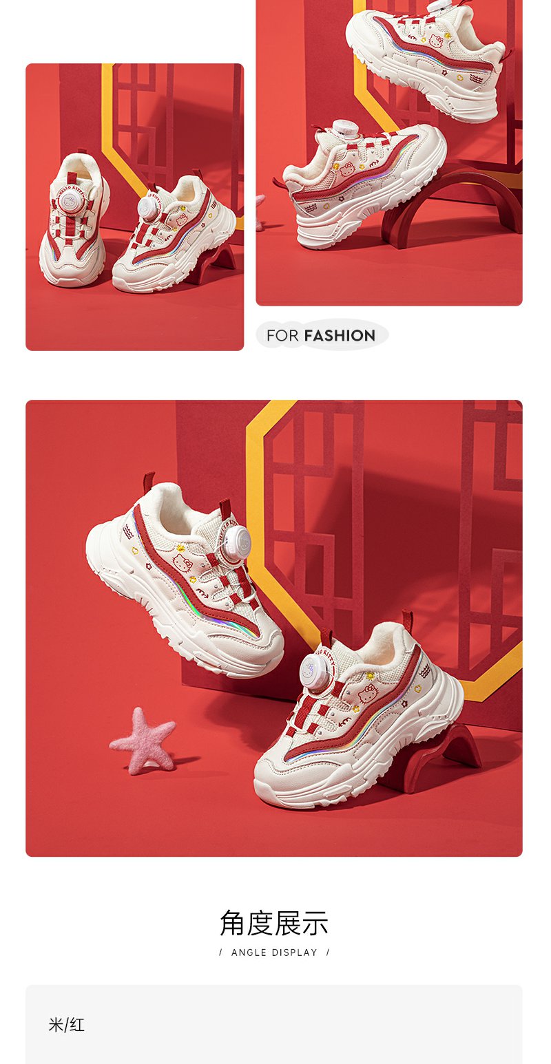 HelloKitty女童鞋子冬季加绒二棉运动鞋2023新款棉鞋秋冬款儿童鞋