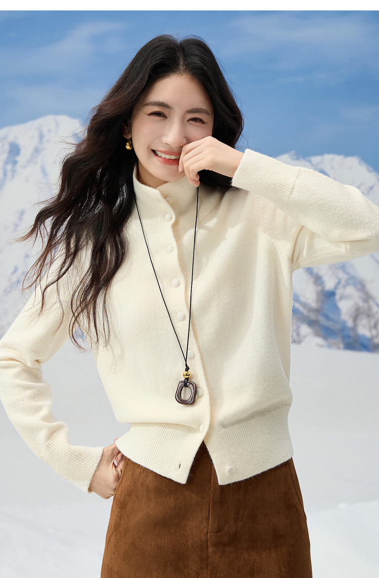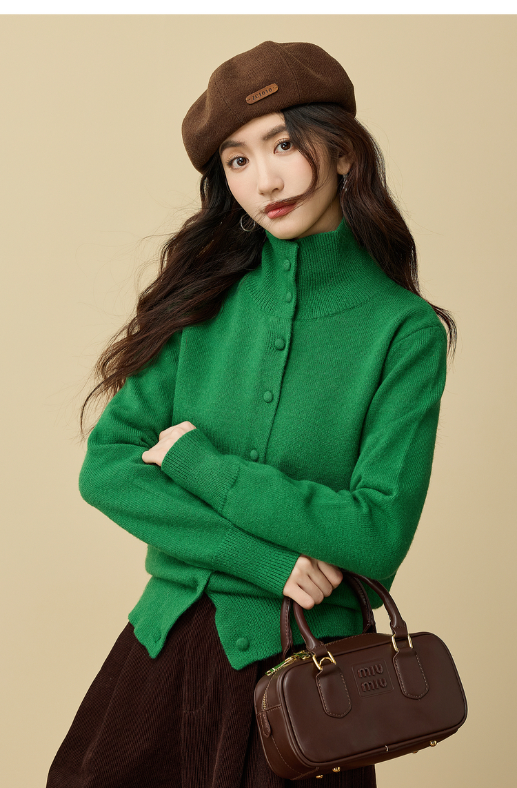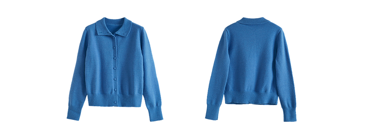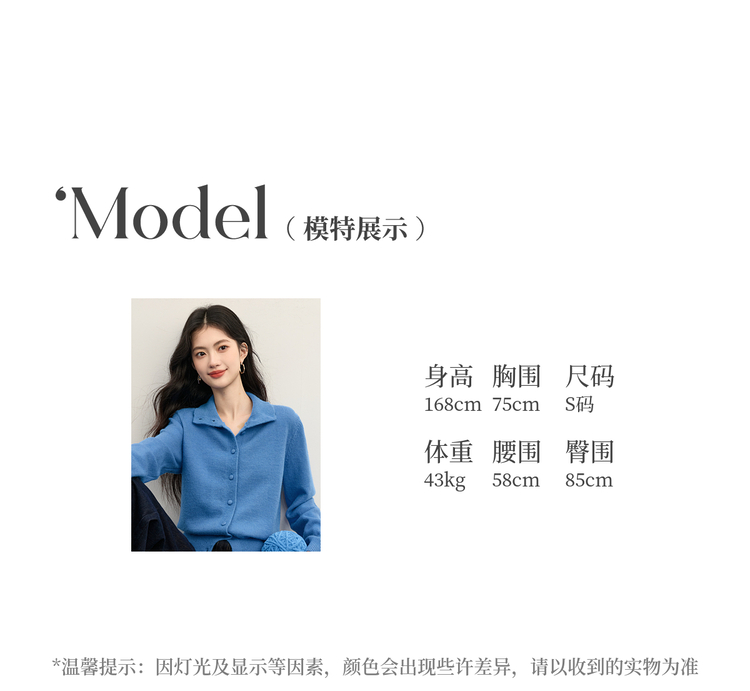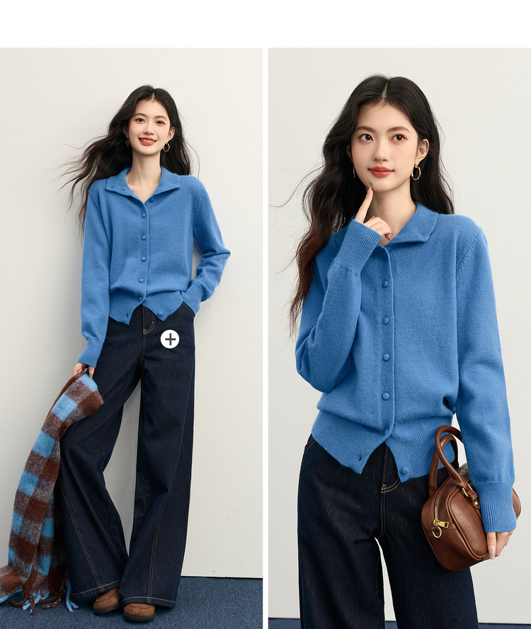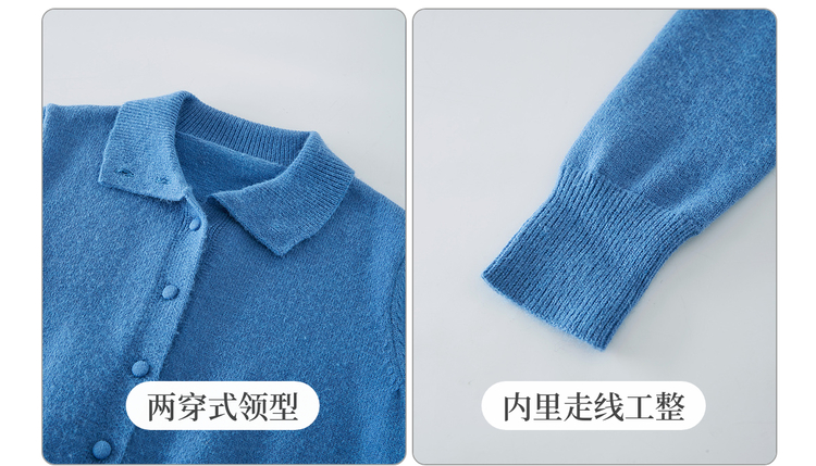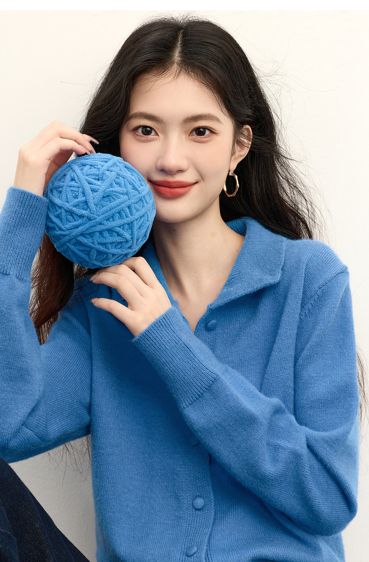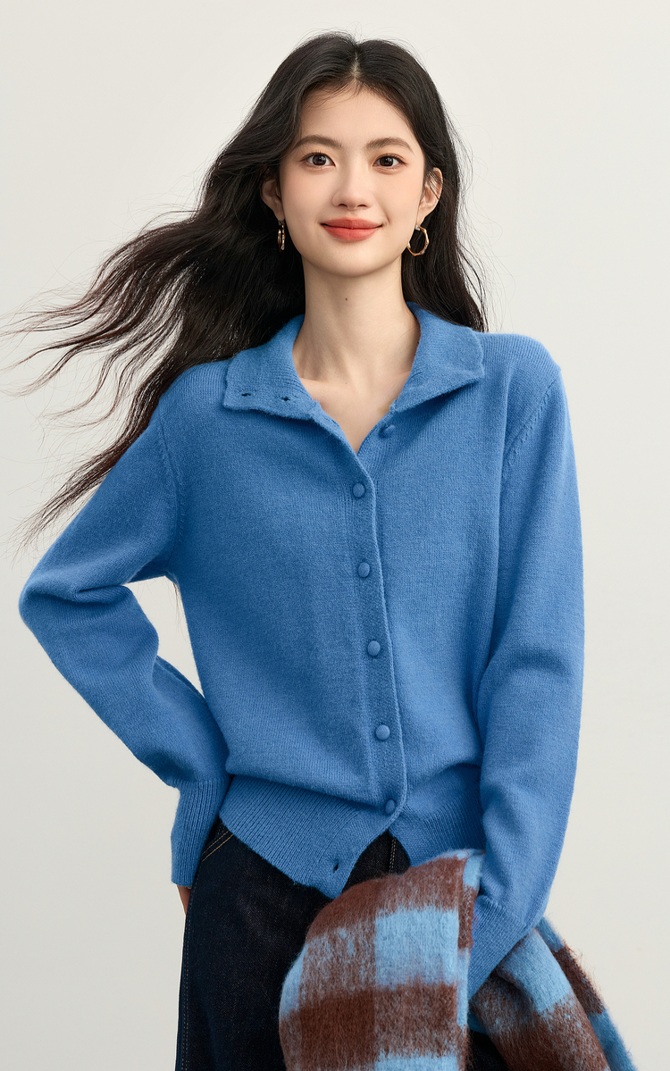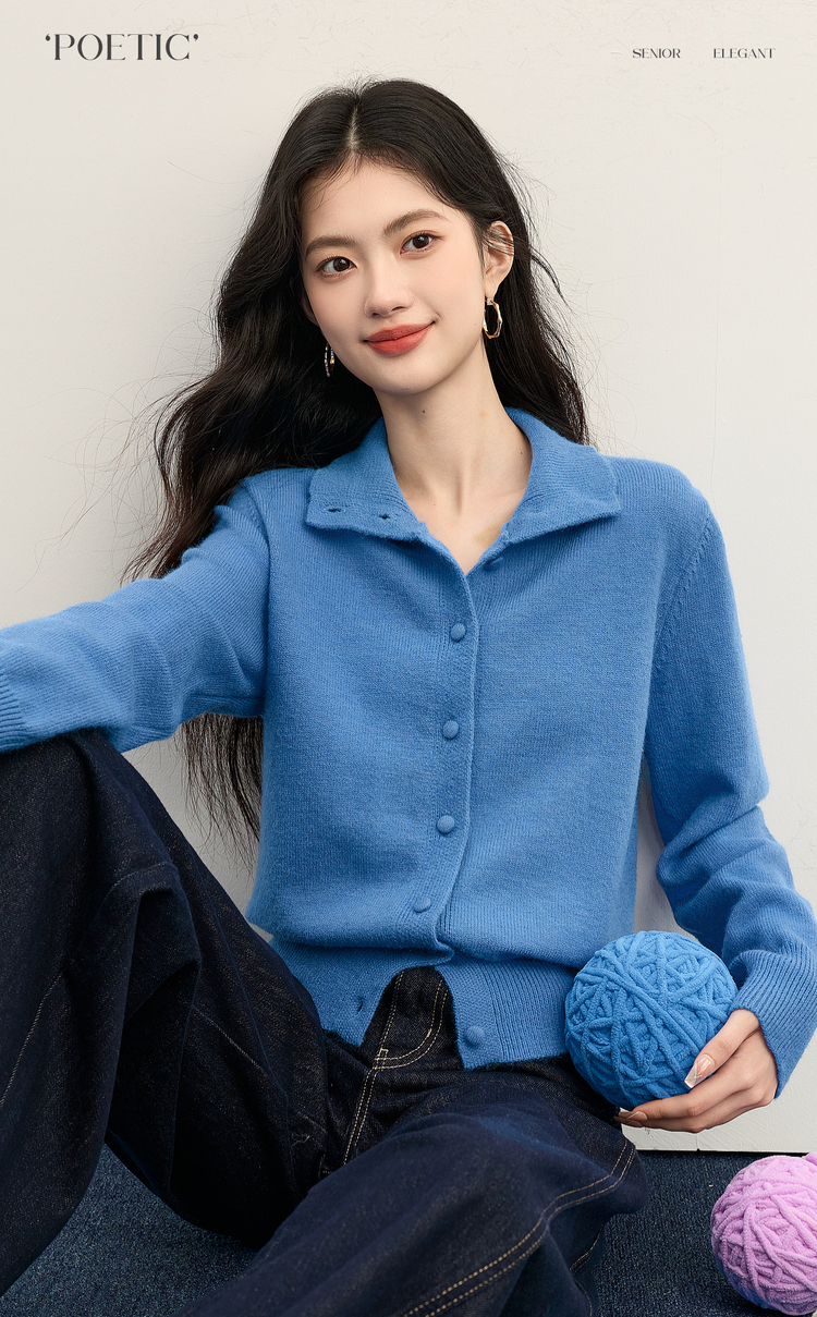 【周四狂欢价】熙世界独特绝美克莱因蓝毛衣开衫女长袖翻领针织上衣2025秋冬新款