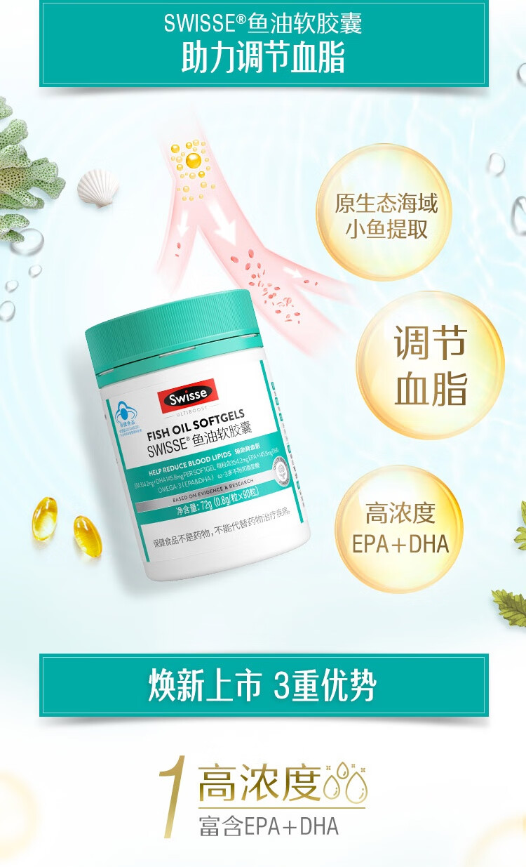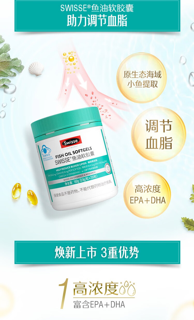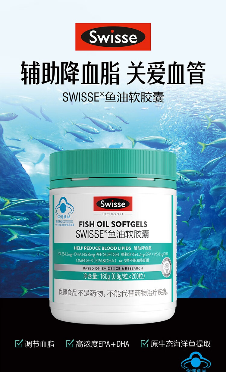 【国内版】Swisse 斯维诗鱼油软胶囊 200粒装 调节三高
