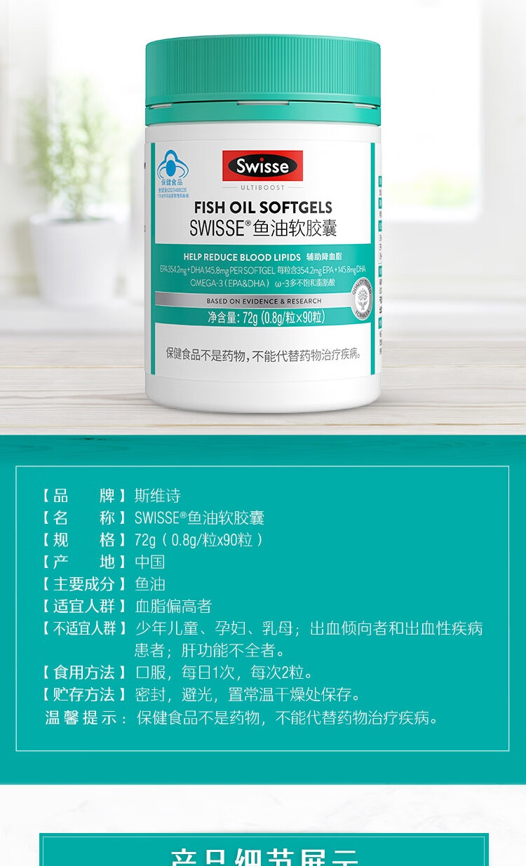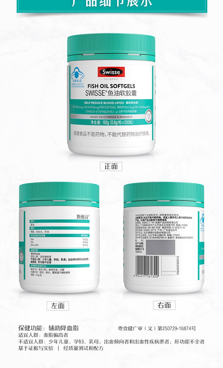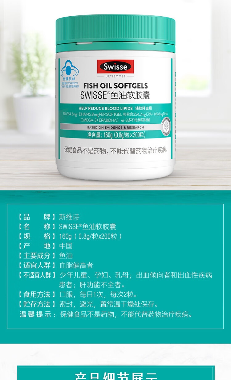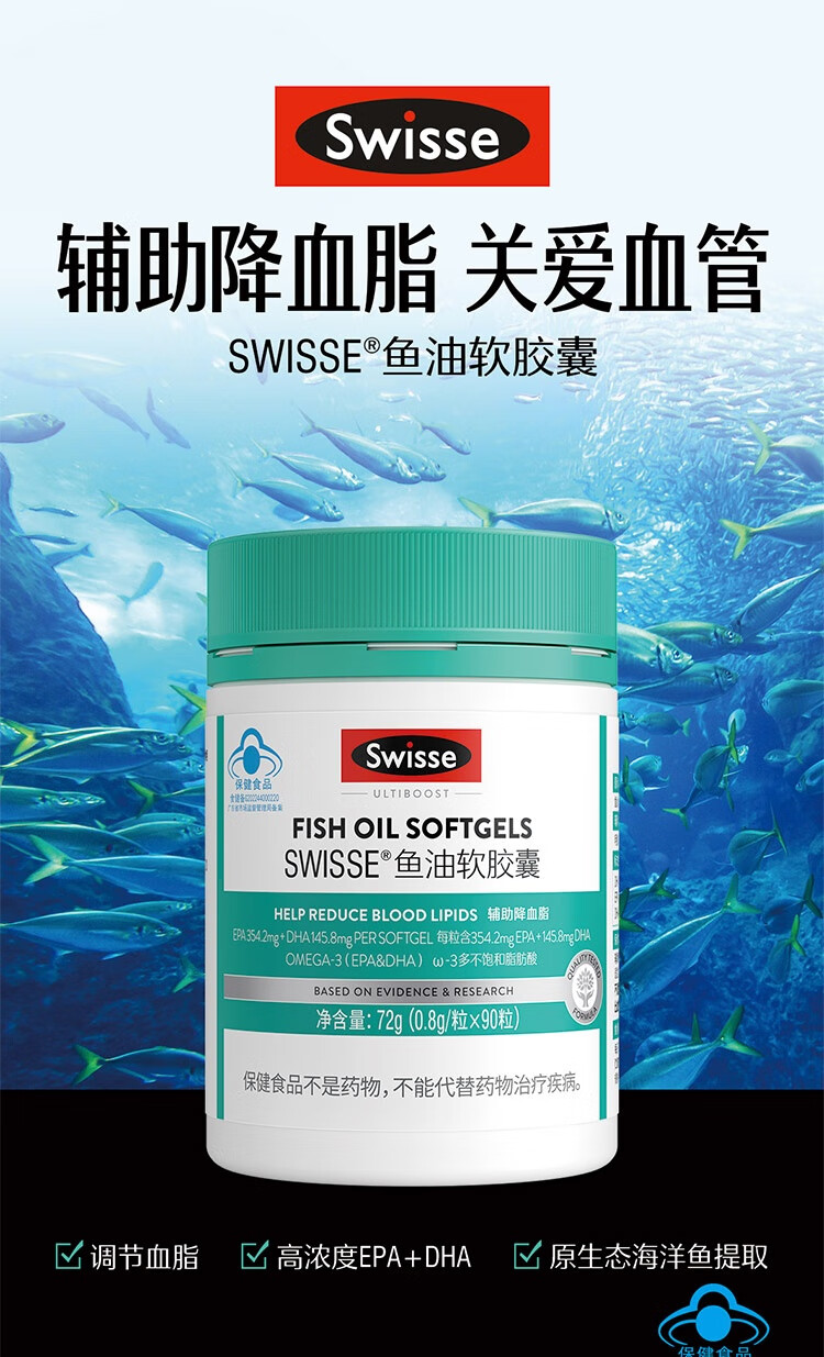 【国内版】Swisse 斯维诗鱼油软胶囊 200粒装 调节三高