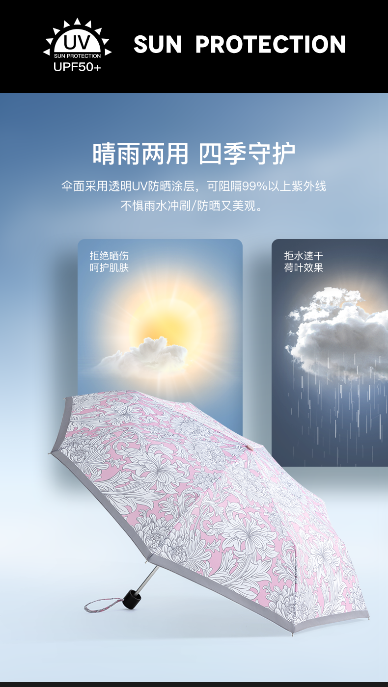 新品Fulton 富尔顿FULTON英国进口MORRIS胭脂点雪防晒三折伞(送冰袖)