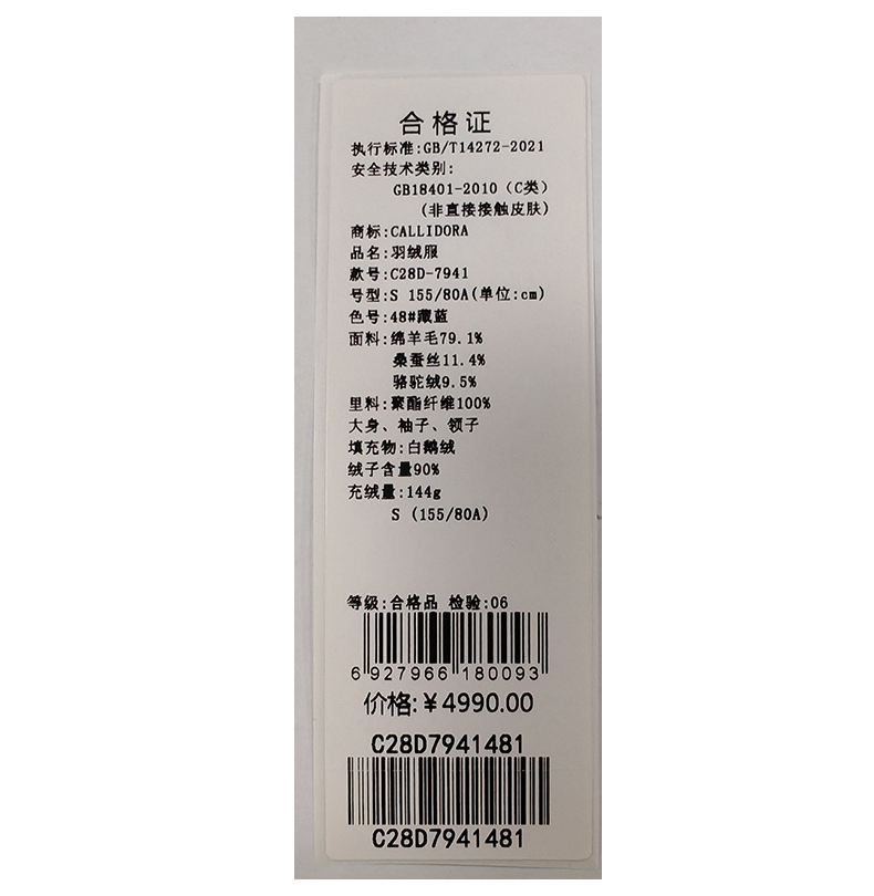 卡莉朵拉羽绒服C28D7941