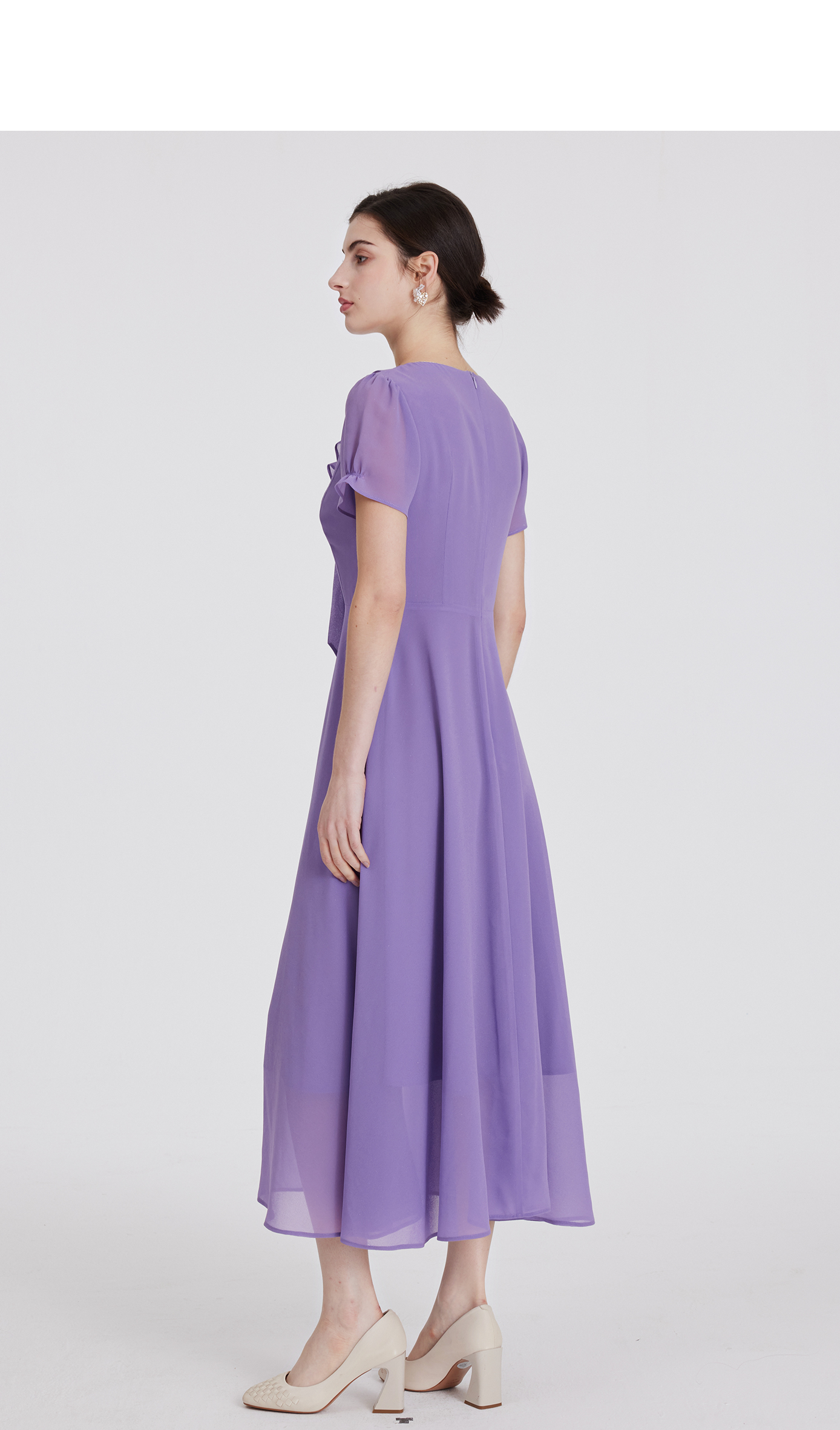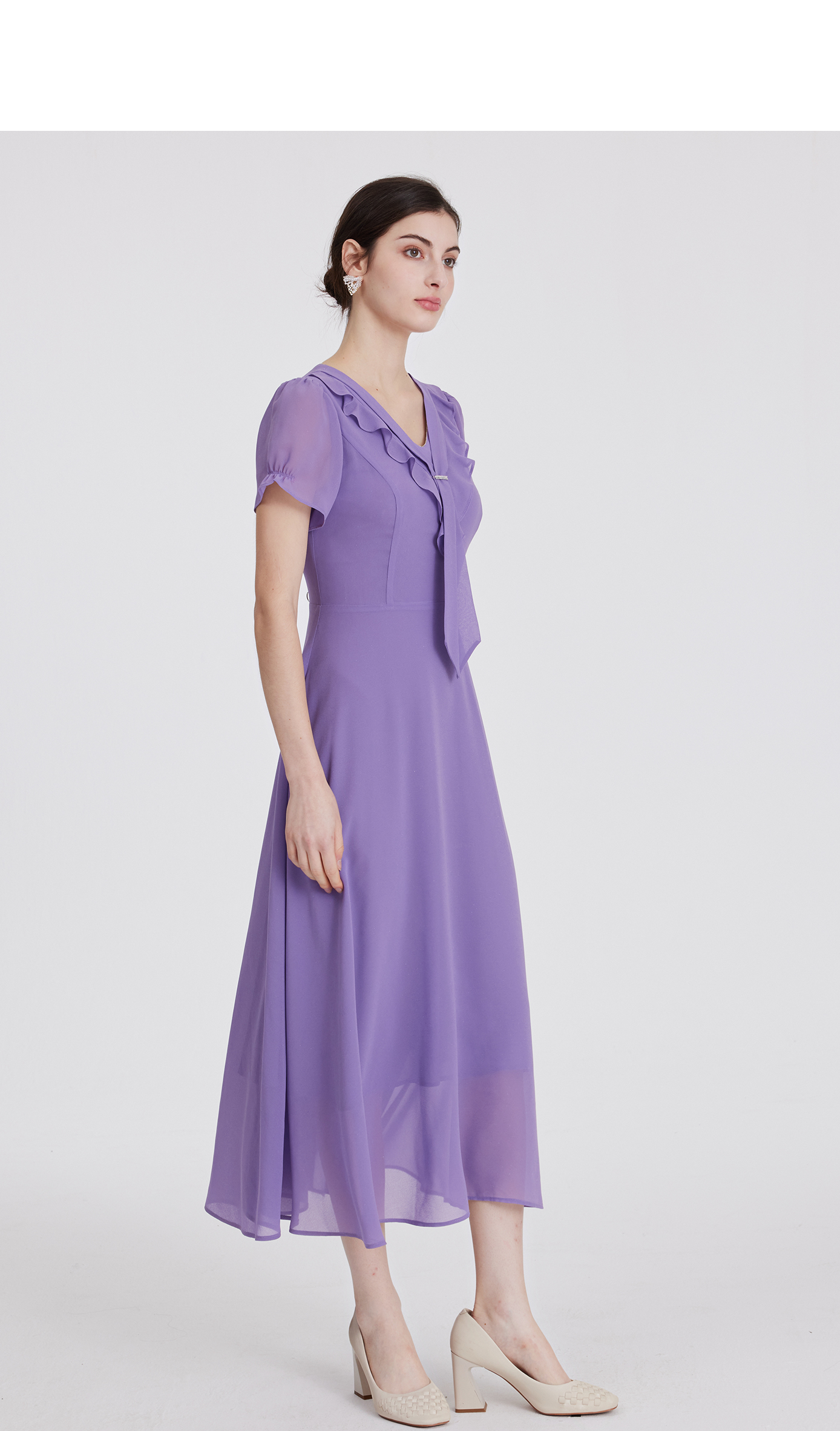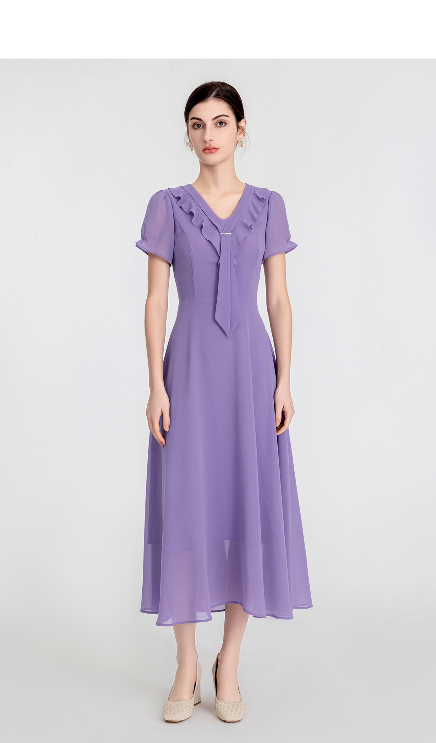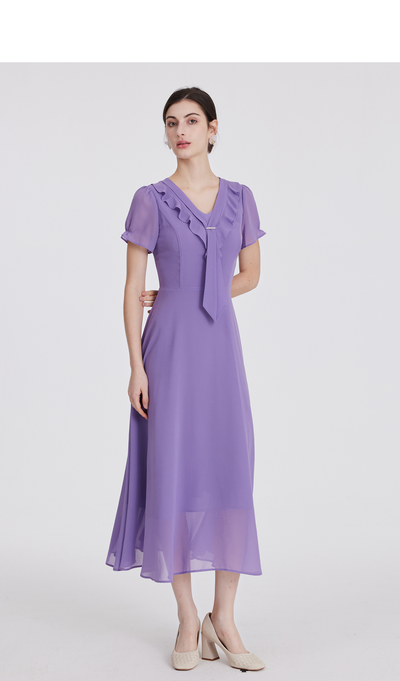 司歌雪纺连衣裙收腰v领荷叶轻薄显瘦A891235X