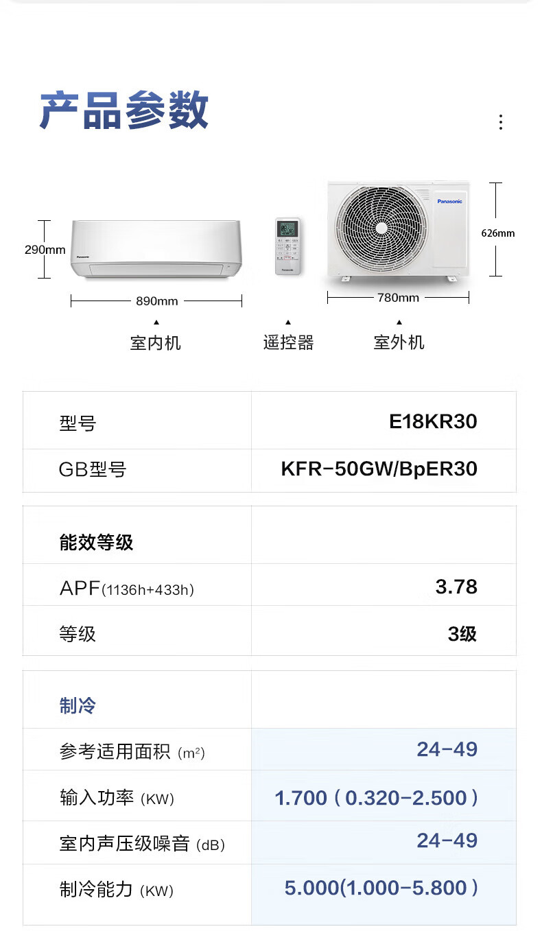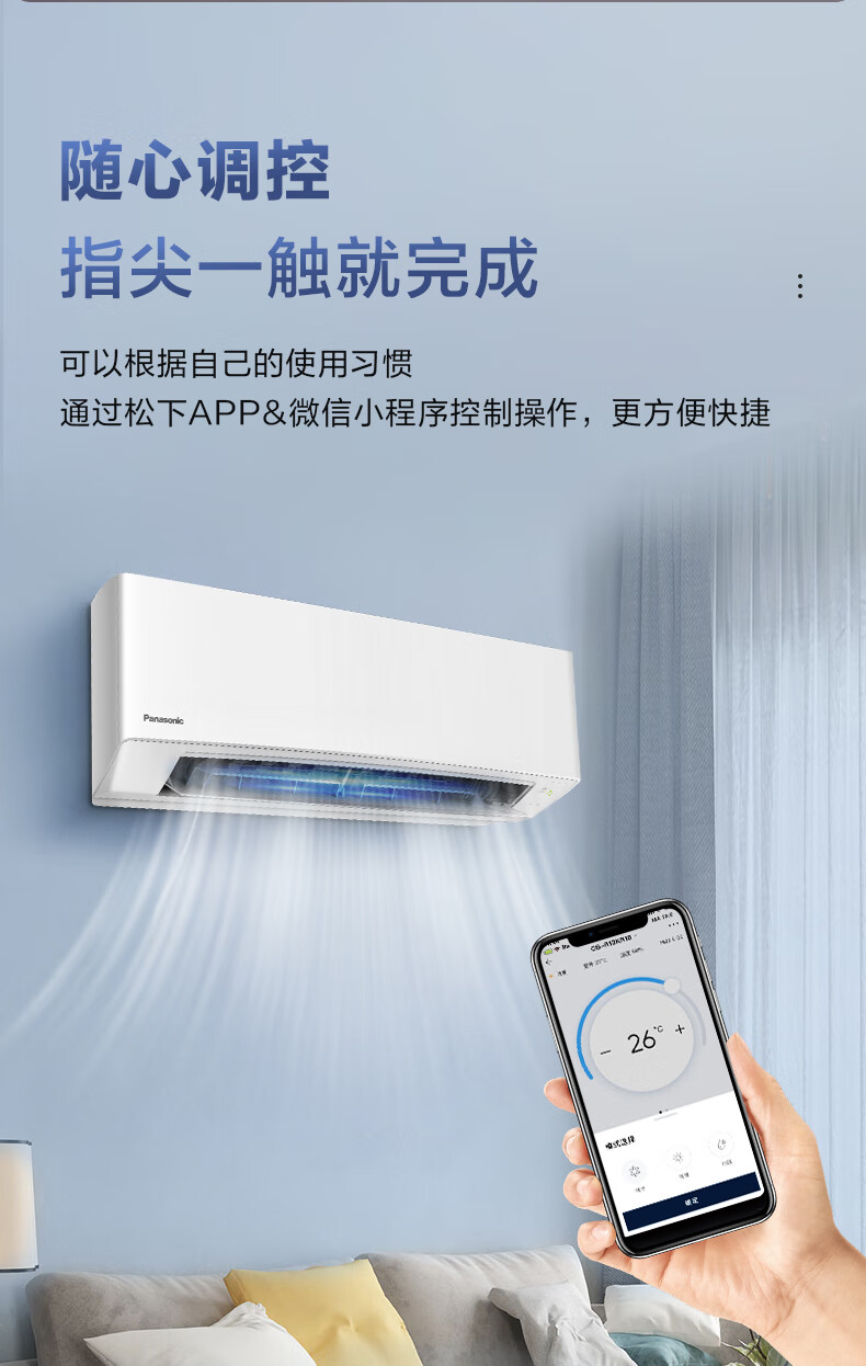 松下空调滢风系列 2匹 新三级能效 变频冷暖壁挂式空调WIFI智能挂 柔湿制冷 电辅加热 E18KR30
