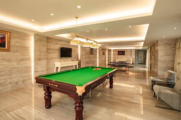 别墅一层拥有一个大客厅、棋牌室、餐厅、厨房、2个房间、3个卫生间。配套齐全的厨房设施,喜欢和家人、朋友一起,自己动手烧菜做饭让度假的时光变得更有意义。