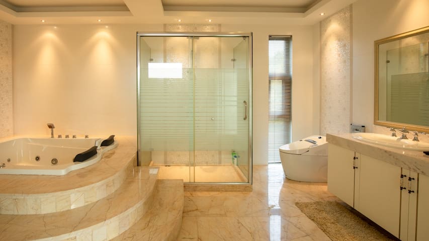 一共有3幢别墅,设施相同但装修风格各有不同,根据预约状况由房东安排入住栋。