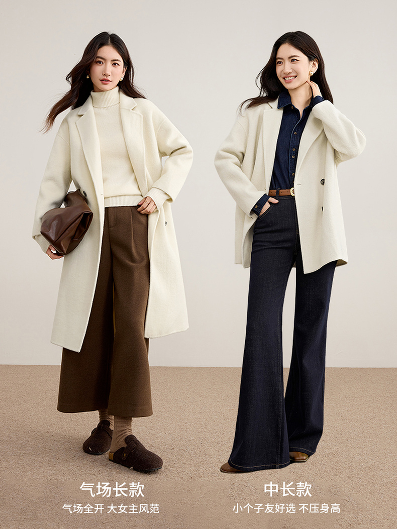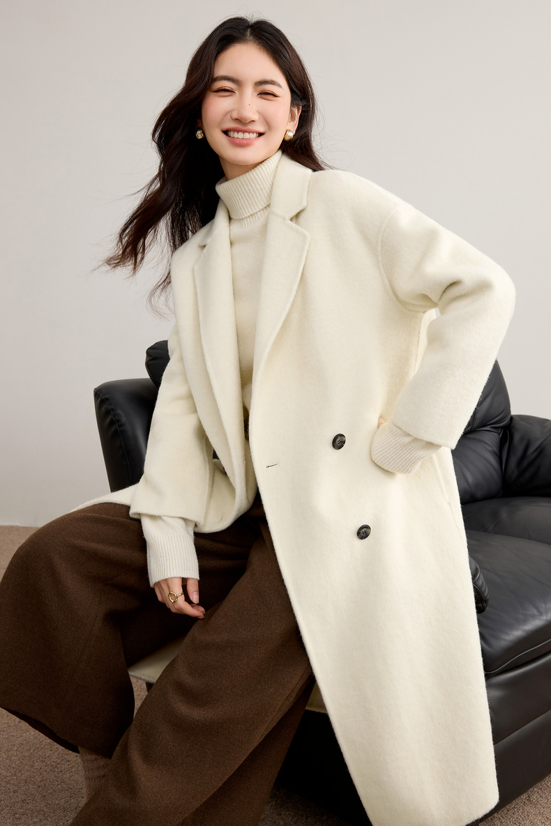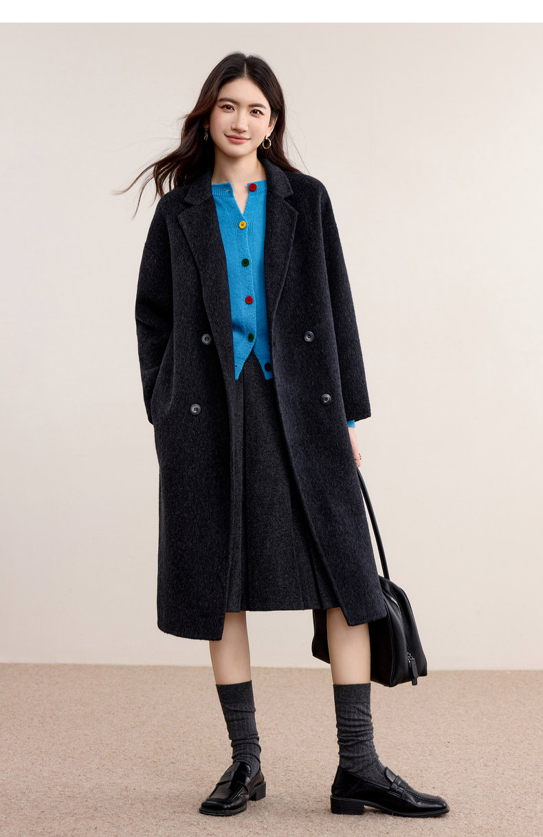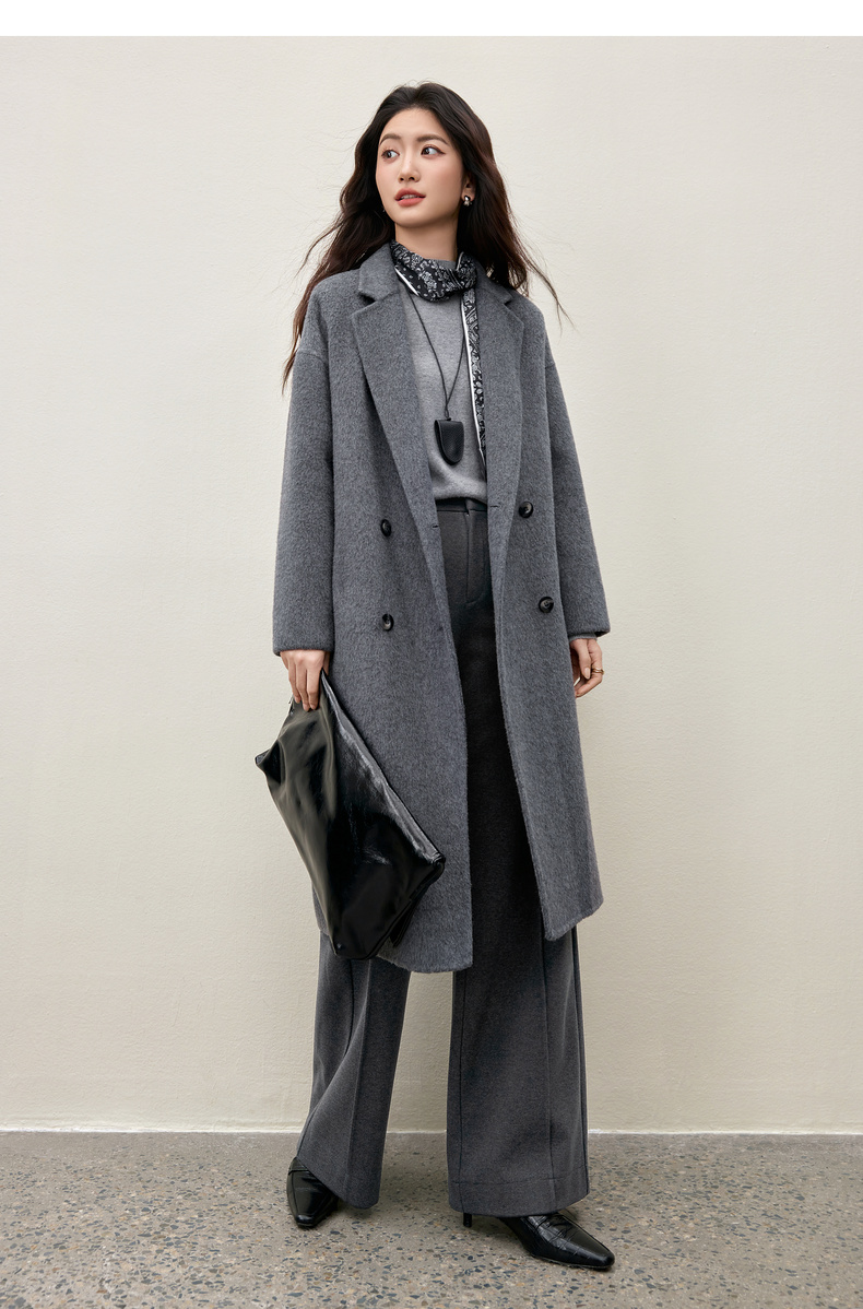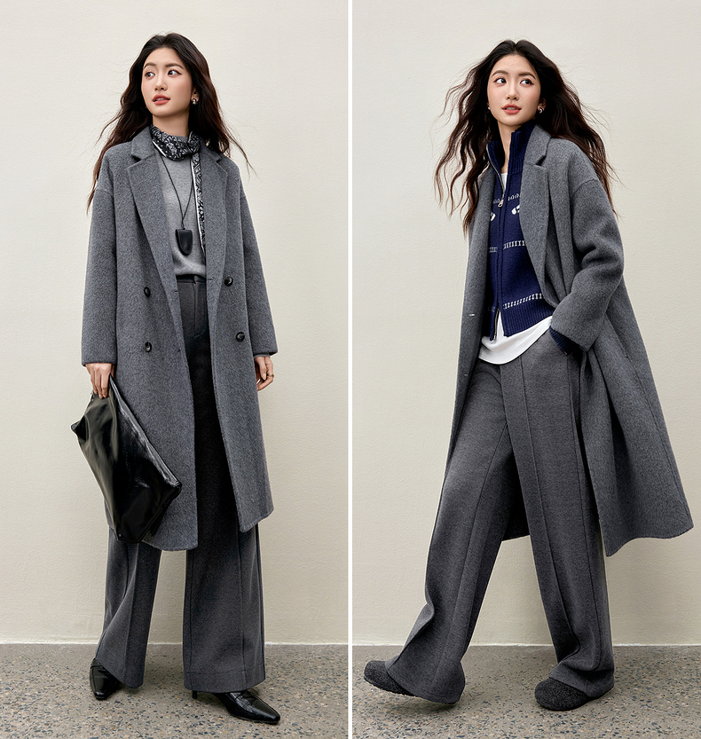【内购】格雷系气质通勤西装领羊毛双面呢大衣外套-W44O56629