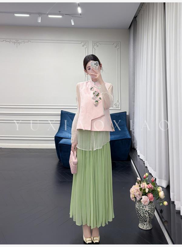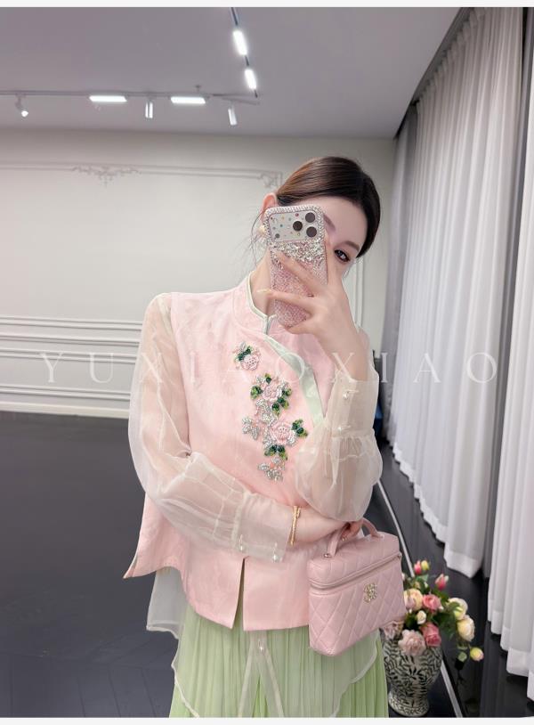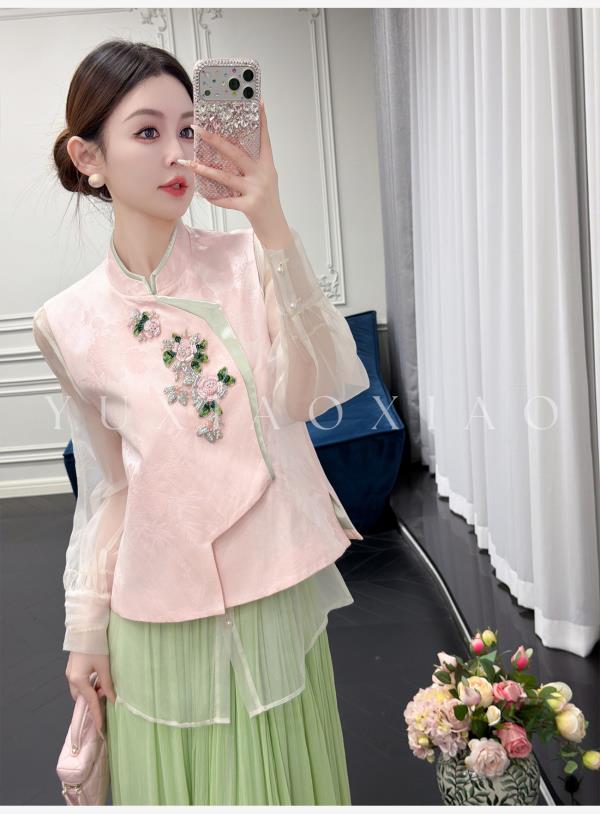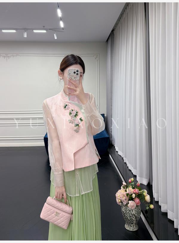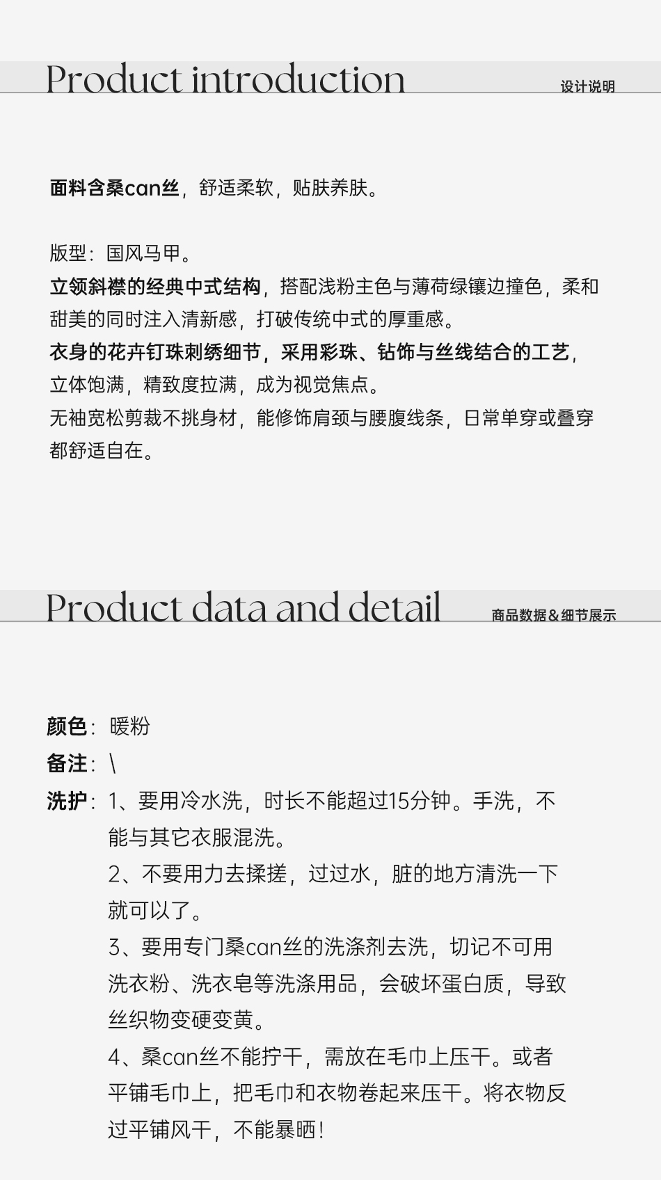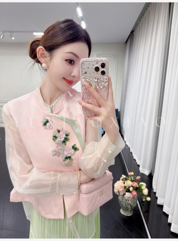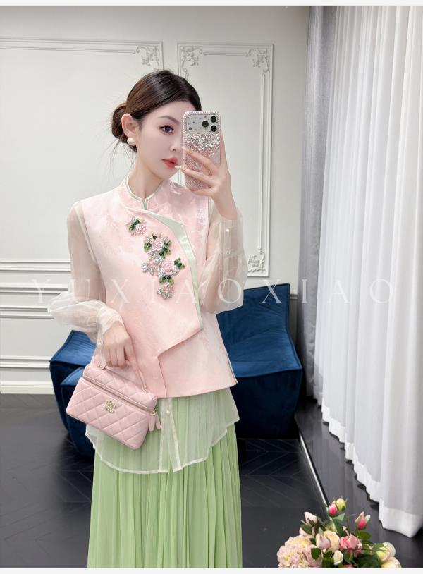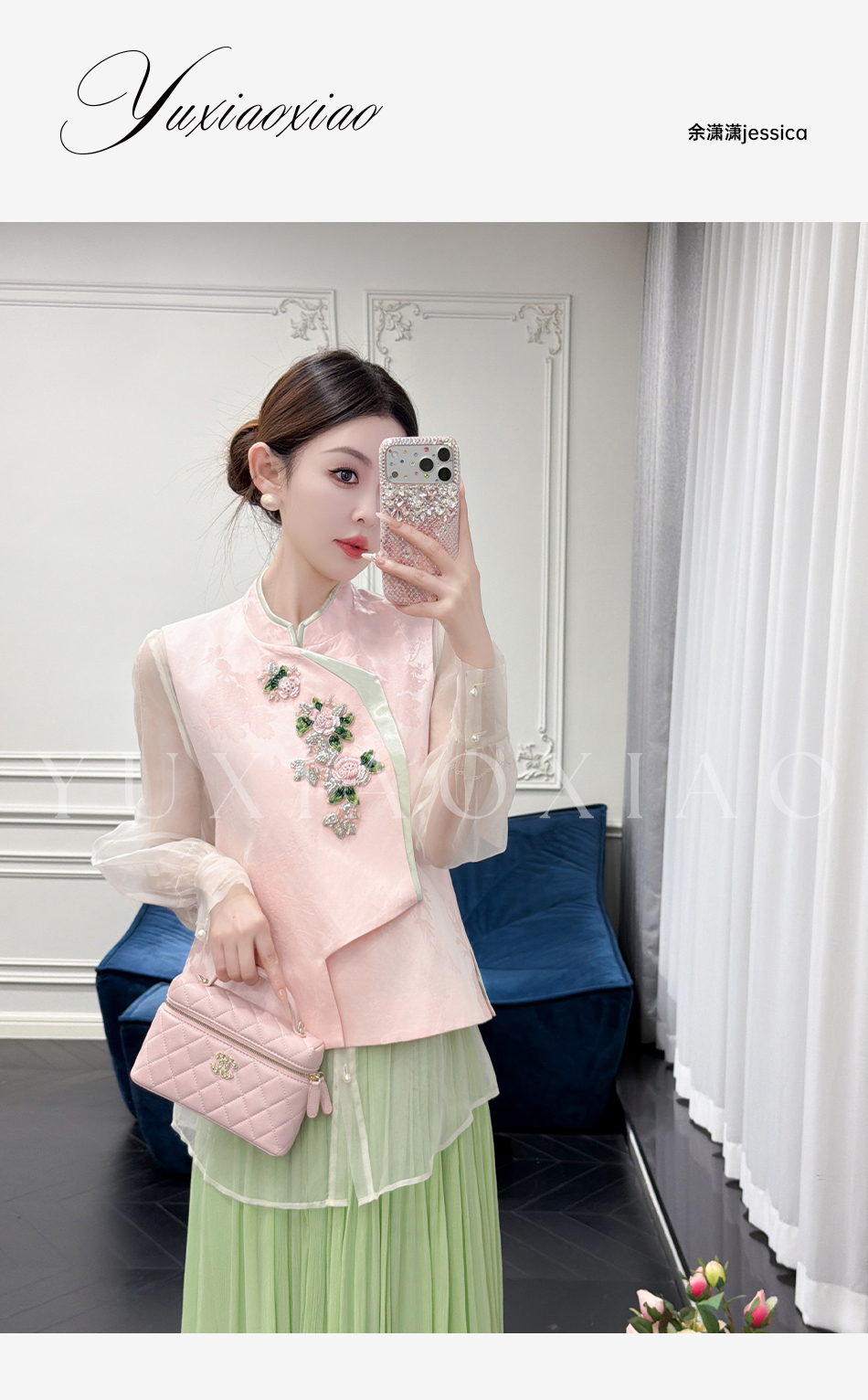 余潇潇【出水芙蓉】桑蚕丝亚麻棉混纺新中式立体刺绣国风立领马甲