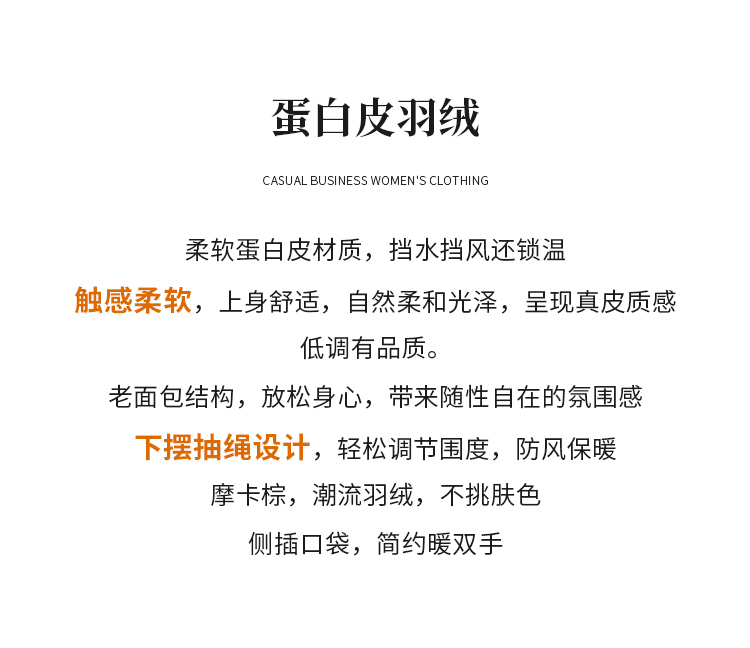 【商场同款】CNO5A86 “ 蛋白皮羽绒服 ” 柔软蛋白皮挡风挡雨 锁温舒适