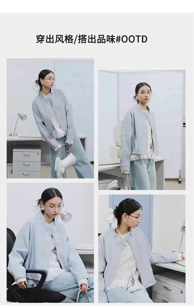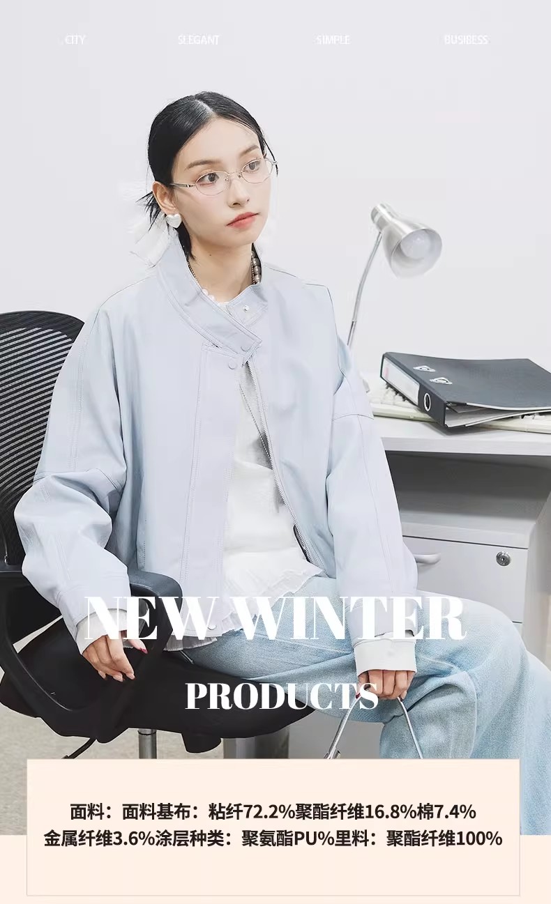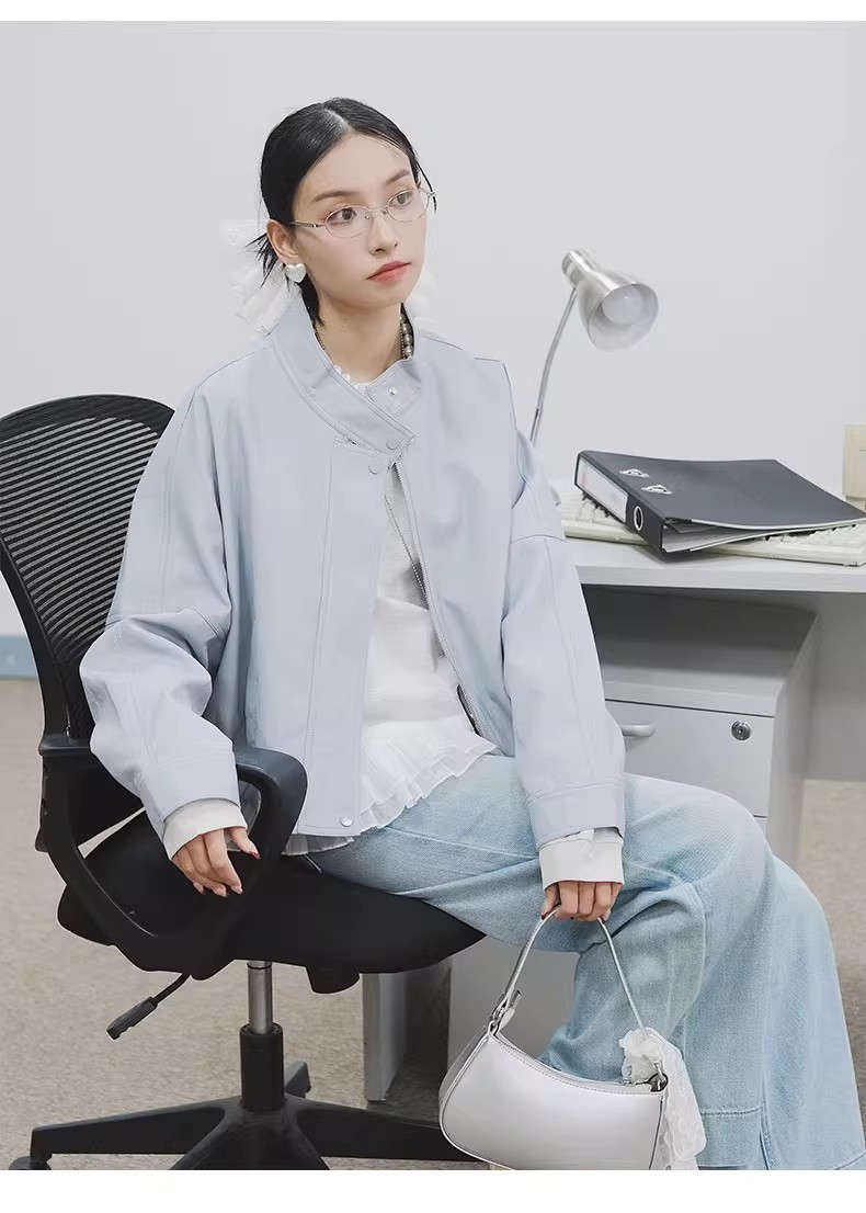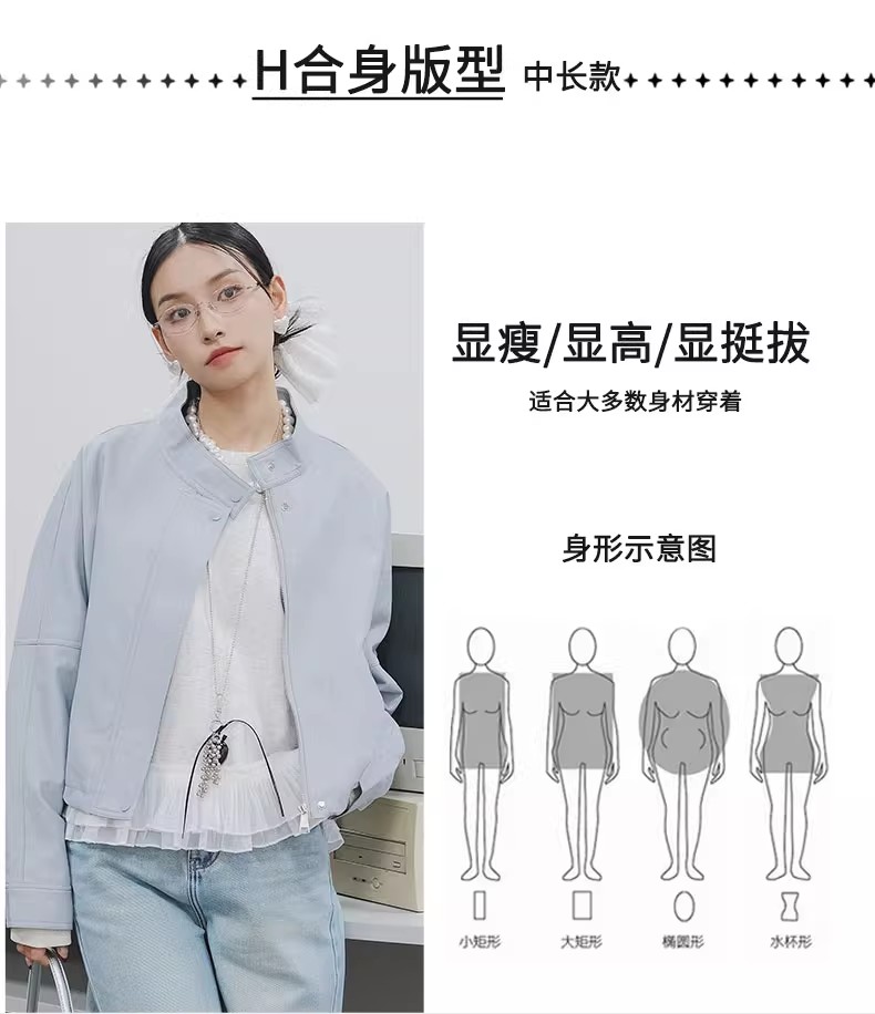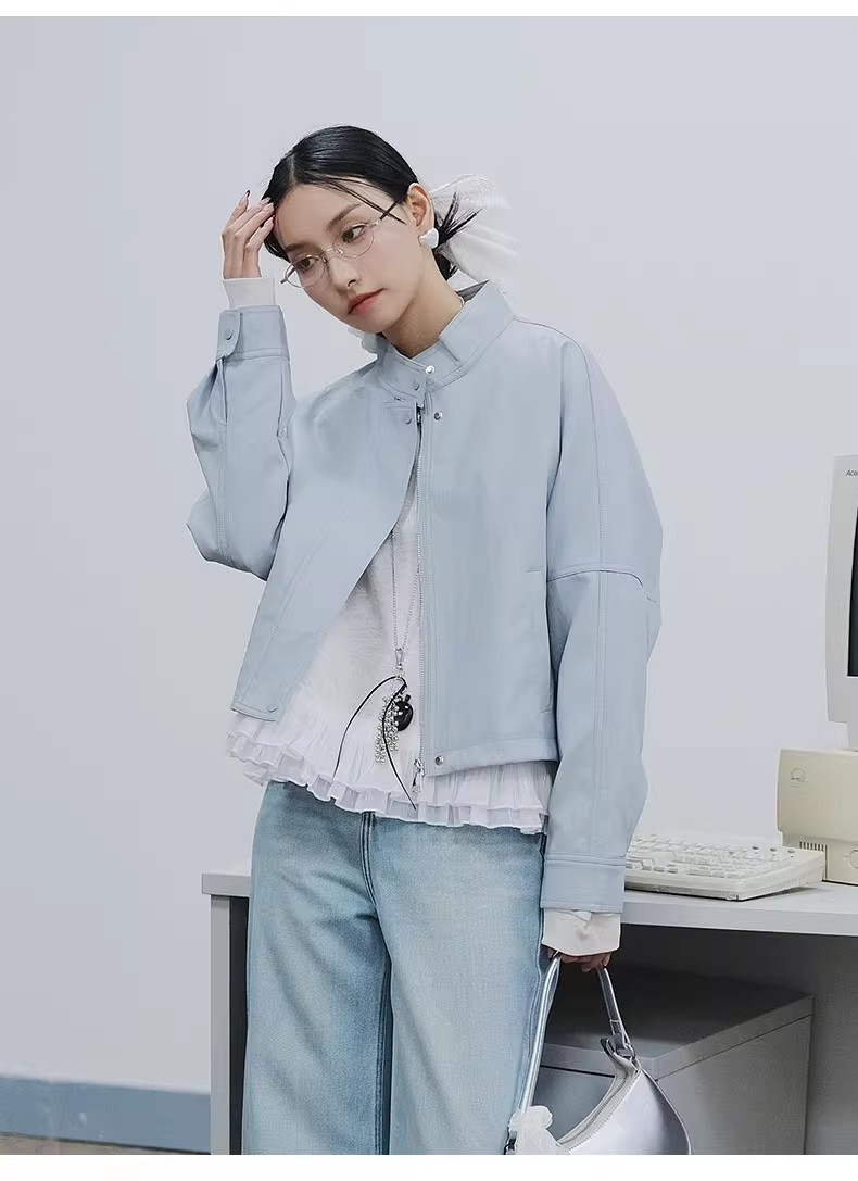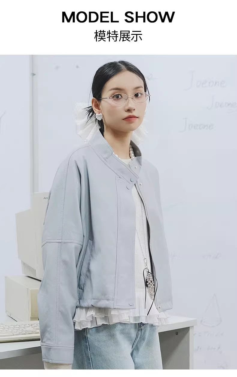 【门店同款】ENJOY春季盐貌似糖小立领夹克皮衣 160896168