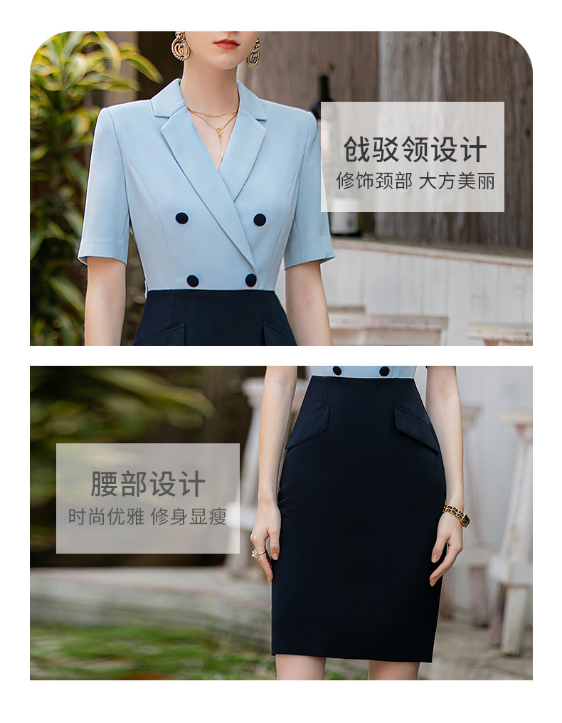 IWY/高端设计款职业西装连衣裙女夏季通勤短袖拼接ol气质商务工装裙子Q943